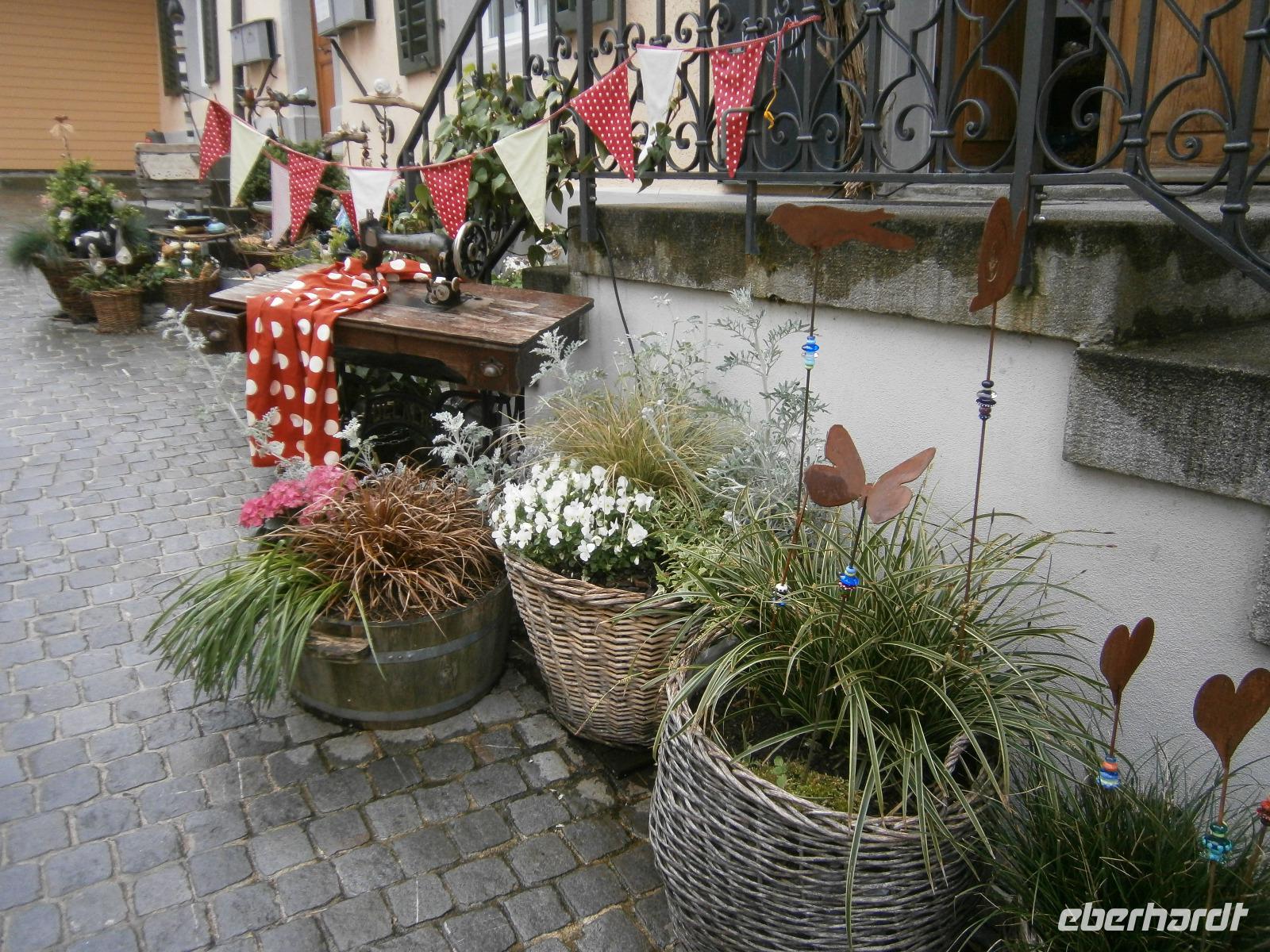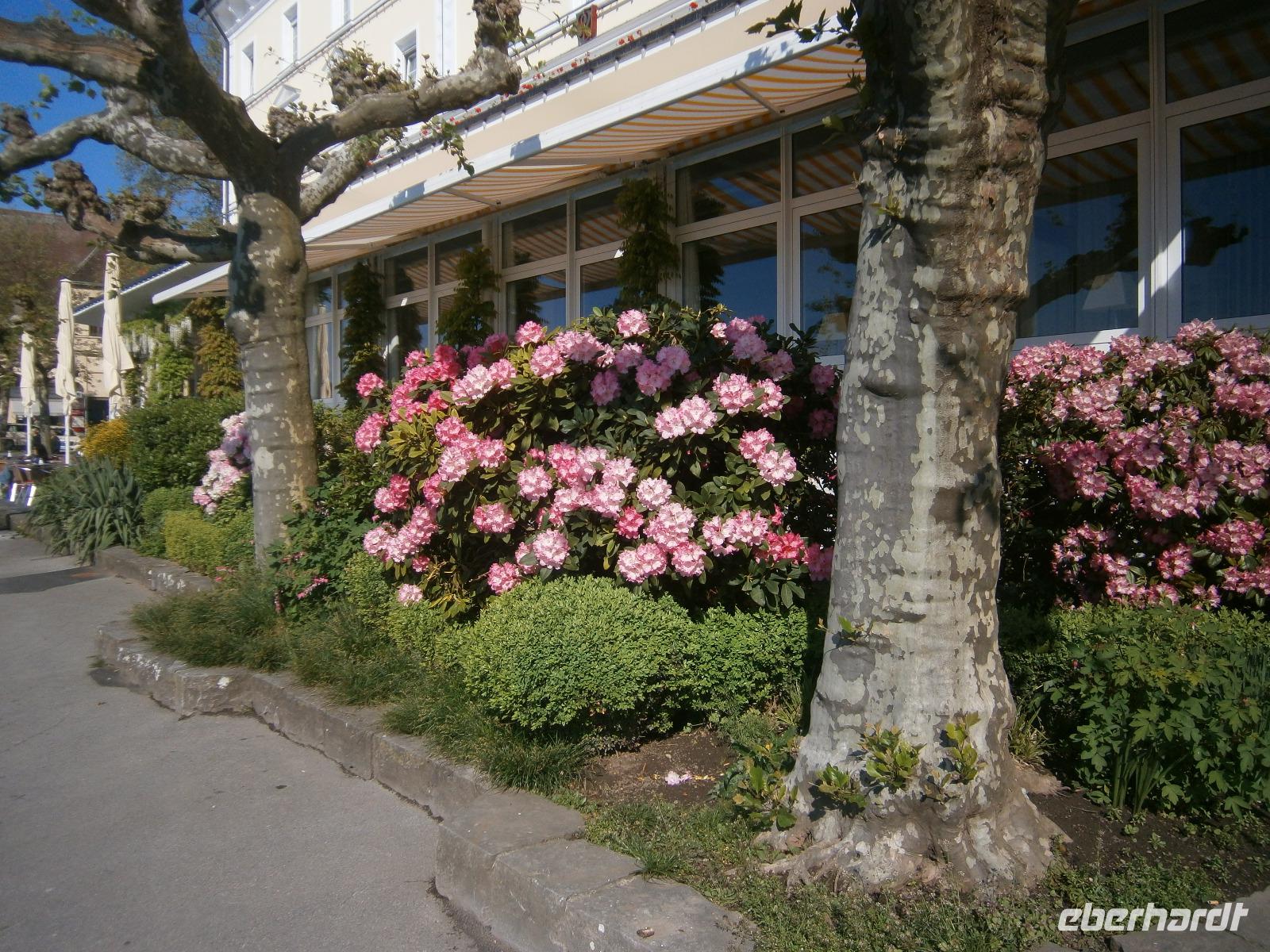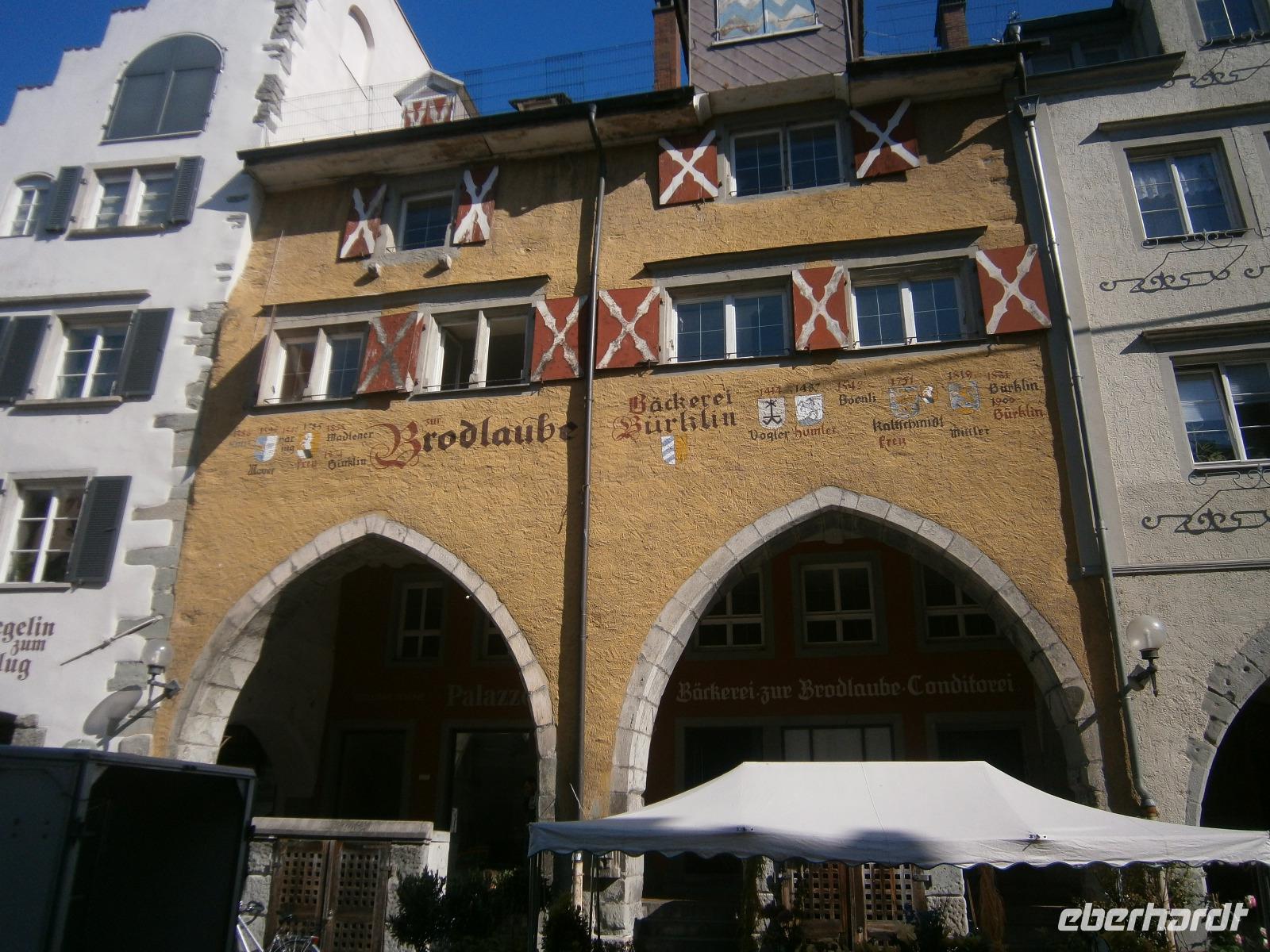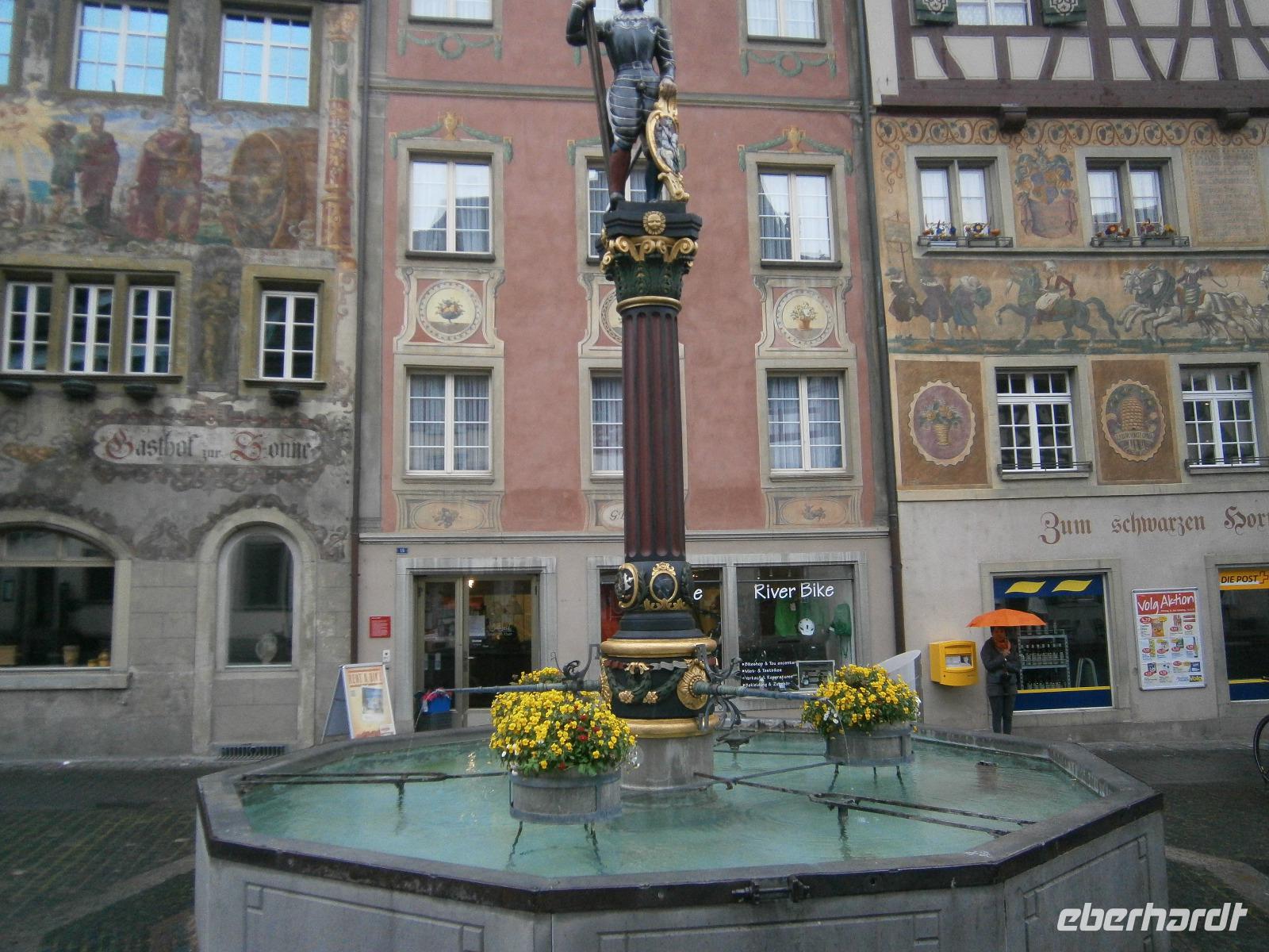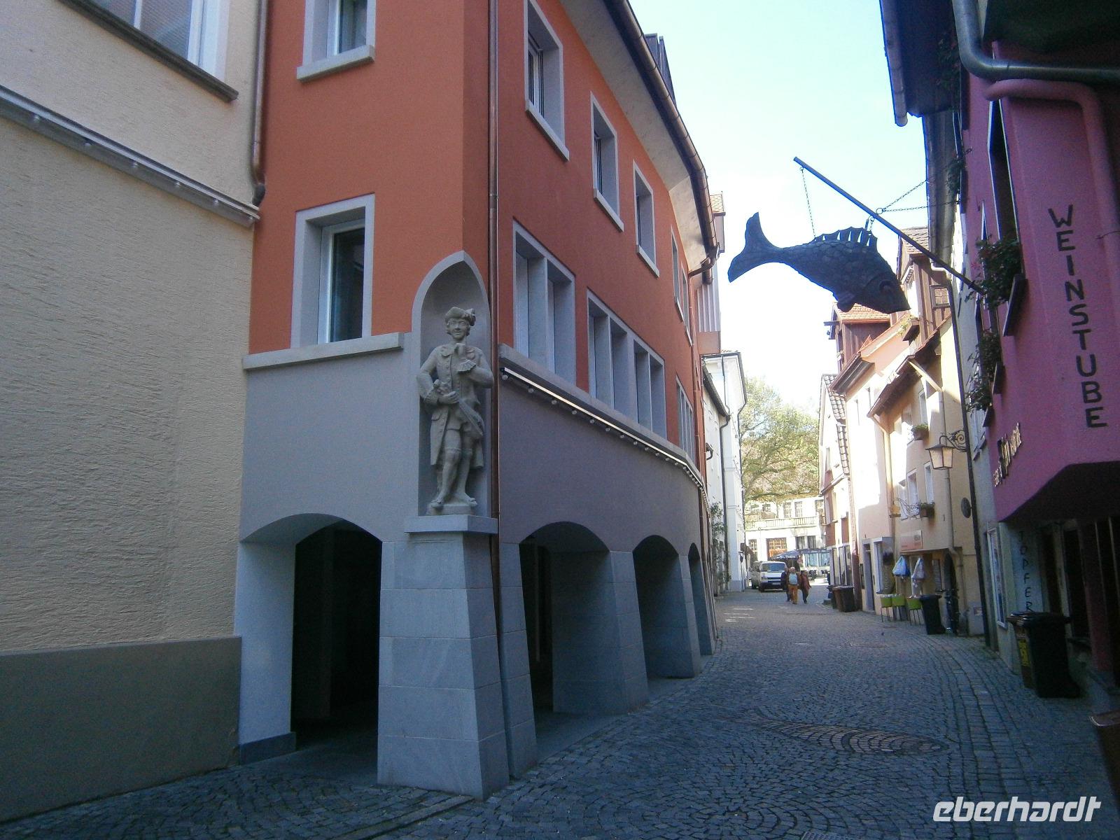 Anschließend fuhren wir nach Stein am Rhein, dem viel besuchten „Rothenburg des Hochrheins". Hier am km 1 des Rheinlaufs, erzählen Häuser Geschichten. An den Fassaden findet man Darstellungen u.a. von David und Goliath, Diogenes mit dem Faß sowie Allegorien von Klugheit und Liebe, Krieg und Frieden. Im Zentrum, zwischen den beiden Stadttoren, kann man schön bummeln oder eine der zahlreichen Restaurants oder Cafe's aufsuchen. Das „Lindwurmmuseum" und das Klostermuseum „St. Georg" laden zum Besuch ein. Auch J.W.Goethe besuchte viermal diesen malerischen Ort.