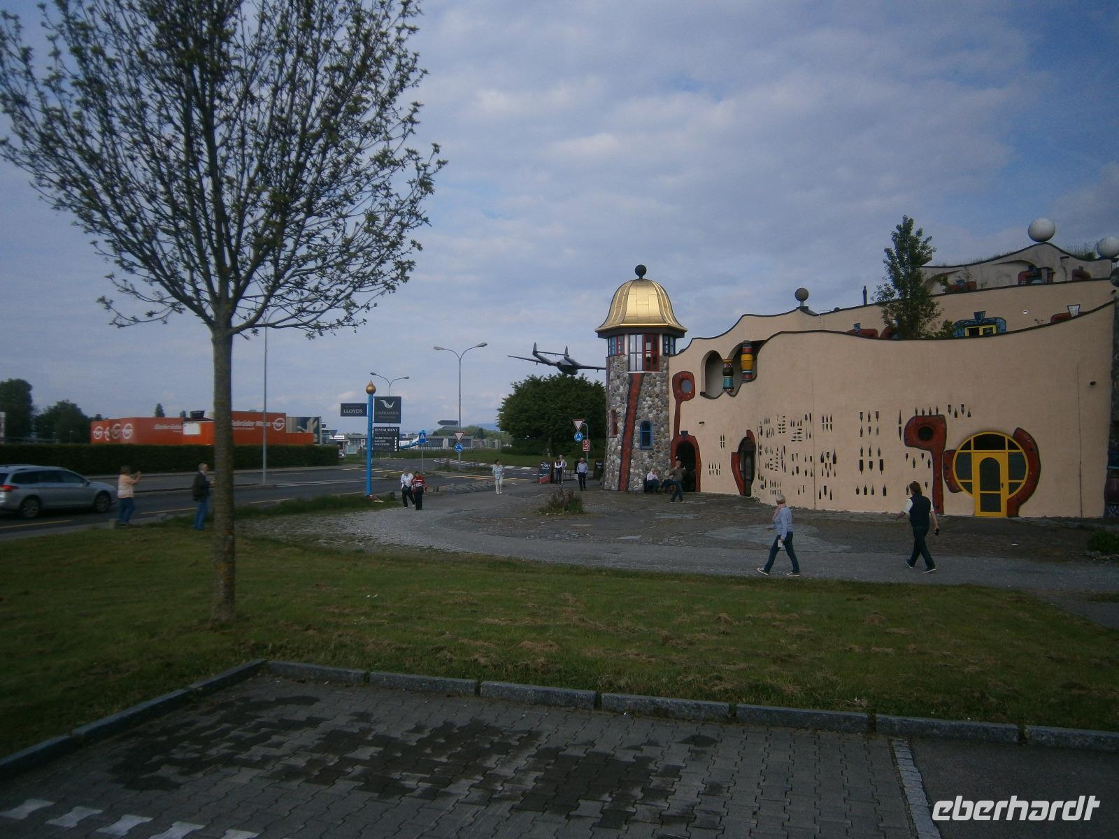 An der Hundertwasser-Markthalle in Staad am Bodensee legten wir eine Pause ein.