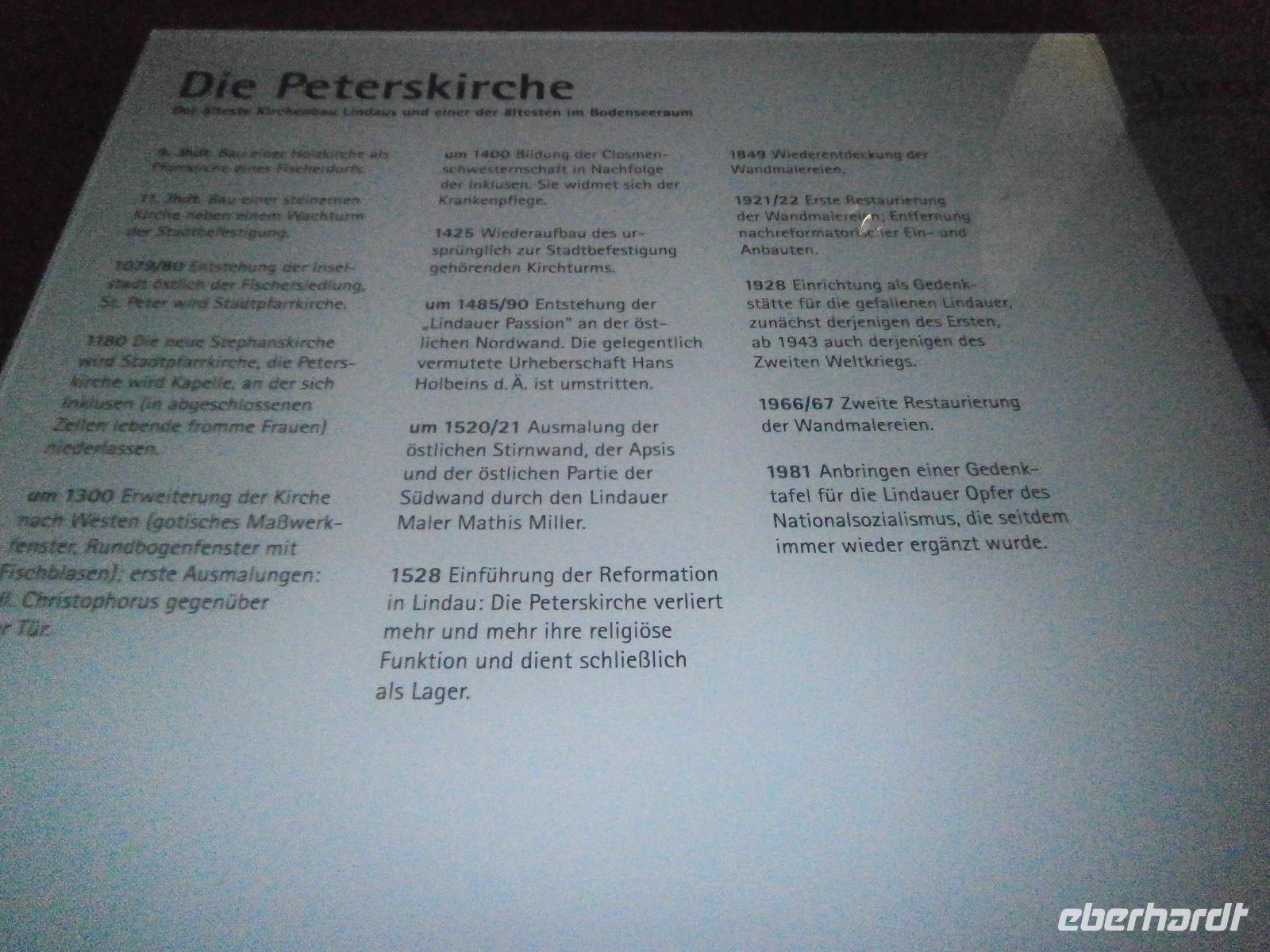 Der vorletzte Tag begann mit einem Spaziergang auf der Bodenseeinsel Lindau. Drei Kirchen hat die Lindauer Altstadt zu bieten: die Stadtpfarrkirche St. Stephan und das Münster „Unser lieben Frauen", beide am Markt gelegen und die Peterskirche, die älteste Kirche Lindaus am Schrannenplatz, die zu einer Gedenkstätte für gefallene Soldaten des 1. Weltkrieges umgestaltet wurde. Daneben befindet sich der Diebsturm. Über die Maximilianstraße, der Hauptgeschäftsstraße der Altstadt, erreicht man den Bismarckplatz mit dem sehenswerten Alten Rathaus und dem Lindaubrunnen. Am Seehafen steht der Mangturm, um 1200 als Leuchtturm erbaut, der 33 m hohe Neue Leuchtturm und der Bayerische Löwe bilden das Wahrzeichen von Lindau, die weltberühmte Hafeneinfahrt.