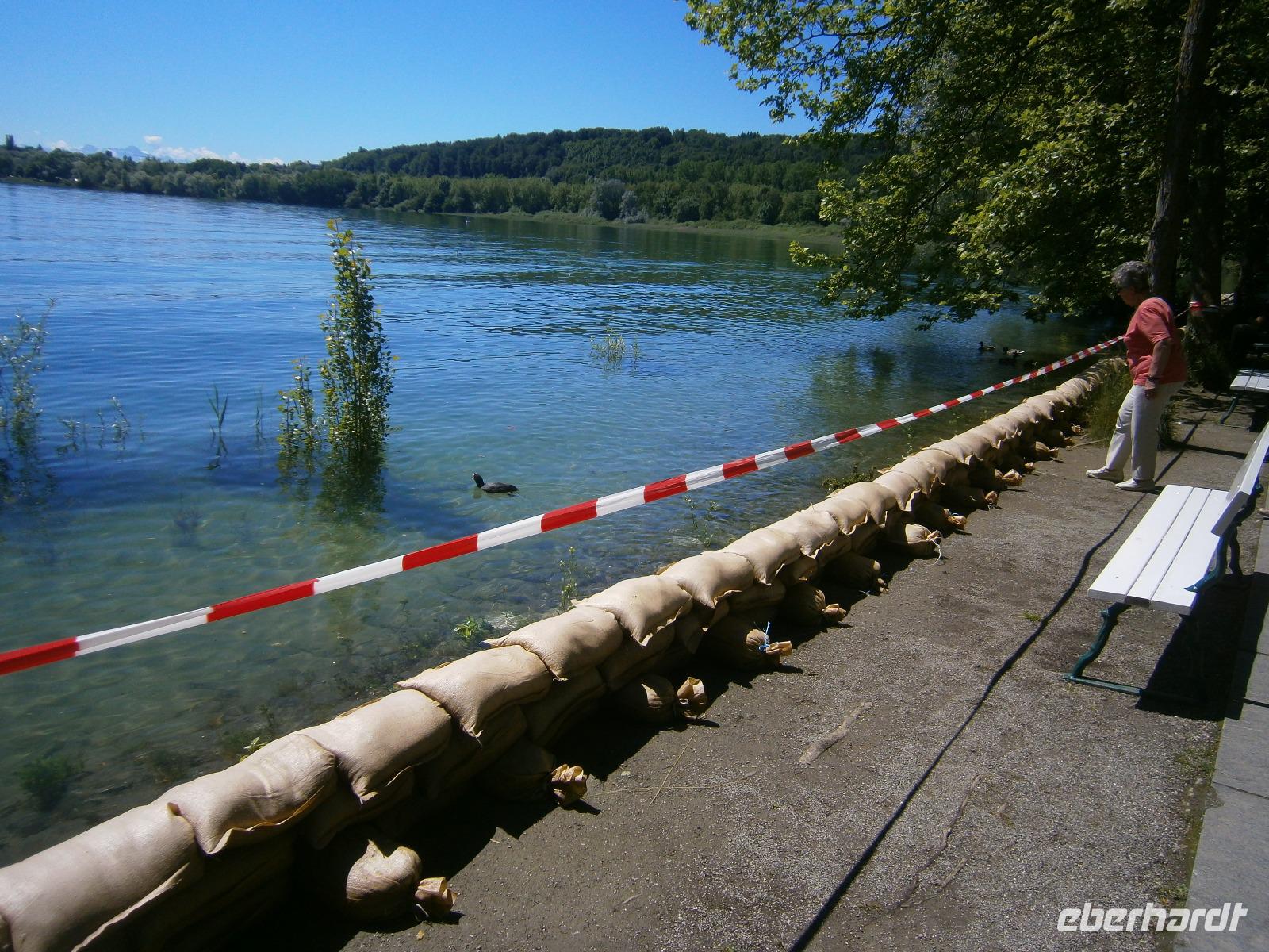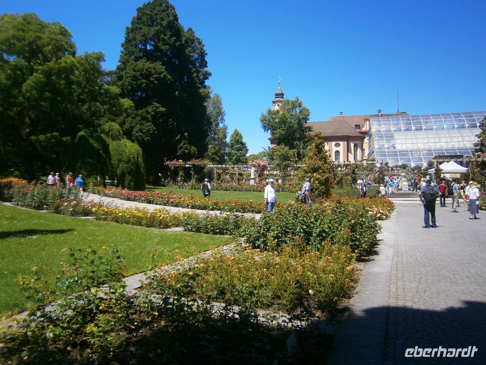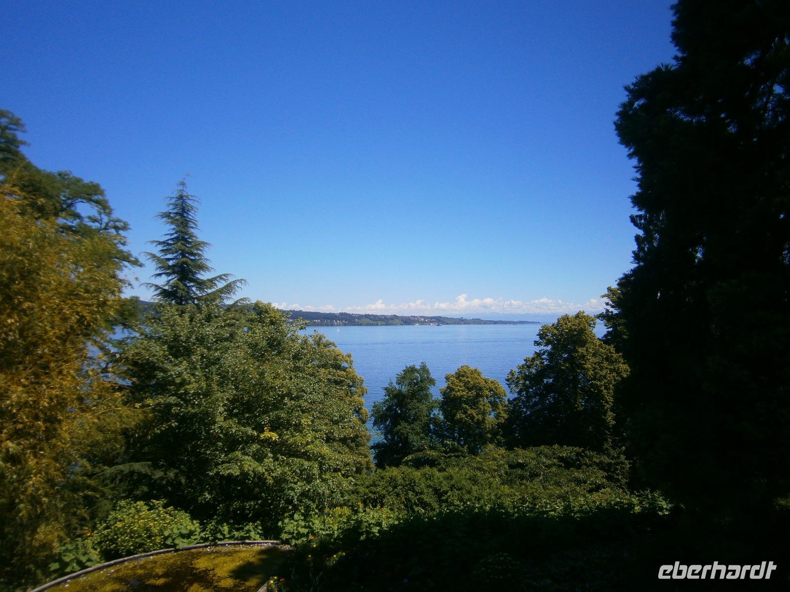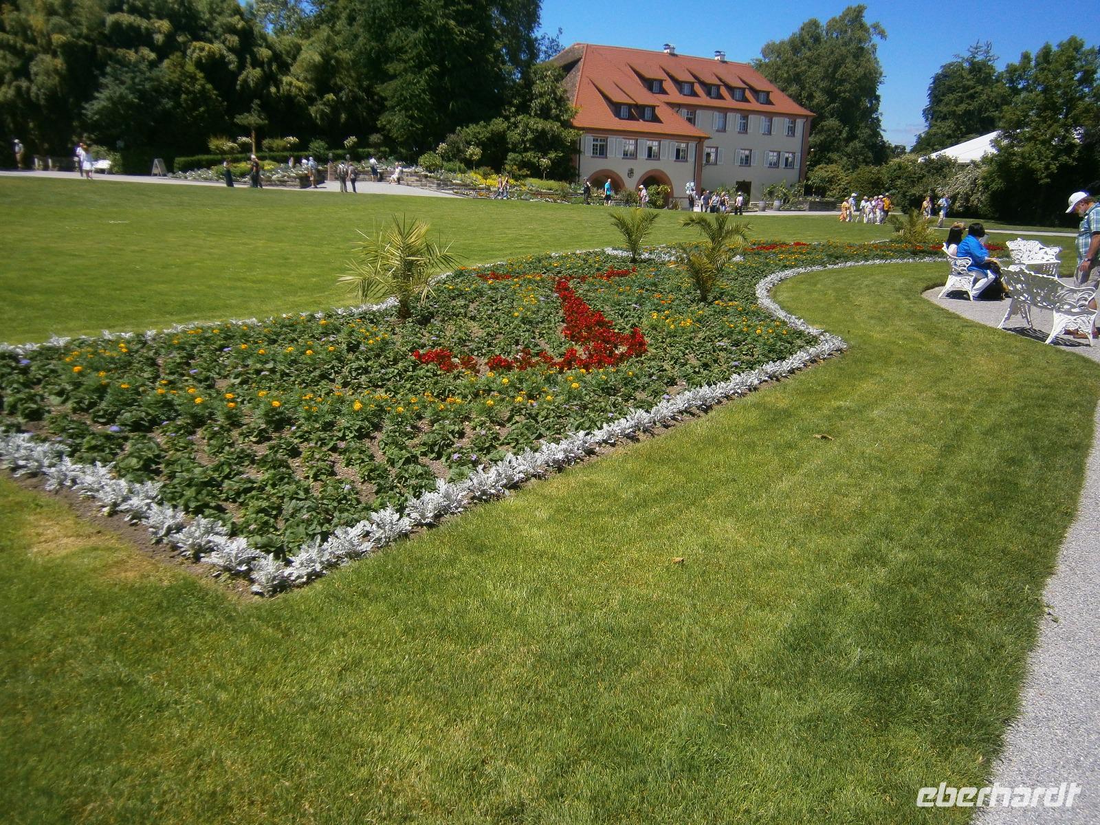 Am zweiten Tag fuhren wir mit unserem Reisebus entlang des Südufers über Konstanz zur Insel Mainau. Diese empfing uns mit hohen Temperaturen. Durch das Wetter der vergangenen Wochen hat der Bodensee einen erhöhten Pegel, so dass extra angelegte Behelfswege aus Holz und Sandsäcke am Ufer vor einem weiteren Ansteigen des Wassers schützen sollen.