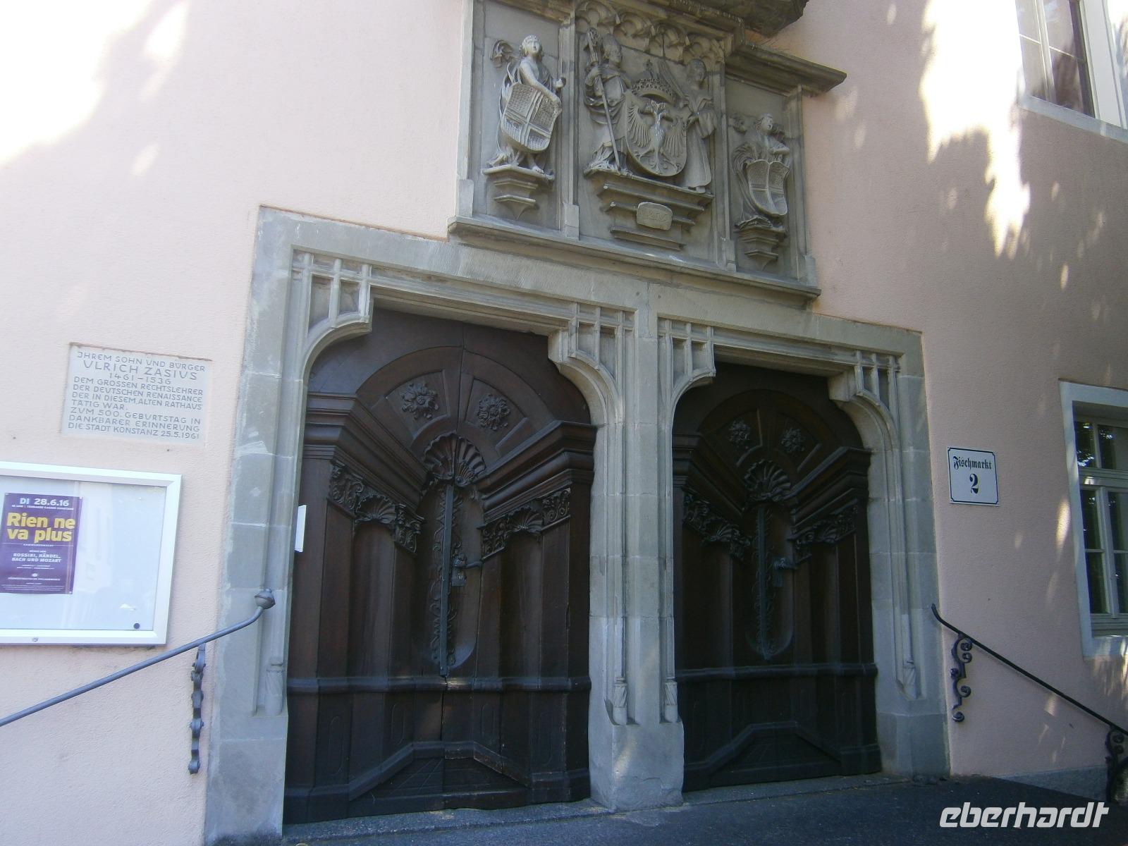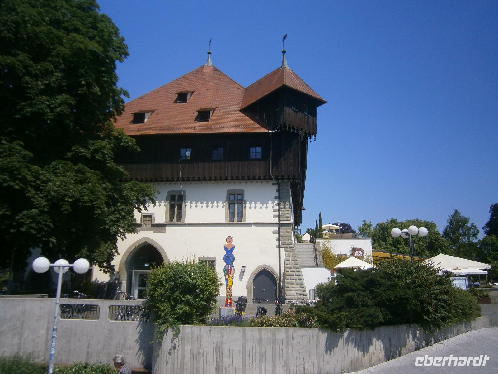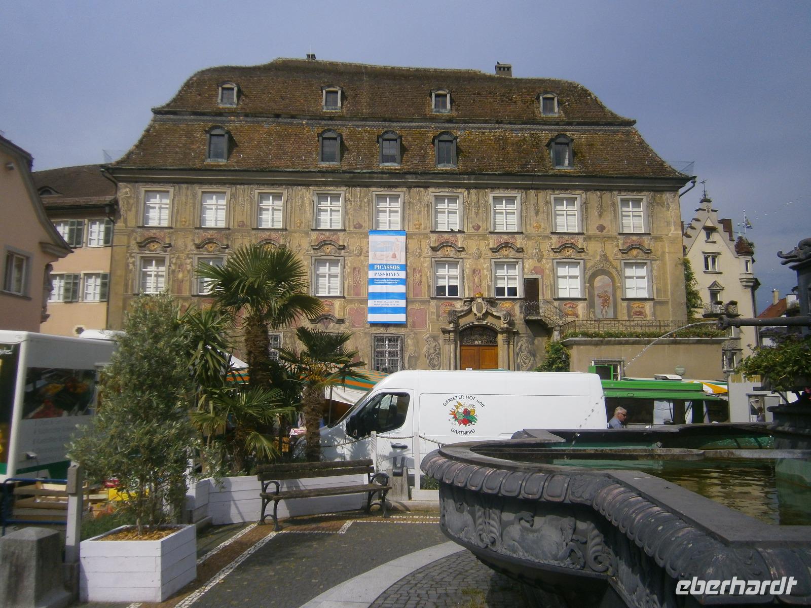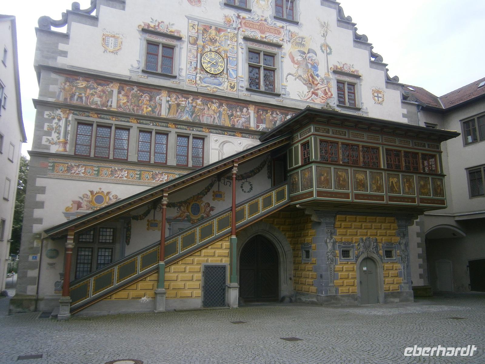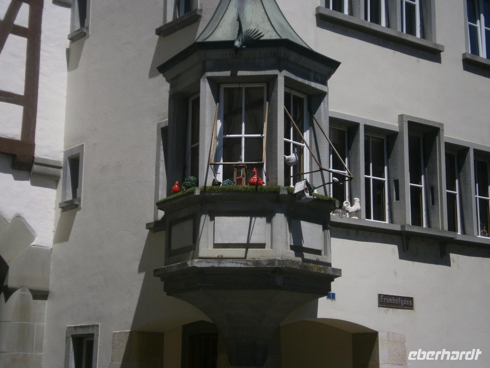 Leider war die Sicht zum Besuchszeitpunkt eingeschränkt, da unmittelbar am Rathausplatz gewerkelt wurde. Vom 09.Juli bis 13. August dieses Jahres finden hier die Freilichtspiele statt. Dort wird dann „Lebendiges Mittelalter" in Stein am Rhein gezeigt. Gegenwärtig werden die Zuschauerplätze und Bühne aufgebaut.