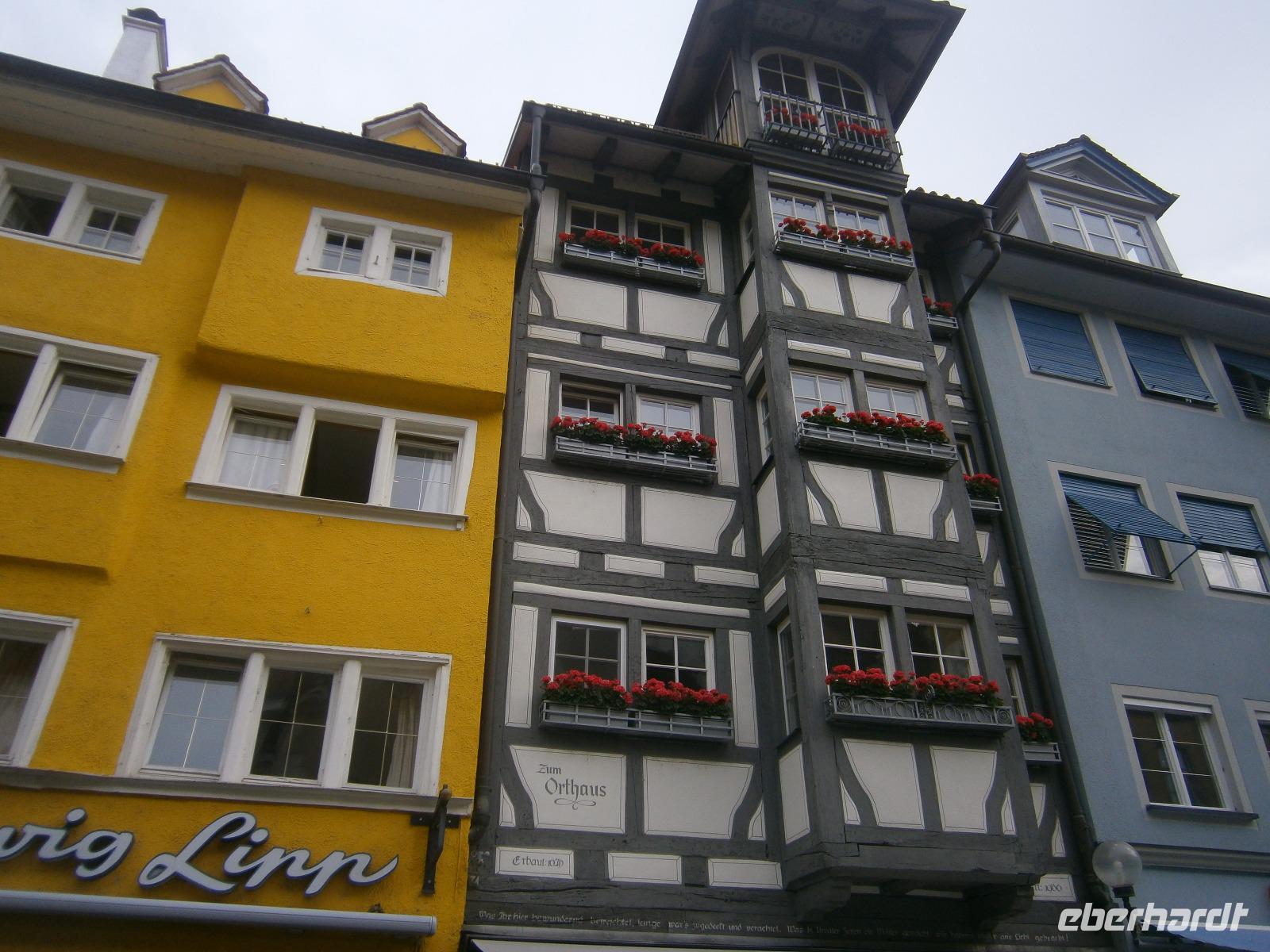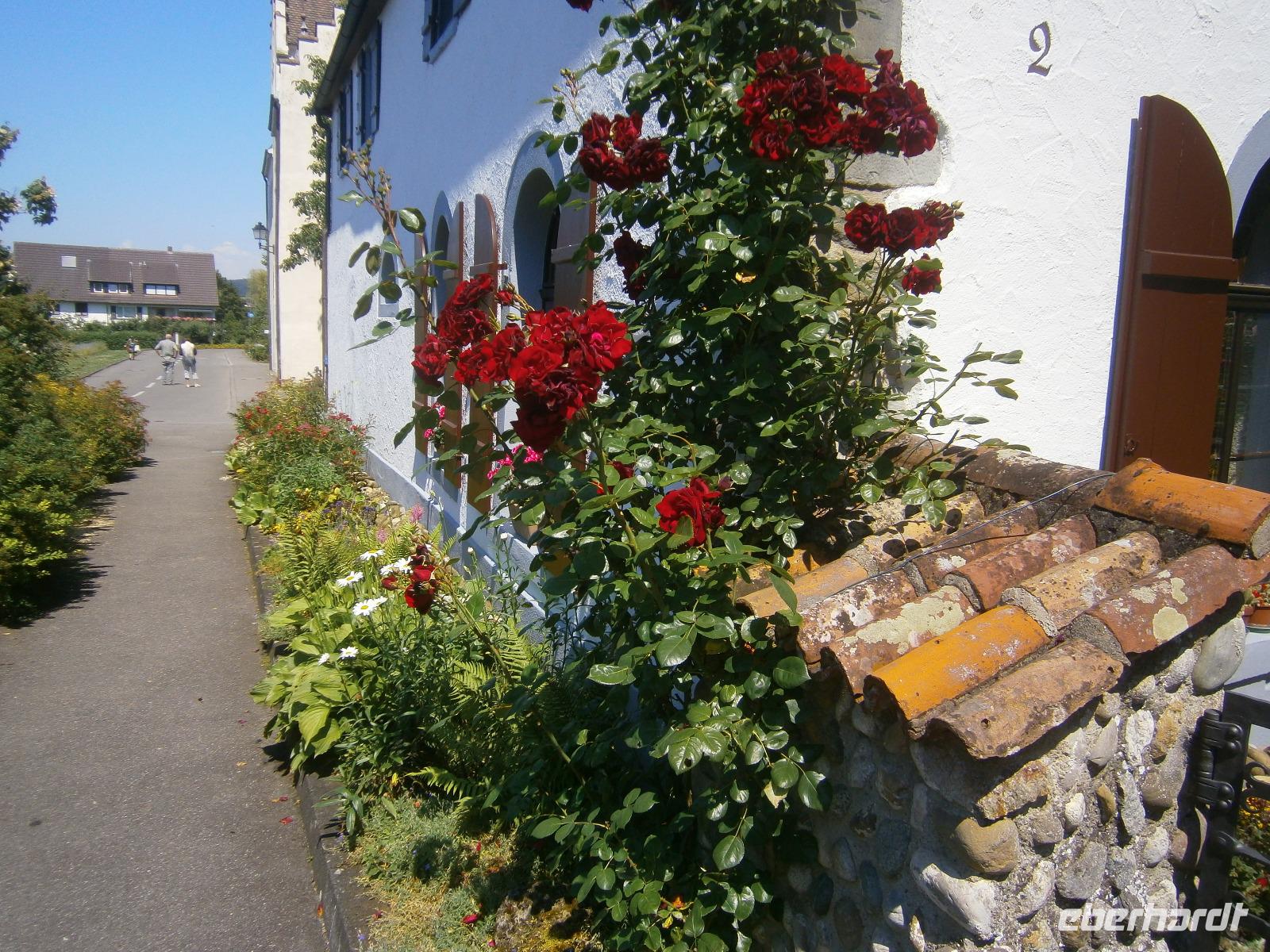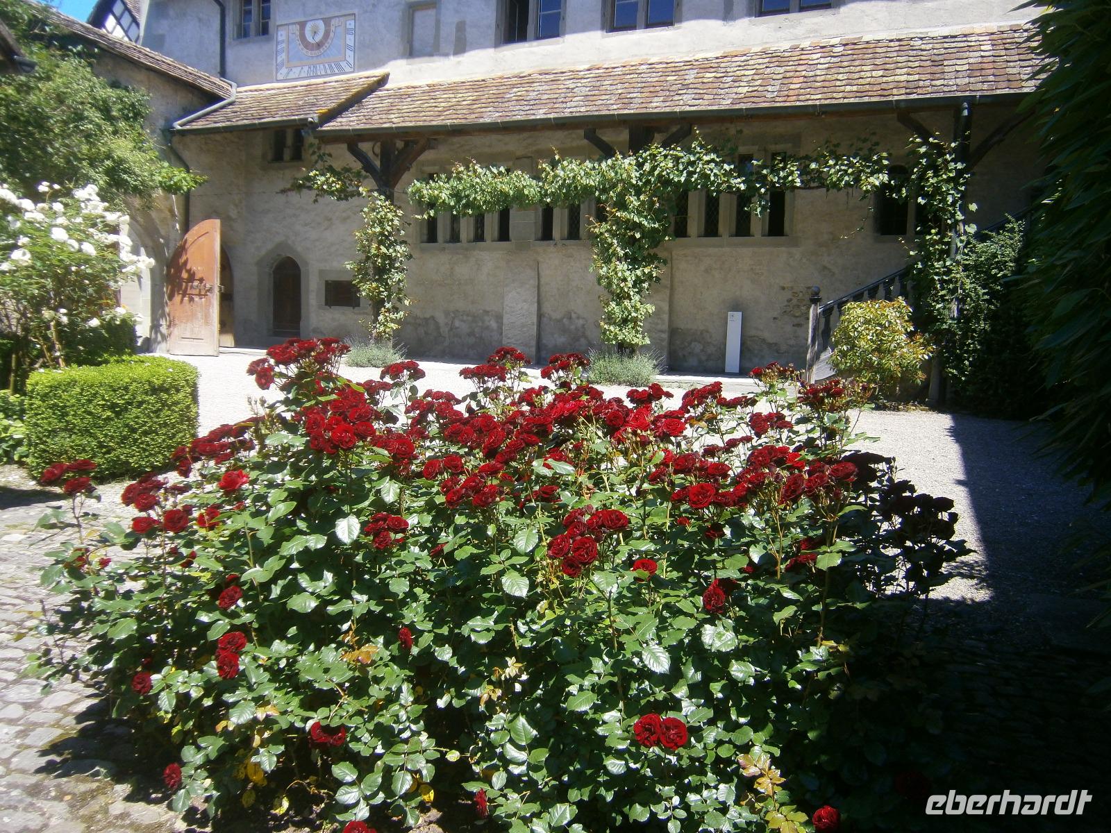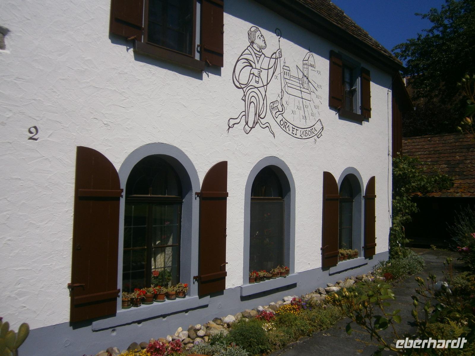 Anschließend fuhren wir nach Stein am Rhein, dem viel besuchten „Rothenburg des Hochrheins". Hier am km 1 des Rheinlaufs, erzählen Häuser Geschichten. An den Fassaden findet man Darstellungen u.a. von David und Goliath, Diogenes mit dem Faß sowie Allegorien von Klugheit und Liebe, Krieg und Frieden. Im Zentrum, zwischen den beiden Stadttoren, kann man schön bummeln oder eine der zahlreichen Restaurants oder Cafe's aufsuchen. Das „Lindwurmmuseum" und das Klostermuseum „St. Georg" laden zum Besuch ein. Auch J.W.Goethe besuchte viermal diesen malerischen Ort.