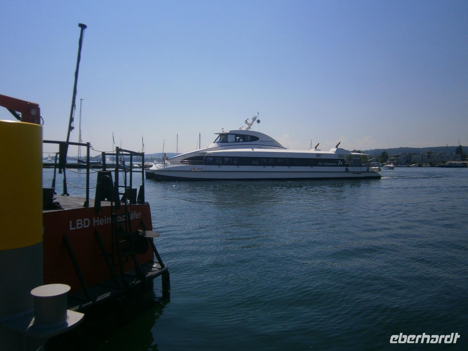 Nach der Freizeit in Lindau bestiegen wir das Bodenseeschiff „Schwaben", das uns von Lindau über Wasserburg, Nonnenhorn, Kressbronn und Langenargen nach Friedrichshafen brachte. In einer Stunde zwanzig Minuten erreichten wir die Zeppelinstadt. Die Freizeit wurde für einen Bummel, entlang der Strandpromenade, oder für eine Einkehr in eines der zahlreichen Restaurants genutzt. Unmittelbar am Hafen befindet sich das Zeppelinmuseum, welches 13 Gäste unserer Gruppe besuchten.
