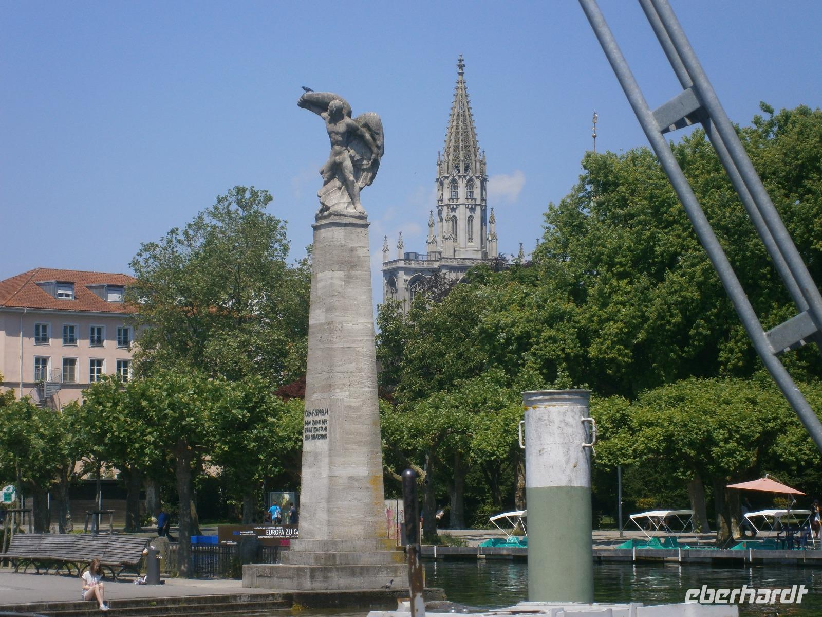 Ein weiterer Höhepunkt der Reise war der fakultative Ausflug nach Konstanz und auf die Kloster-und Gemüseinsel Reichenau. Zuerst besuchten wir Konstanz. Die Gäste spazierten individuell, entsprechend ihren Interessen, durch die Stadt. Durch das Schnetztor erreicht man die Einkaufsmeile in der Altstadt, die Obere und die Untere Laube sowie die Wessobronner Straße. An ihr liegen die Kirche St. Stephan mit einem Schönen Altar, einer beeindruckenden Orgel und einer Holzdecke sowie das weltbekannte Münster. In der Nähe des Hafens befindet sich das Konzilgebäude, wo von 1414 bis 1418 das Konzil von Konstanz stattfand. Hier wurde der böhmische Reformator Jan Hus zum Tode verurteilt. Ihm ist ein Museum unmittelbar hinter dem Schnetztor gewidmet. Auch das Alte Rathaus befindet sich in unmittelbarer Hafennähe. Die übergroße Figur der Imperia, die sich um die eigene Achse dreht, ist das Wahrzeichen von Konstanz. An ihrem Fuß zeigte der Pegel des Bodensees am 24.06.2016 einen Stand von 5,12 m an. Der höchste Pegelstand des Bodensees in der Geschichte war am 18.08.1821 mit 5,91 m!!!. Im Gelände des schön gestalteten Bodensee-hafens gibt es Blumenrabatten und viele Sitzgelegenheiten warten auf die Konstanzer und ihre Gäste. Am Hafen steht auch das Denkmal für Graf Zeppelin, der hier das Licht der Welt erblickte. Im ehemaligen Dominikanerkloster ist heute ein Hotel untergebracht.