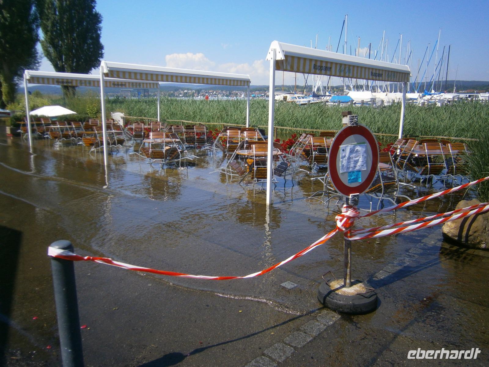 Aber auch hier standen die Tische und Stühle im Außenbereich unter Wasser.