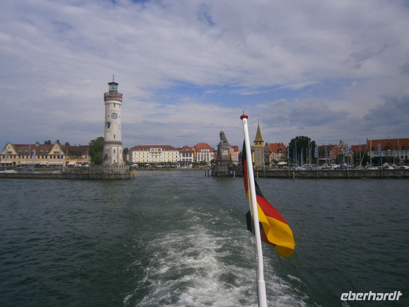 Der vorletzte Tag begann mit einem Spaziergang auf der Bodenseeinsel Lindau. Drei Kirchen hat die Lindauer Altstadt zu bieten: die Stadtpfarrkirche St. Stephan und das Münster „Unser lieben Frauen", beide am Markt gelegen und die Peterskirche, die älteste Kirche Lindaus am Schrannenplatz, die zu einer Gedenkstätte für gefallene Soldaten des 1. Weltkrieges umgestaltet wurde. Daneben befindet sich der Diebsturm. Über die Maximilianstraße, der Hauptgeschäftsstraße der Altstadt, erreicht man den Bismarckplatz mit dem sehenswerten Alten Rathaus und dem Lindaubrunnen. Am Seehafen steht der Mangturm, um 1200 als Leuchtturm erbaut, der 33 m hohe Neue Leuchtturm und der Bayerische Löwe bilden das Wahrzeichen von Lindau, die weltberühmte Hafeneinfahrt.