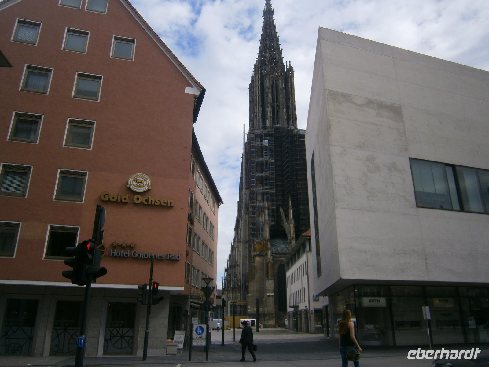 Auf unserer Heimfahrt am sechsten Tag, machten wir noch einen Halt am Münster in Ulm, welches den höchsten Kirchturm der Welt, mit 161m, besitzt. Obwohl kein Gottesdienst an diesem Sonntagmorgen war, konnten wir das Münster nur eingeschränkt besuchen. An dem Tag fand der „Landesposaunentag" mit Hunderten von Teilnehmern statt, die das Münster in Beschlag genommen hatten. Auch das „Alte Rathaus" von Ulm, in der Nähe gelegen, der „Fischkasten", ein Brunnen von Jörg Syrlin d.Ä. und das rekonstruierte Fischer-und Gerberviertel sind sehr sehenswert.