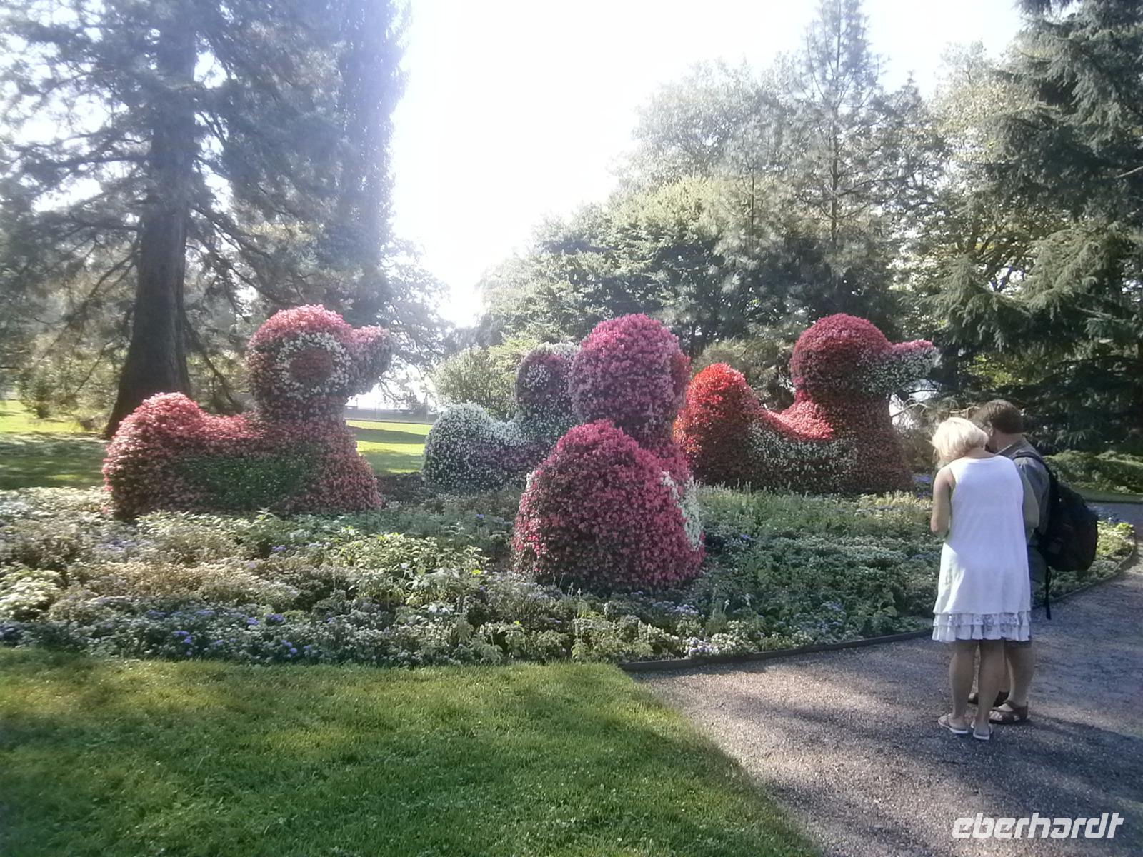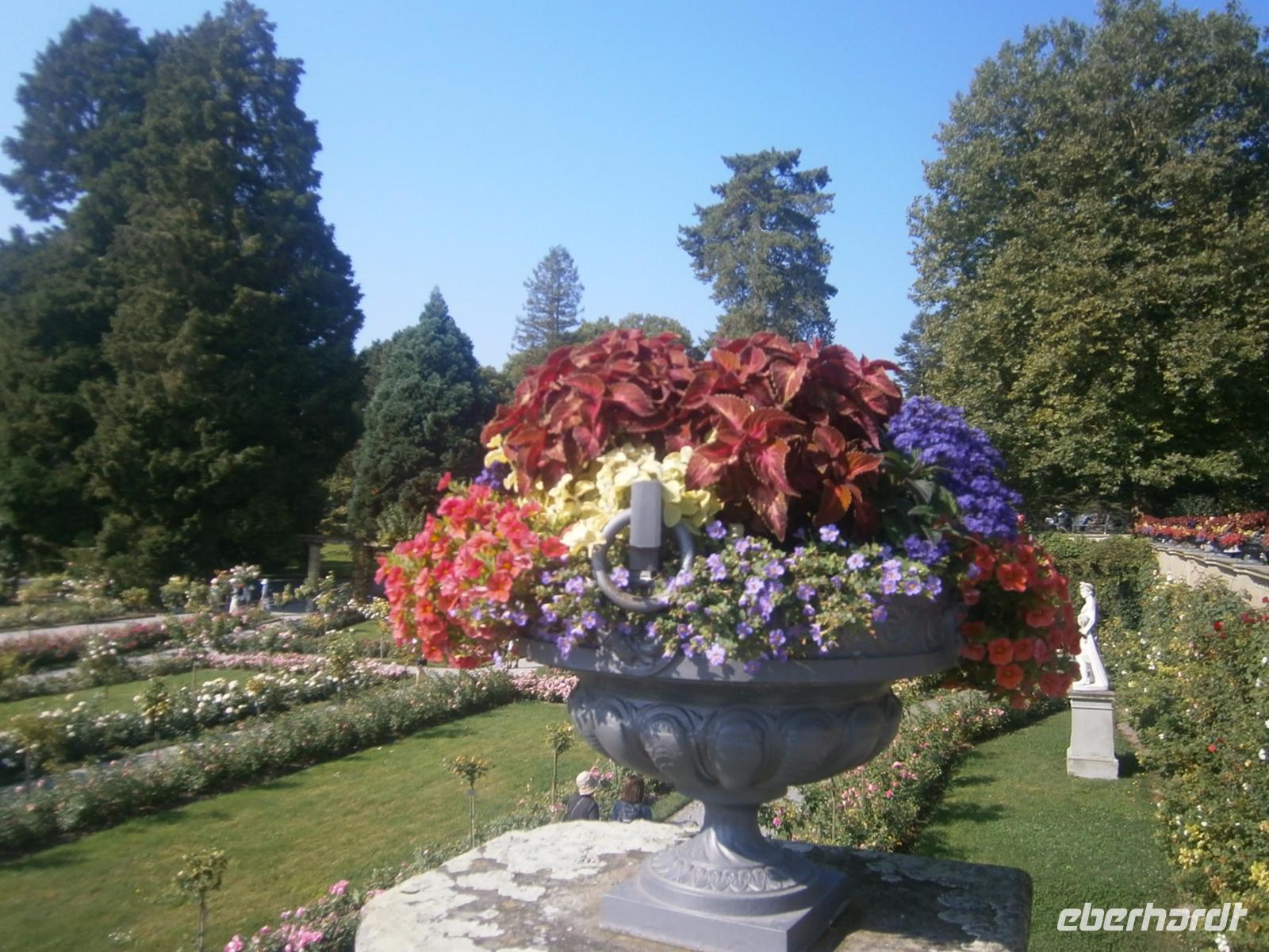 Im Park gibt es viele Wege, die zum Spaziergang einladen. Viel wird auch für Familien mit Kindern getan: Garteneisenbahn, lebende Tiere und andere Möglichkeiten zum Spielen sind vorhanden. Höhepunkt des Besuchs war vor allem der weitläufige Park in seiner ganzen bunten Vielfalt. Das Schmetterlingshaus mit zahlreichen Exemplaren in allen Farben und Größen, die zwischen den Besuchern umher schwirrten und die tropische Pflanzen und Schildkröten vermittelten einen Eindruck vom Regenwald. Das Schloss, die Schloßkirche und das Palmenhaus sowie das Arboretum waren weitere Höhepunkte. Auch für das leibliche Wohl w ar bestens gesorgt, durch das Vorhandensein zahlreicher gastronomischer Einrichtungen.