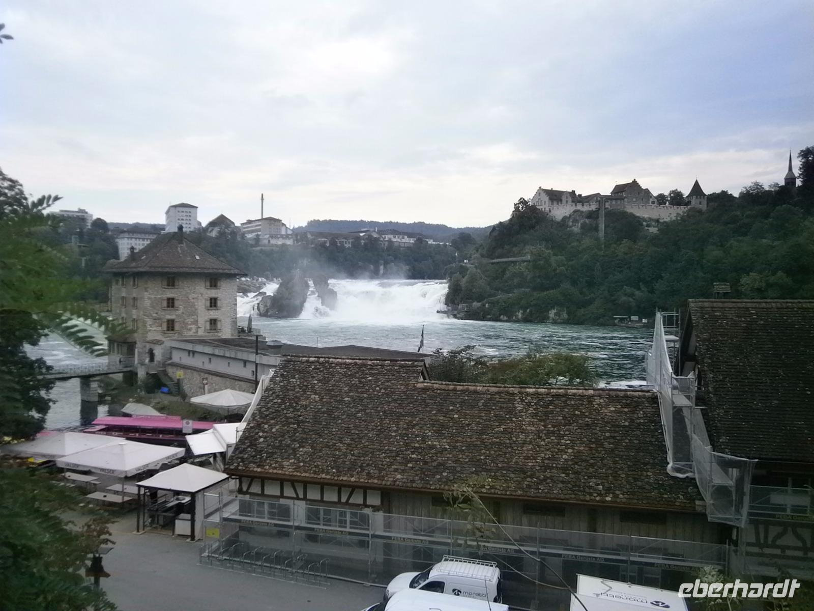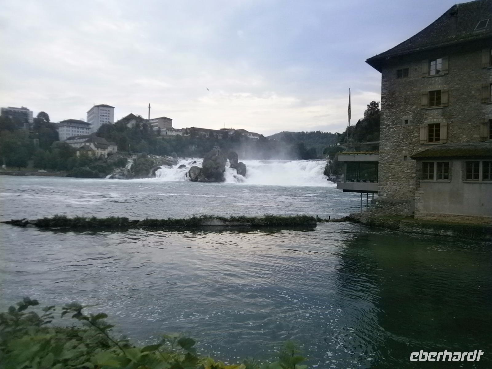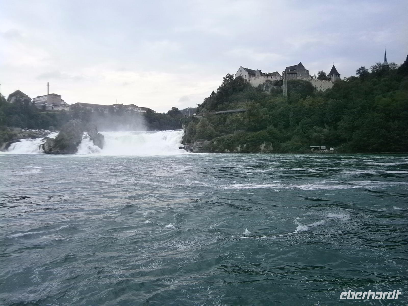 Am dritten Tag unserer Reise besuchten wir ebenfalls die Südseite des Bodensees, die hauptsächlich auf Schweizer Territorium liegt. Unser erstes Ziel war der Rheinfall bei der Stadt Schaffhausen. Hier stürzen die Wassermassen des Rheins, einige km nach dem Austritt aus dem Untersee, 25 m in die Tiefe. Dieses beeindruckende Spektakel konnten wir von Land aus, bei schönem Wetter, genießen.