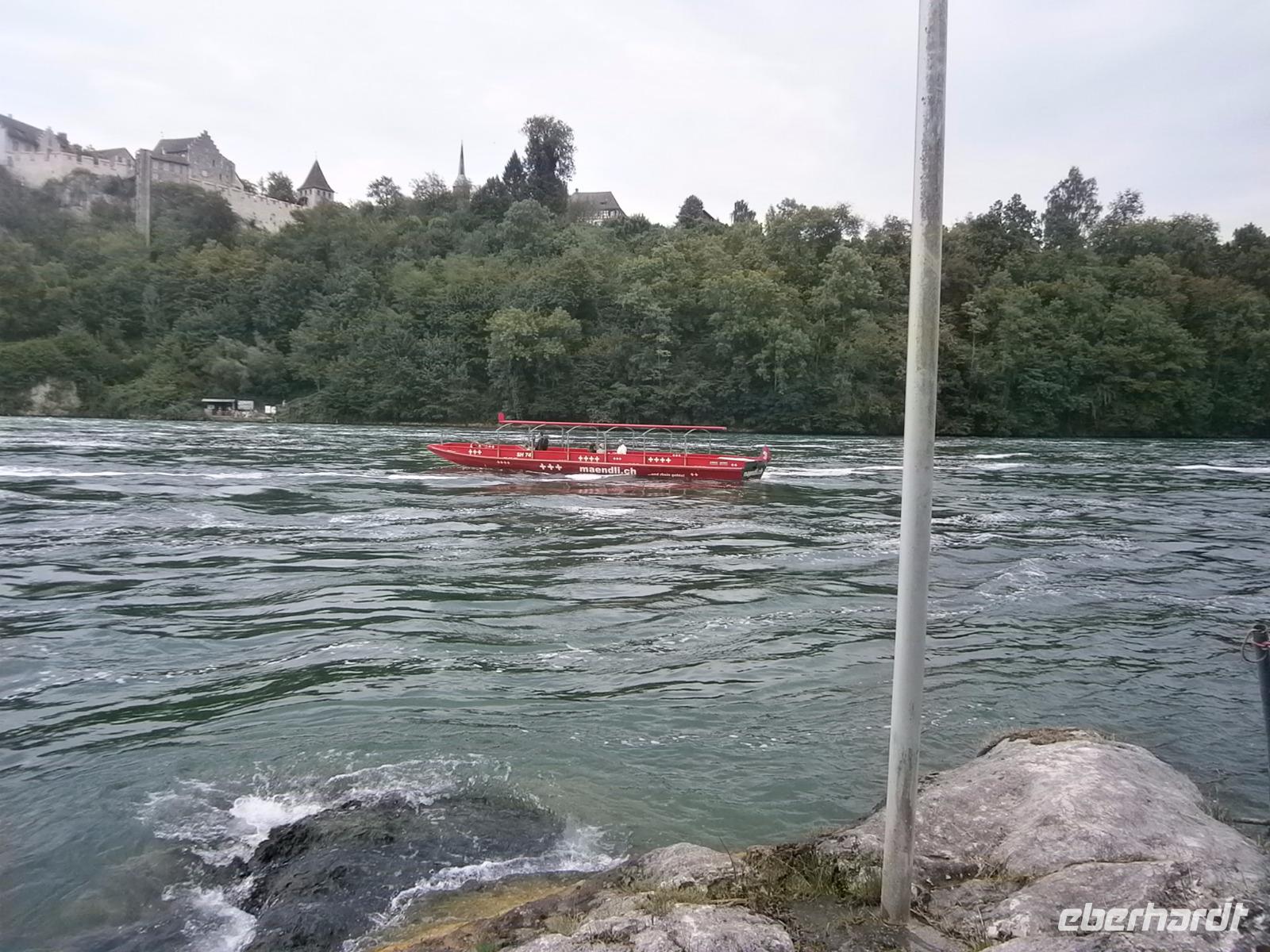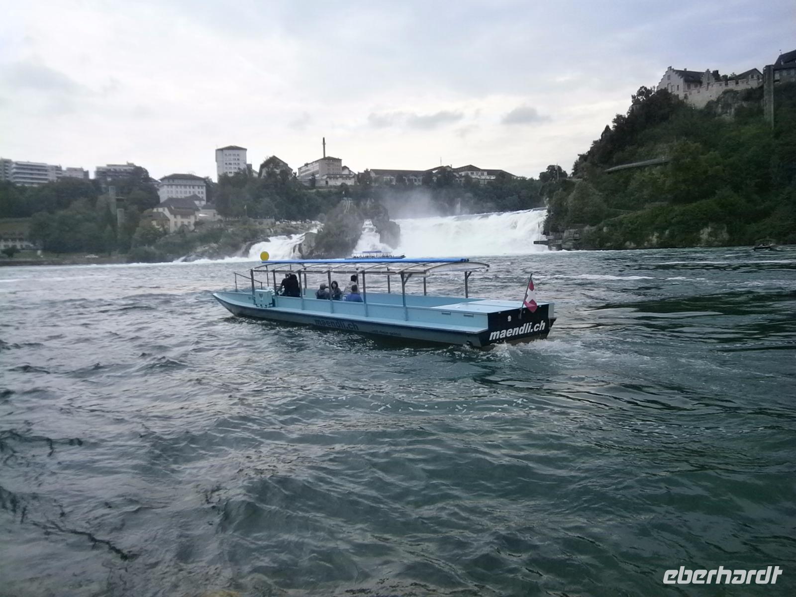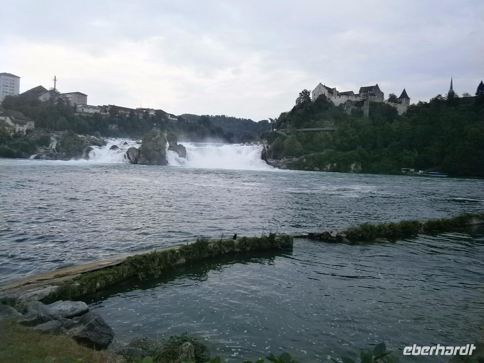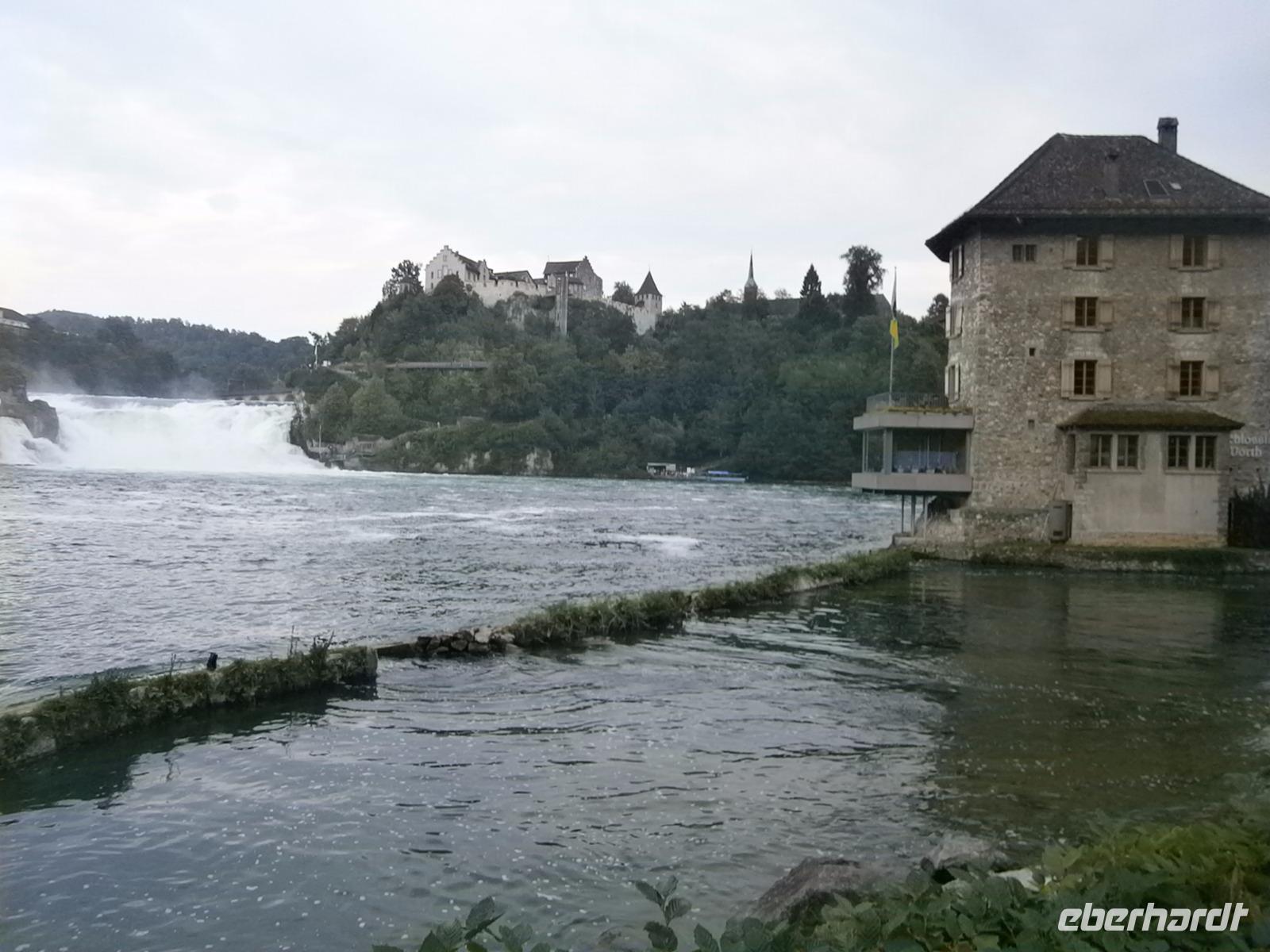 Am dritten Tag unserer Reise besuchten wir ebenfalls die Südseite des Bodensees, die hauptsächlich auf Schweizer Territorium liegt. Unser erstes Ziel war der Rheinfall bei der Stadt Schaffhausen. Hier stürzen die Wassermassen des Rheins, einige km nach dem Austritt aus dem Untersee, 25 m in die Tiefe. Dieses beeindruckende Spektakel konnten wir von Land aus, bei schönem Wetter, genießen.