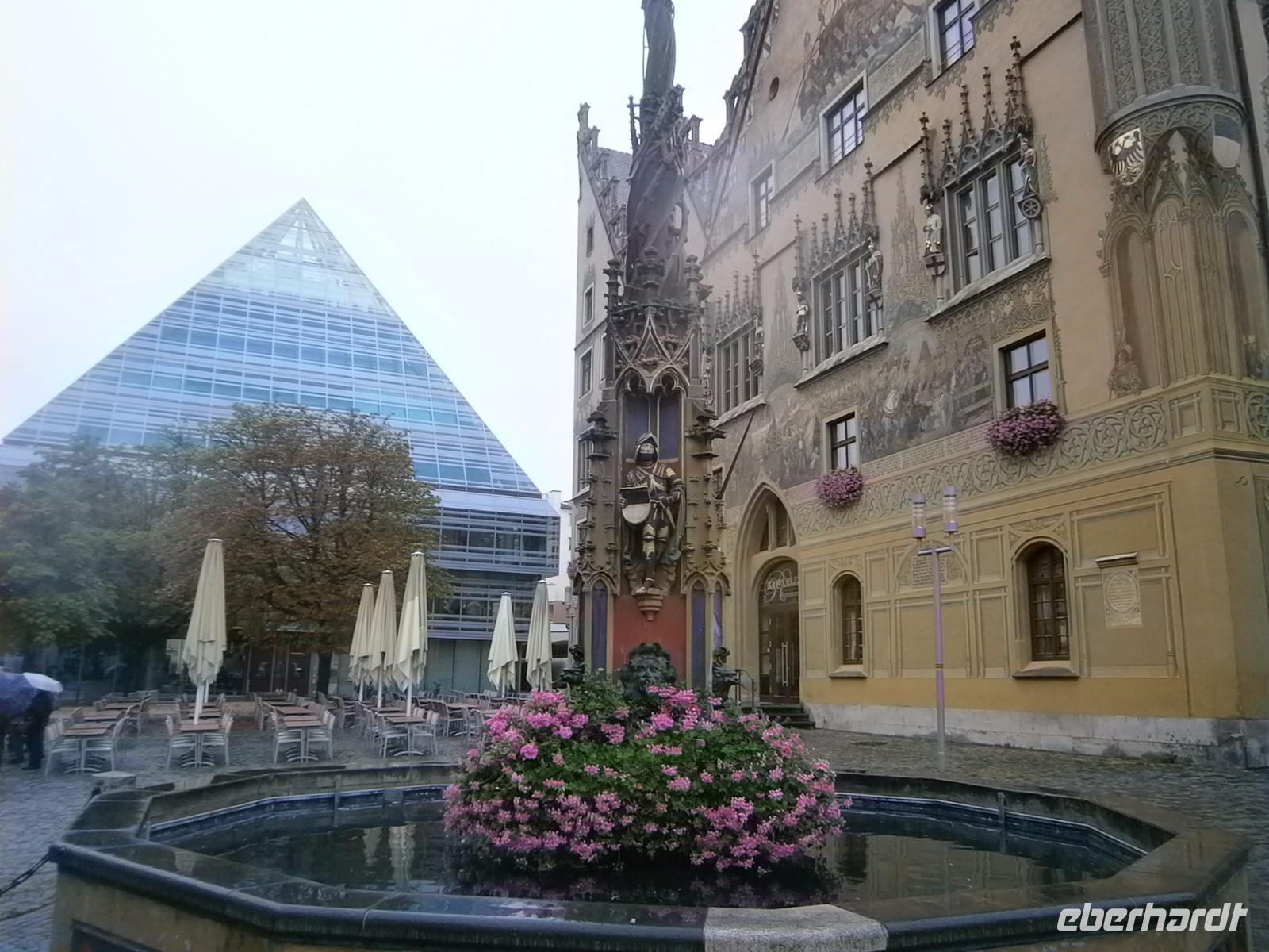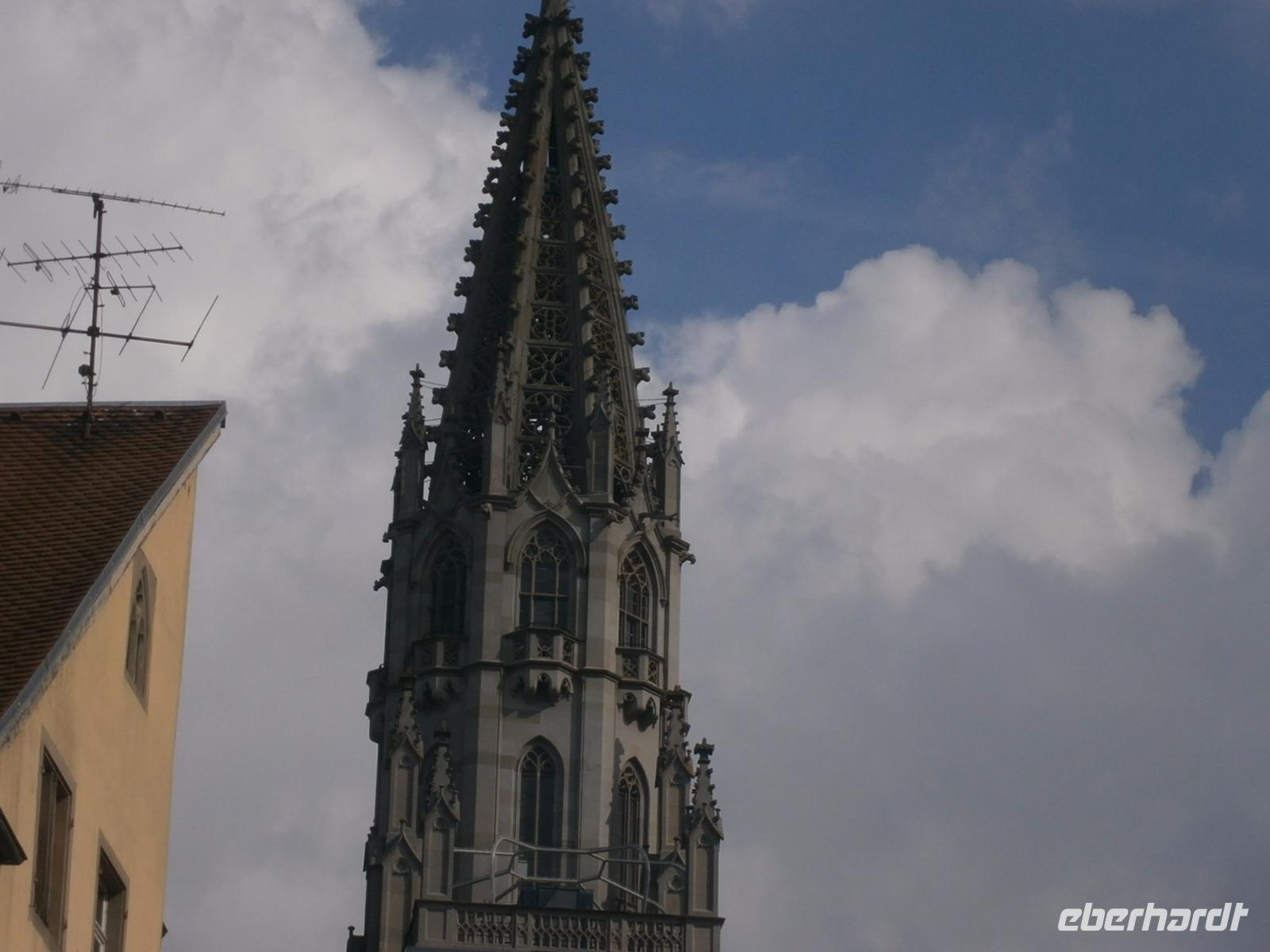 Nach der Verabschiedung durch den Seniorchef des Hotels Herrn Schenk fuhren wir durch den 1400 m langen Citytunnel und dem 6.700 m langen Pfändertunnel in Bregenz in Richtung Heimat. Auf der weiteren Fahrt an unserem sechsten und letzten Tag der Reise, machten wir noch einen Halt am Münster in Ulm, welches den höchsten Kirchturm der Welt, mit 161 m, besitzt. Obwohl im Innern ein Gottesdienst stattfand, konnten sich unsere Reisegäste von den sehenswerten Dingen im Kirchenschiff überzeugen. Auch das „Alte Rathaus" von Ulm mit dem davor stehenden Marktbrunnen, dem sog. „Fischkasten" gestaltet von Jörg Syrlin d.Ä., in der Nähe gelegen und das rekonstruierte Fischer-und Gerberviertel sind sehenswert.