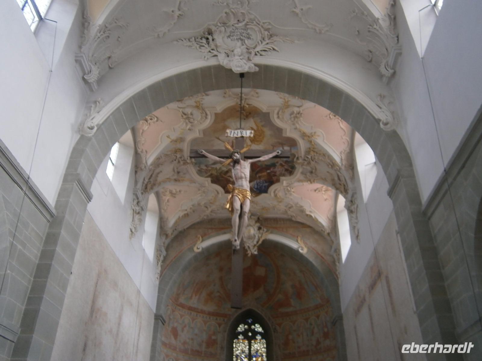 In vielen Orten, die wir auf der Rückreise zu unserem Hotel passierten, gibt es etwas zu entdecken. So u.a. in Münsterlingen: In einer ehemaligen Klosterkirche ist der Kopf des hl. Johannes aus der Spätgotik zu sehen. Diese Figur stammt aus Hagnau am gegenüber liegenden deutschen Ufer. Sie wurde bei der letzten "Seegfrörne" 1963 in einer feierlichen Eisprozession über den See hierher gebracht. Es ist jedoch nicht vorausschaubar, wann der See wieder zufriert und die Einwohner von Hagnau die Skulptur zurückerhalten.