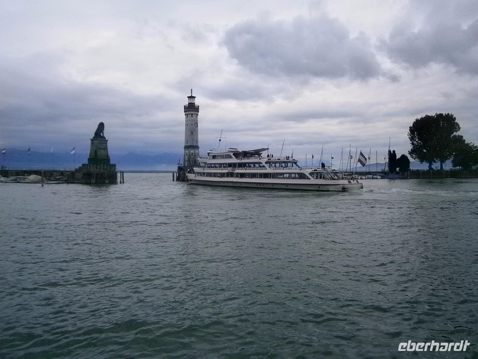 Der vorletzte Tag begann mit einem Spaziergang auf der Bodenseeinsel Lindau. Drei Kirchen hat die Lindauer Altstadt zu bieten: die Stadtpfarrkirche St. Stephan und das Münster „Unser lieben Frauen", beide am Markt gelegen und die Peterskirche, die älteste Kirche Lindaus am Schrannenplatz, die zu einer Gedenkstätte für gefallene Soldaten des 1. Weltkrieges umgestaltet wurde. Daneben befindet sich der Diebsturm. Über die Maximilianstraße, der Hauptgeschäftsstraße der Altstadt, erreicht man den Bismarckplatz mit dem sehenswerten Alten Rathaus und dem Lindaubrunnen. Am Seehafen steht der Mangturm, um 1200 als Leuchtturm erbaut, der 33 m hohe „Neue Leuchtturm" und der 6 m hohe „Bayerische Löwe" bilden das Wahrzeichen von Lindau, die weltberühmte Hafeneinfahrt.