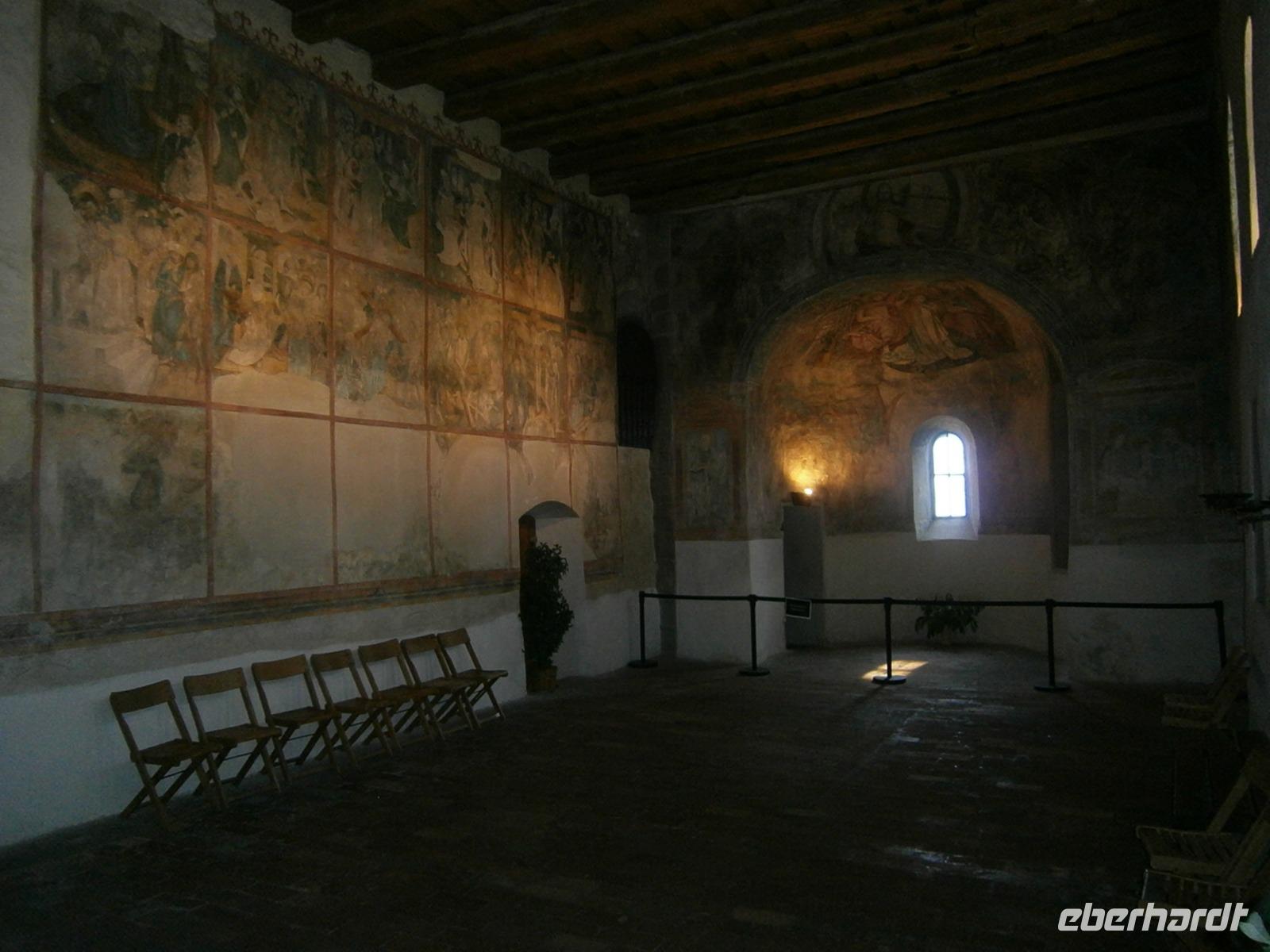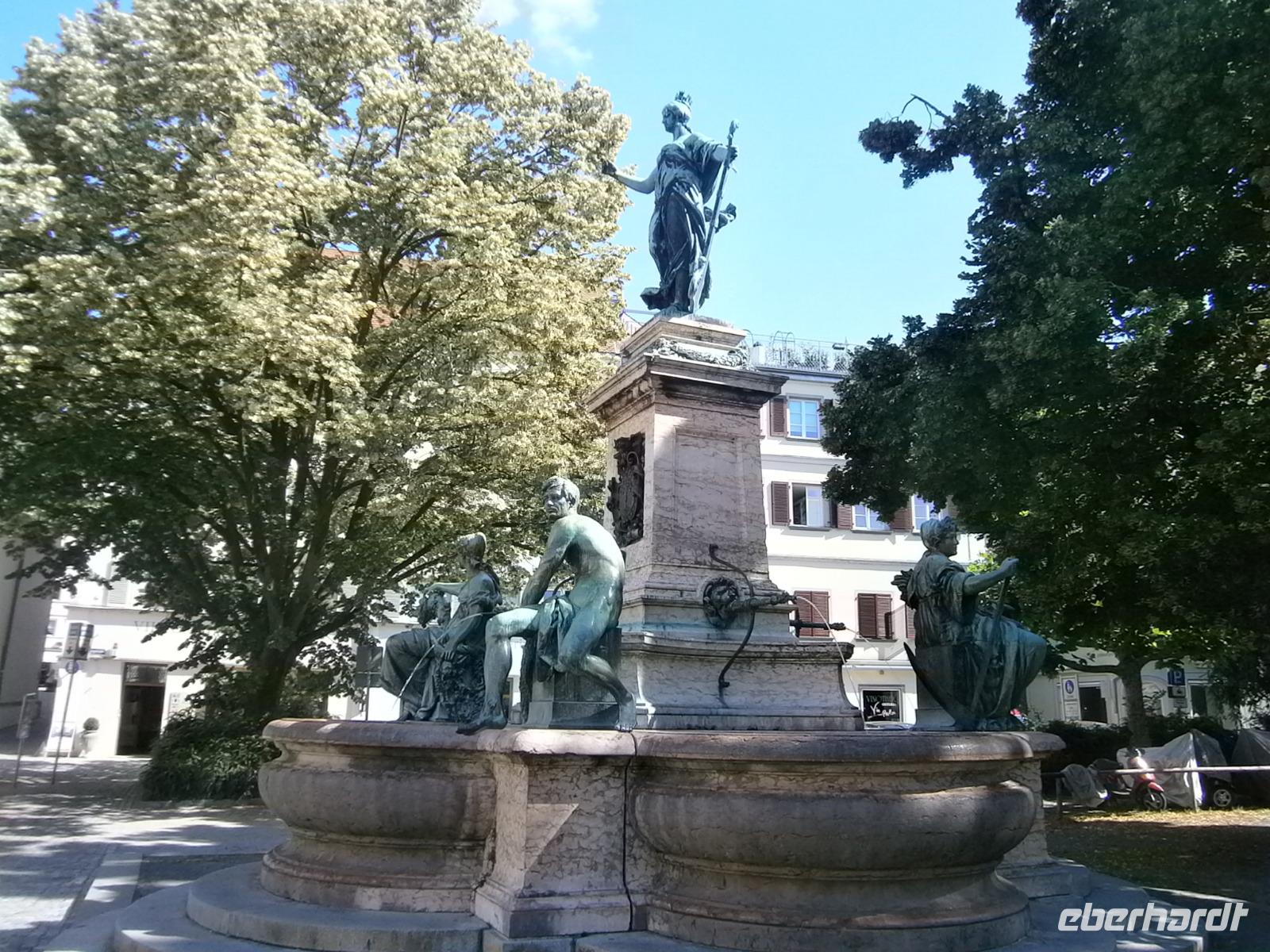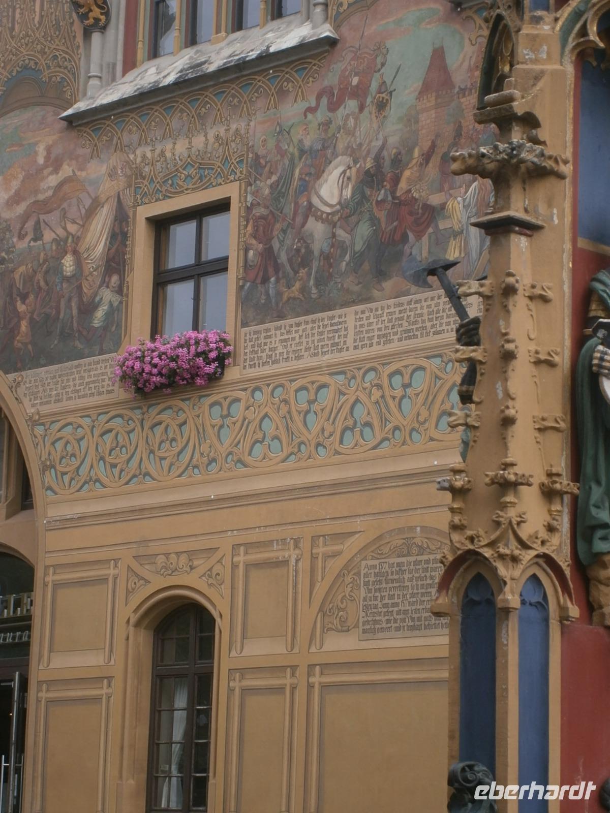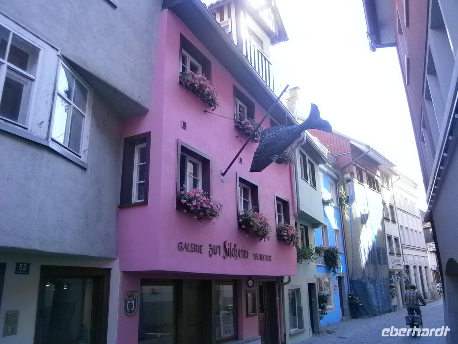 Anschließend fuhren wir nach Stein am Rhein, dem viel besuchten „Rothenburg des Hochrheins". Hier am km 1 des Rheinlaufs, erzählen Häuser Geschichten. An den Fassaden findet man Darstellungen u.a. von David und Goliath, Diogenes mit dem Faß sowie Allegorien von Klugheit und Liebe, Krieg und Frieden. Im Zentrum, zwischen den beiden Stadttoren, kann man schön bummeln oder eine der zahlreichen Restaurants oder Cafe's aufsuchen. Das „Lindwurmmuseum" und das Klostermuseum „St. Georg" laden zum Besuch ein. Auch J.W.Goethe besuchte viermal diesen malerischen Ort.