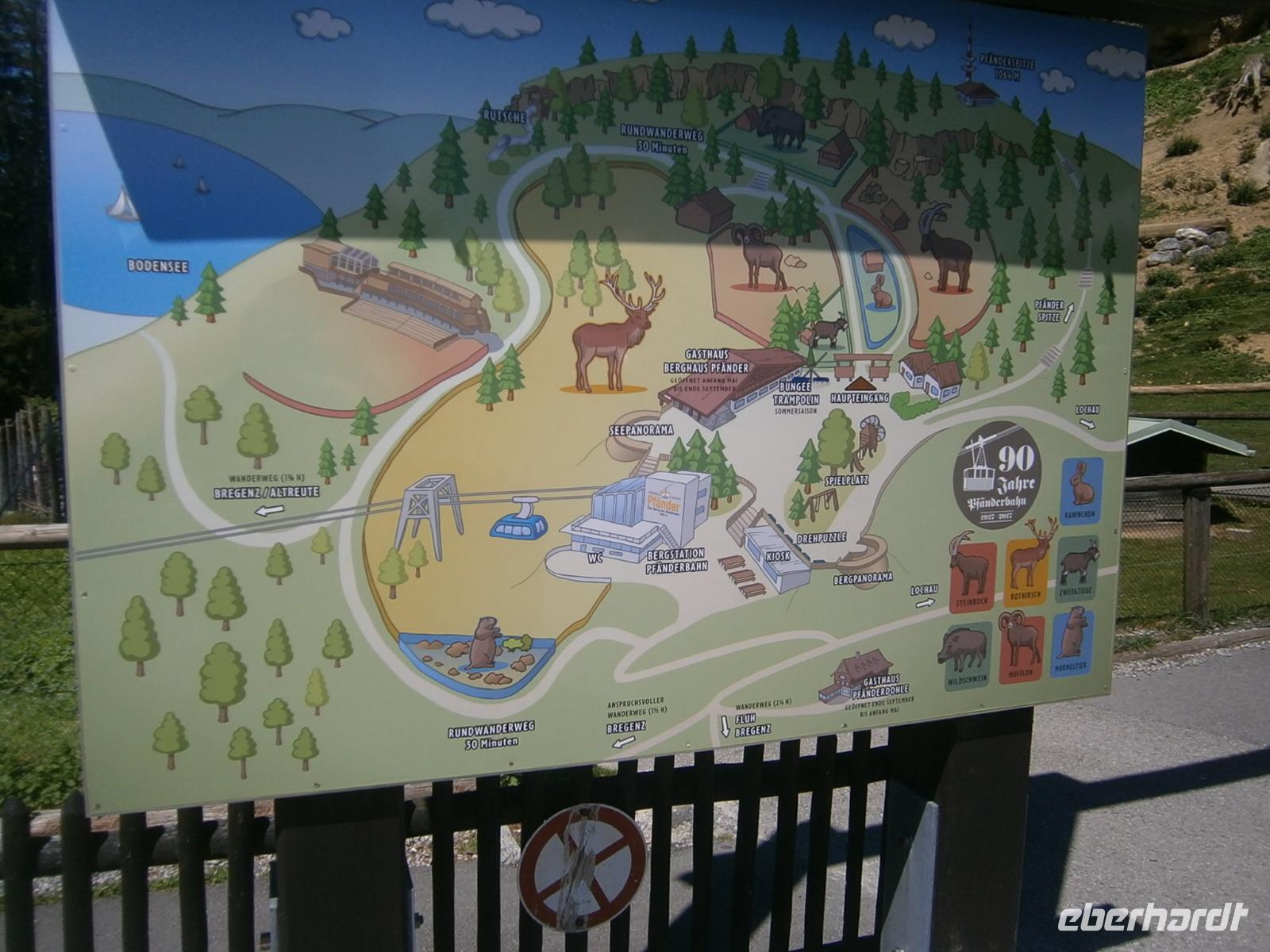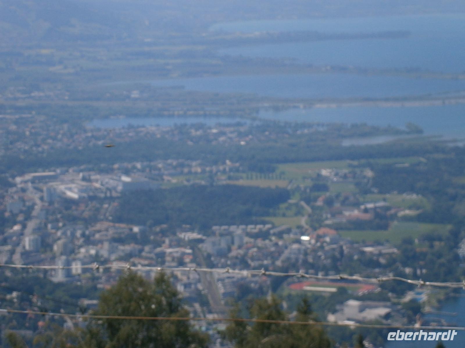 Am nächsten Tag erfolgte der Stadtrundgang in Bregenz mit unserer örtlichen Reiseleiterin Frau Fröwis. Begonnen wurde am Ufer des Bodensees. Dann ging es in die Oberstadt mit ihren Sehenswürdigkeiten. Dazu wurden jeweils die entsprechenden Informationen gegeben. In der Stadtpfarrkirche „St.Gallus" wurde auch der „Silberaltar" besichtigt. Nach einer Freizeit gingen wir zur Talstation des Pfänders, um den „Hausberg" von Bregenz, zu besuchen. In ca. 10 Min. brachte uns die Kabinenbahn auf den Gipfel des berühmtesten Aussichtspunkts der Region mit 1064 m. Von hier bietet sich ein einzigartiger Ausblick auf den Bodensee, Österreich, Deutschland, die Schweiz und 240 Alpengipfel. Auf einem Rundweg kann man den „Alpenwildpark" besichtigen, für das leibliche Wohl ist bestens gesorgt im Berghaus Pfänder.