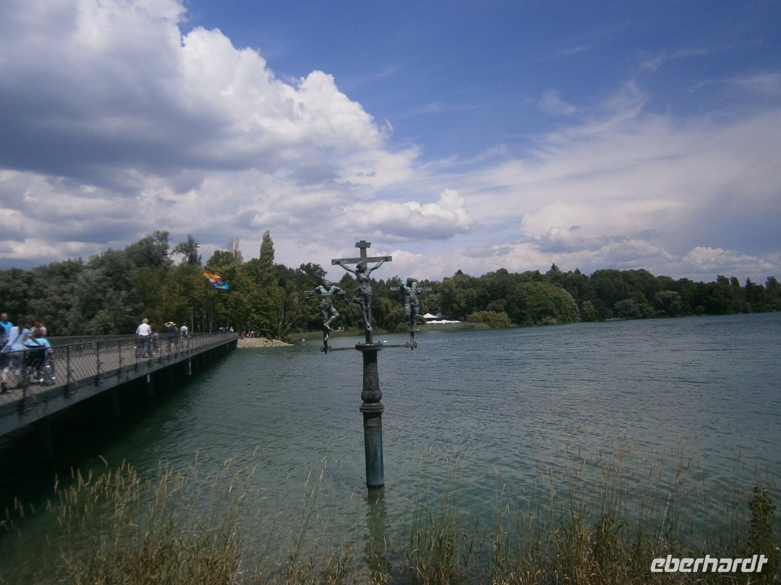 Unsere Rückfahrt führte uns über die Halbinsel Höri durch die Orte Hemmenhofen (hier lebte lange Zeit der Maler und Graphiker Otto Dix) und Gaienhofen, (das kleine Dorf war schon frühzeitig ein bevorzugter Wohnsitz von Malern und Dichtern u.a. Hermann Hesse, Erich Heckel und Max Ackermann).In vielen Orten, die wir auf der Rückreise zu unserem Hotel passierten, gibt es etwas zu entdecken. So u.a. in Münsterlingen: In einer ehemaligen Klosterkirche ist der Kopf des hl. Johannes aus der Spätgotik zu sehen. Diese Figur stammt aus Hagnau am gegenüber liegenden deutschen Ufer. Sie wurde bei der letzten "Seegfrörne" 1963 in einer feierlichen Eisprozession über den See hierher gebracht. Es ist jedoch nicht vorausschaubar, wann der See wieder zufriert und die Einwohner von Hagnau die Skulptur zurückerhalten.Die weitere Rückreise führte uns dann über Romannshorn, Arborn (Arborner Bleiche, besiedelt seit 5000 Jahren), Rorschach (barocke Handelsstadt), Staad mit Hundertwasser- Markthalle, Flugplatz Altenrhein, und Naturschutzgebiet Rheinspitz nach Bregenz.