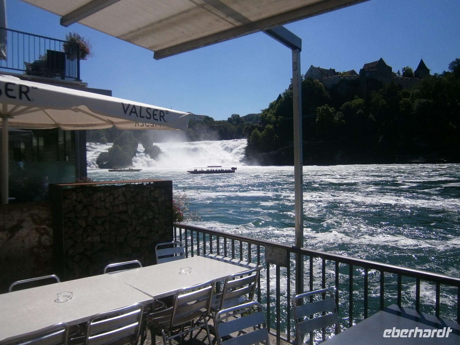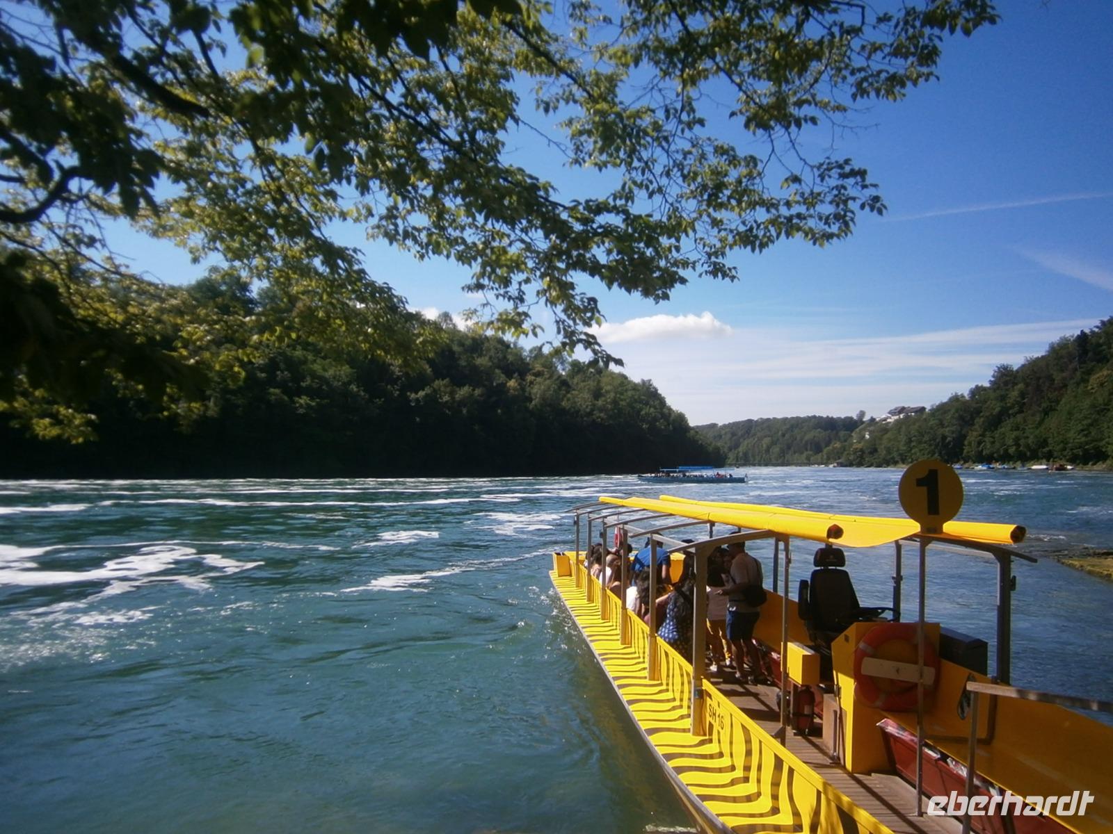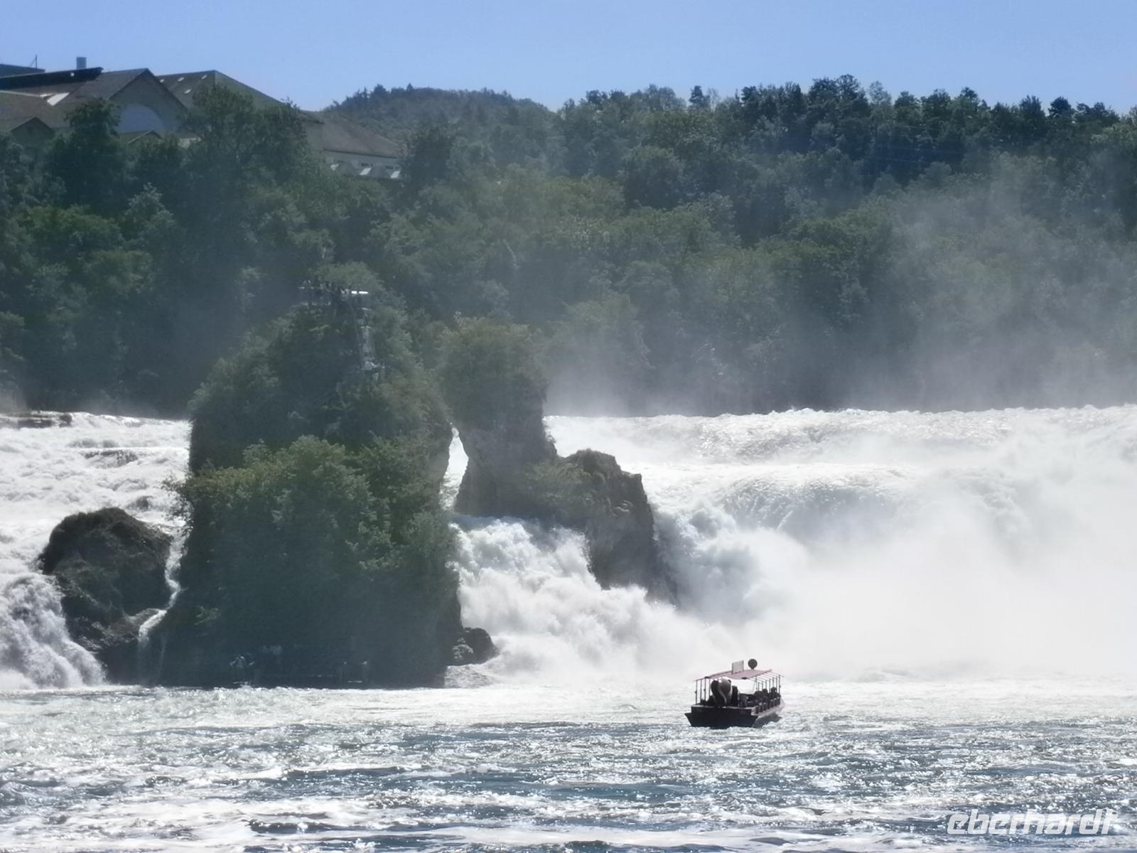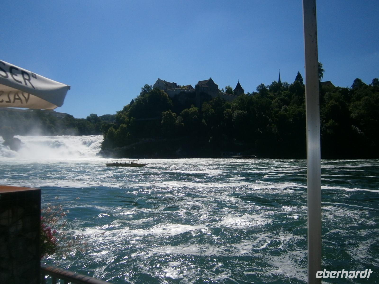 Am dritten Tag unserer Reise besuchten wir ebenfalls die Südseite des Bodensees, die hauptsächlich auf Schweizer Territorium liegt. Unser erstes Ziel war der Rheinfall bei der Stadt Schaffhausen. Hier stürzen die Wassermassen des Rheins, einige km nach dem Austritt aus dem Untersee, 25 m in die Tiefe. Dieses beeindruckende Spektakel konnten wir von Land aus, bei schönem Wetter, genießen.