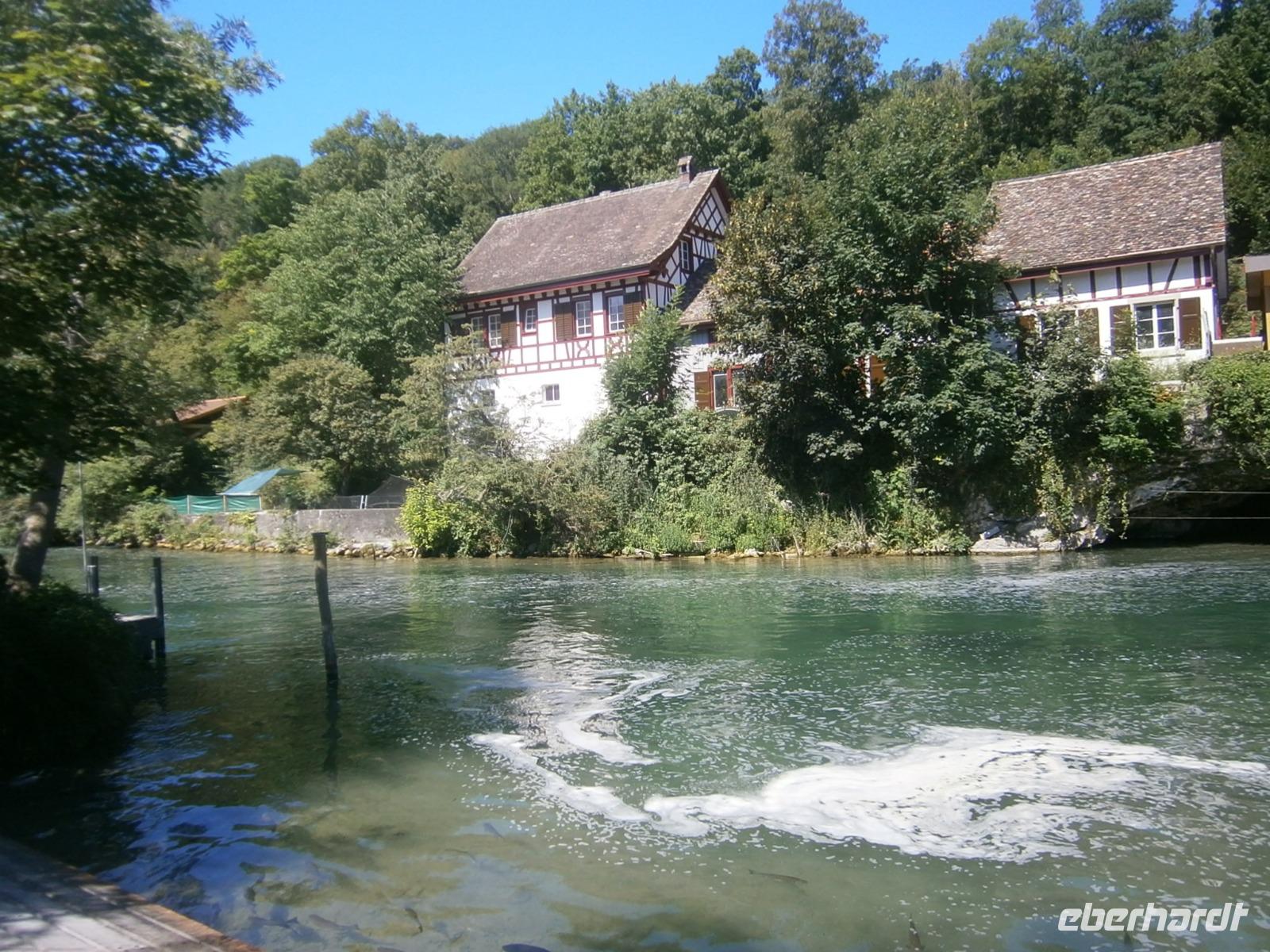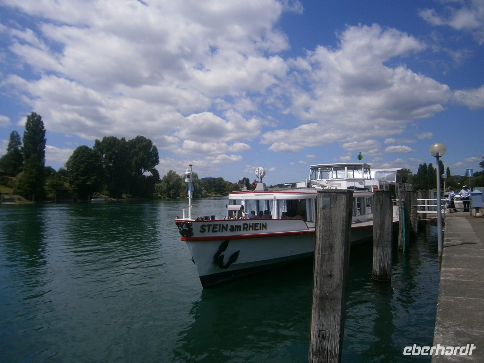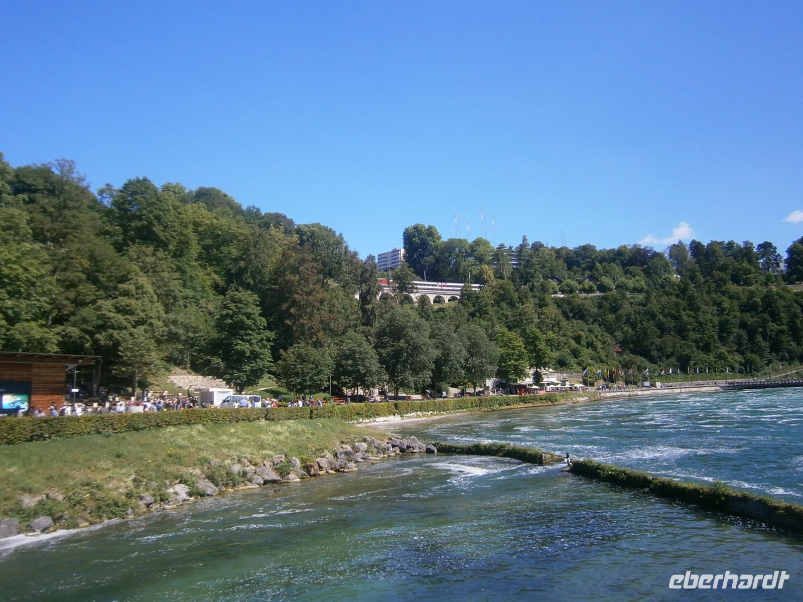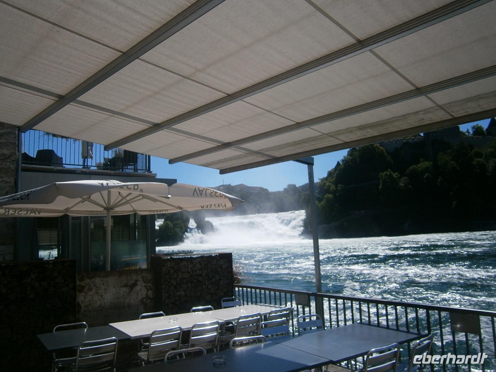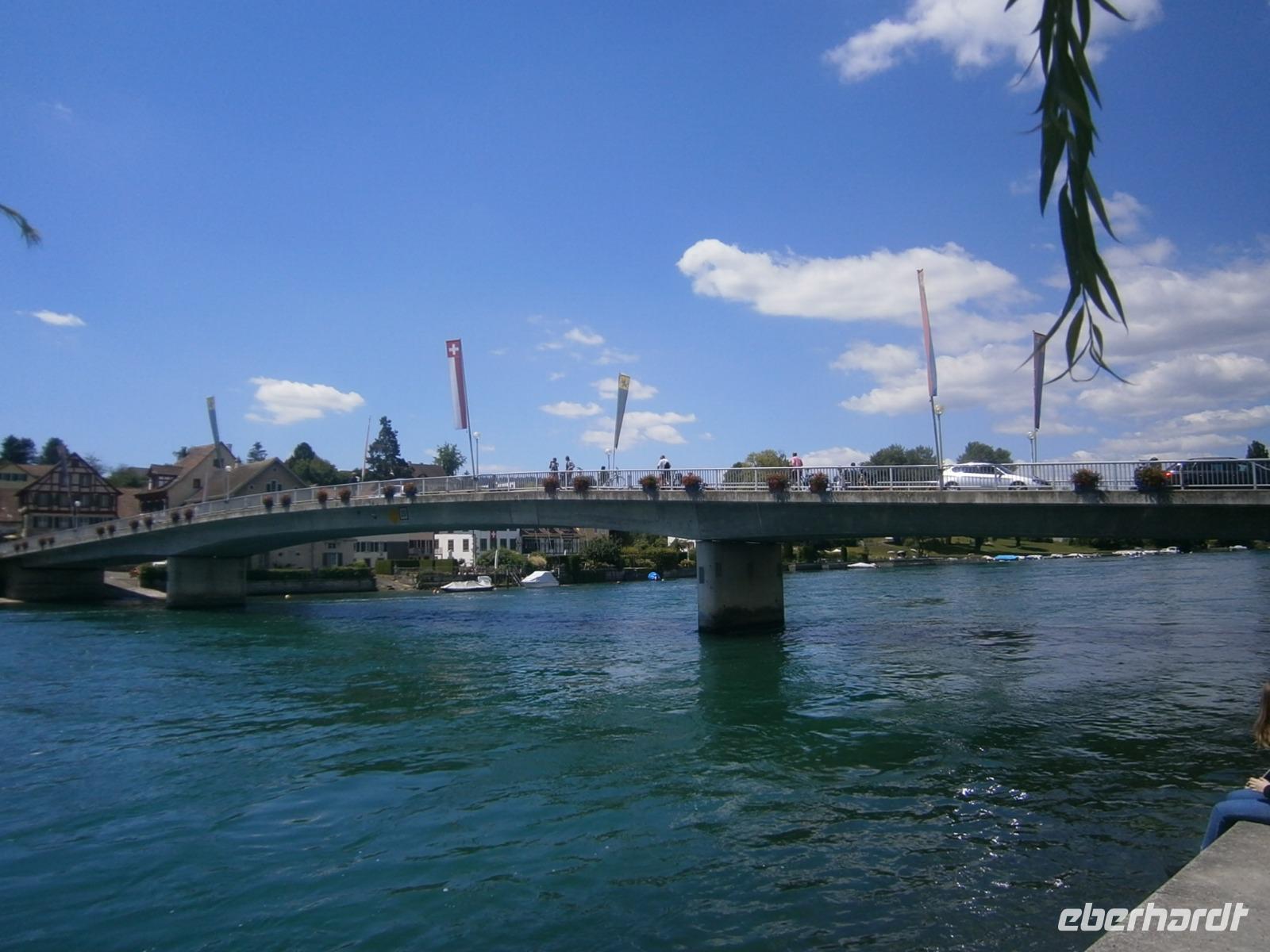 Am dritten Tag unserer Reise besuchten wir ebenfalls die Südseite des Bodensees, die hauptsächlich auf Schweizer Territorium liegt. Unser erstes Ziel war der Rheinfall bei der Stadt Schaffhausen. Hier stürzen die Wassermassen des Rheins, einige km nach dem Austritt aus dem Untersee, 25 m in die Tiefe. Dieses beeindruckende Spektakel konnten wir von Land aus, bei schönem Wetter, genießen.