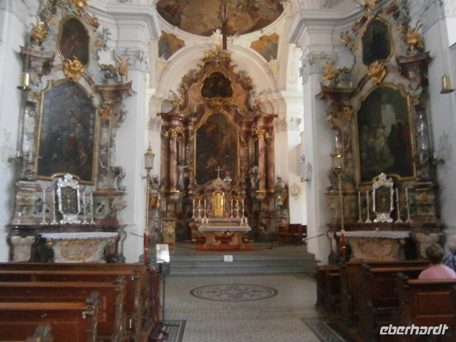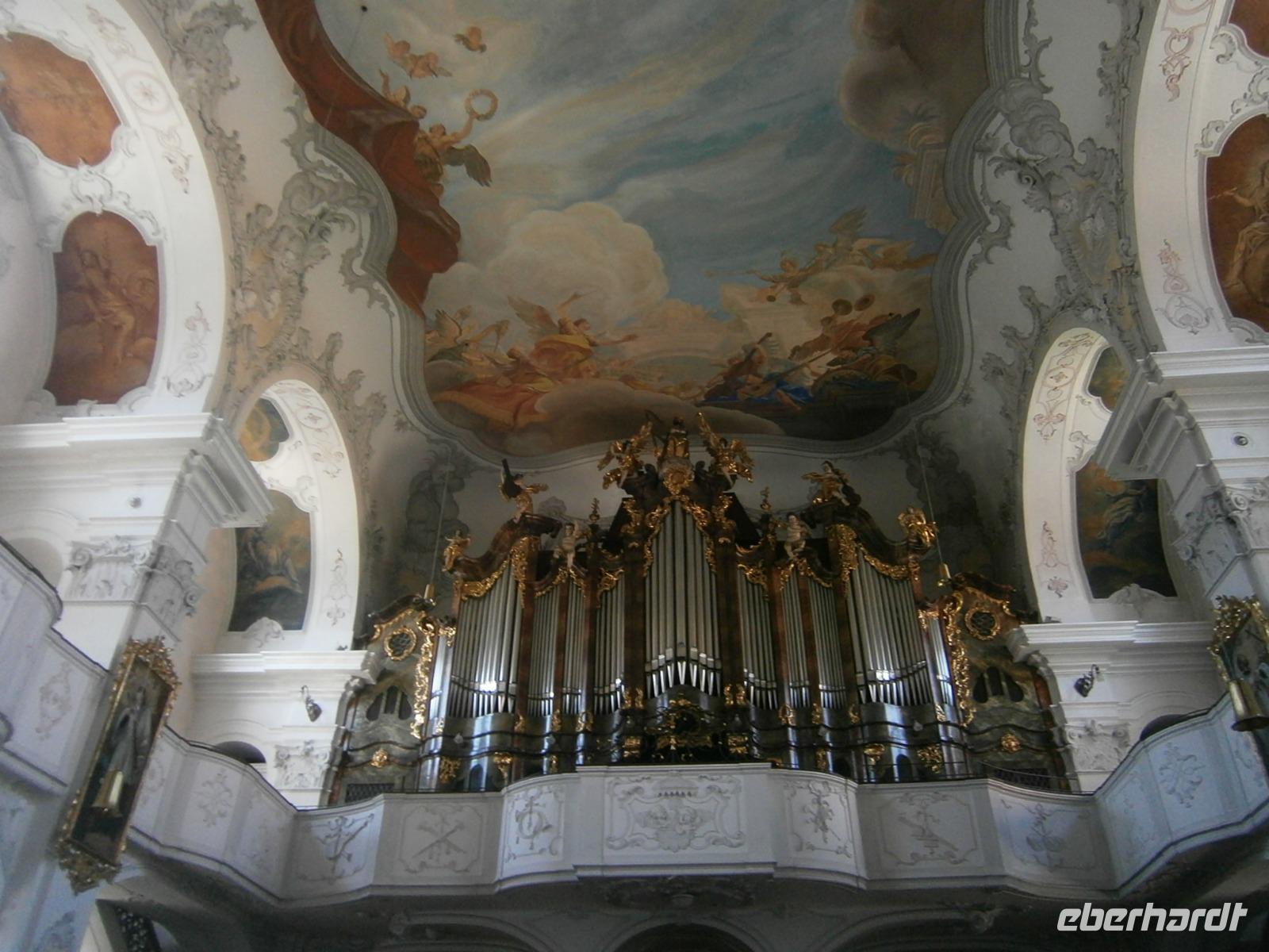 Weiter ging die Fahrt, entlang dem Nordufer des im Volksmund genannten „Schwäbischen Meeres", dem drittgrößten See Mitteleuropas. Wir besuchten die Wallfahrtskirche Birnau, die als schönstes Barockjuwel des Bodensees bezeichnet wird. Sie verkörpert die Hochstimmung des Katholizismus zur Zeit der Gegenreformation, aber auch Prunk und Reichtum der Äbte des Zisterzienserklosters Salem.Nachdem wir, trotz einer Hochzeit, die prächtige Innenausstattung gesehen hatten, brachte uns der Bus zum Schloß Salem, welches von einigen Gästen besucht wurde, den in der Nähe befindlichen Affenberg, mit den zahlreichen frei fliegenden Störchen und ca. 200 frei lebenden Berberaffen, besuchte der andere Teil unserer Gäste zum Abschluß des Tages.