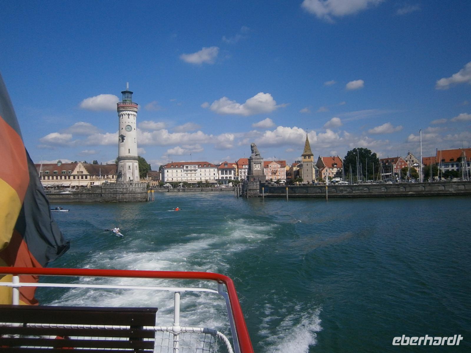 Der vorletzte Tag begann mit einem Spaziergang auf der Bodenseeinsel Lindau. Drei Kirchen hat die Lindauer Altstadt zu bieten: die Stadtpfarrkirche St. Stephan und das Münster „Unser lieben Frauen", beide am Markt gelegen und die Peterskirche, die älteste Kirche Lindaus am Schrannenplatz, die zu einer Gedenkstätte für gefallene Soldaten des 1. Weltkrieges umgestaltet wurde. Daneben befindet sich der Diebsturm. Über die Maximilianstraße, der Hauptgeschäftsstraße der Altstadt, erreicht man den Bismarckplatz mit dem sehenswerten Alten Rathaus und dem Lindaubrunnen. Am Seehafen steht der Mangturm, um 1200 als Leuchtturm erbaut, der 33 m hohe „Neue Leuchtturm" und der 6 m hohe „Bayerische Löwe" bilden das Wahrzeichen von Lindau, die weltberühmte Hafeneinfahrt.