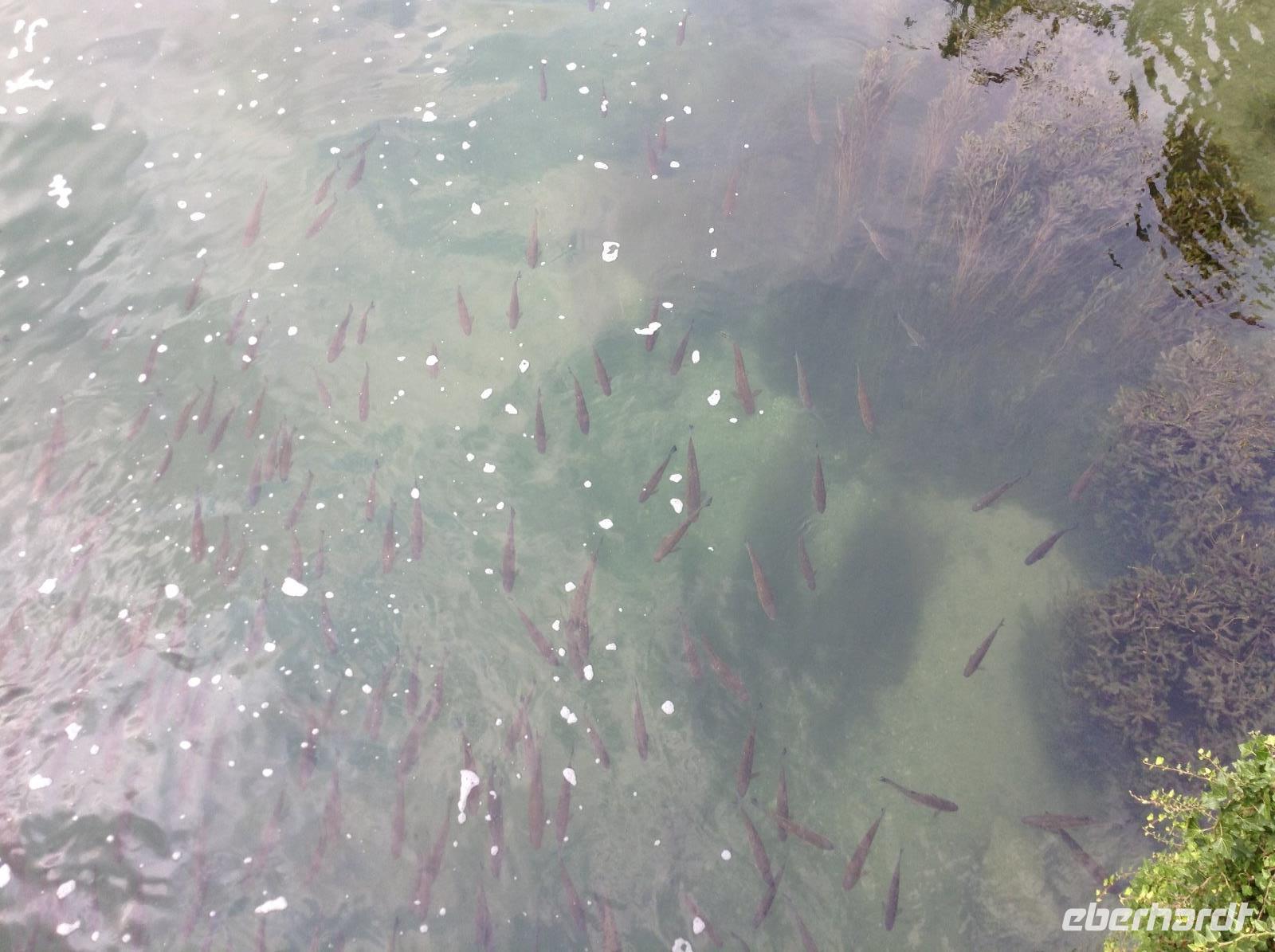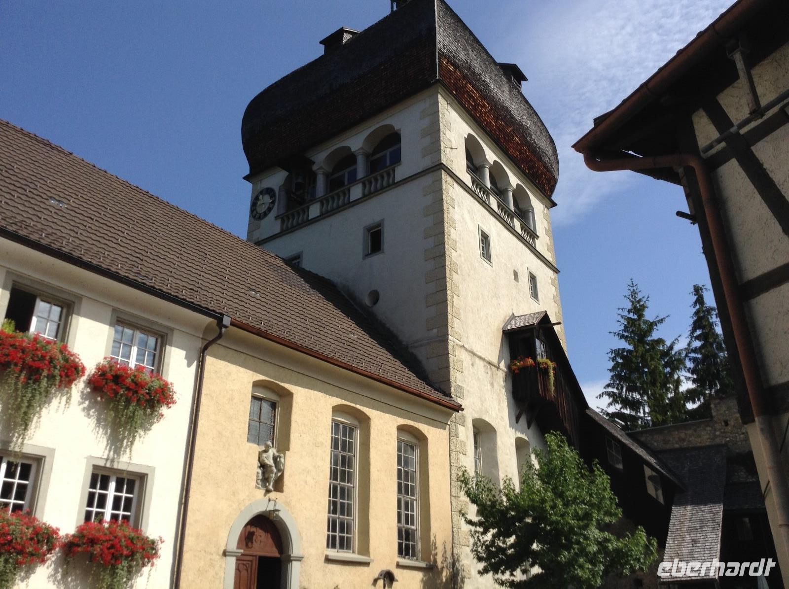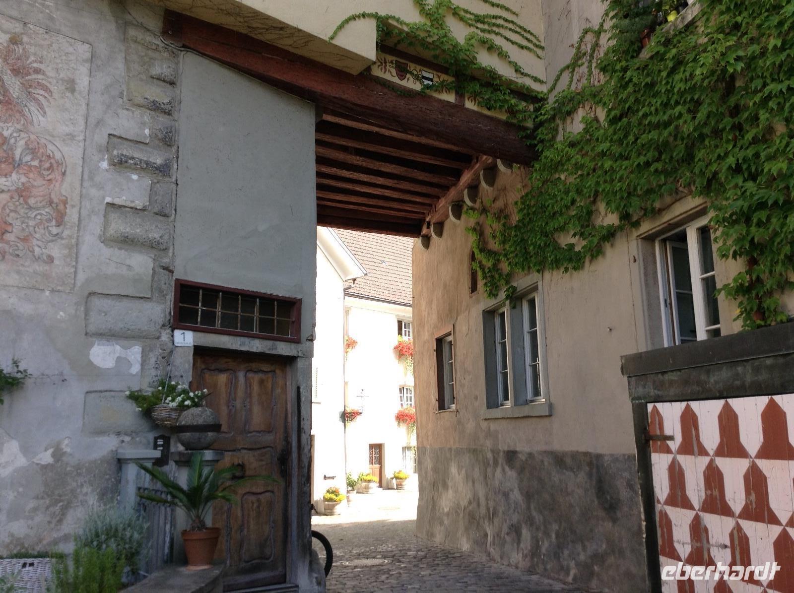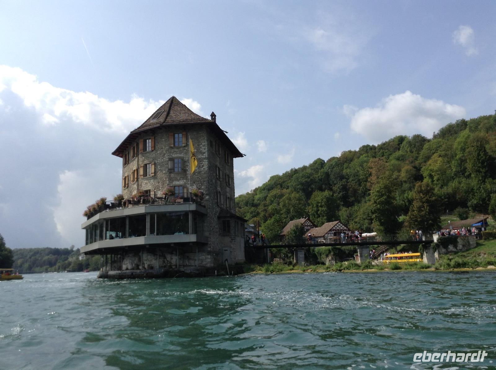 Wieder durch die Schweiz war unsere Anreise, diesmal etwas weiter im Hinterland über Winterthur. Wir erreichten den legendären Wasserfall, das Wetter war etwas durchwachsen, aber doch trocken. Höhepunkt beim Besuch am Wasserfall war die kleine Bootsfahrt, die es als Wow für alle spendiert gab. Wir mußten etwas warten, ehe wir als Gruppe fahren konnten, aber das Erlebnis war es wirklich wert. Ganz dicht erlebten wir, wie sich die Wassermassen des Rhein-Flusses da über 23 Meter in die Tiefe stürzten. Ein tolles Erlebnis. Dan fuhren wir weiter nach Stein am Rhein, dort, wo der Rhein den Bodensee wieder verläßt. Uns erwartete eine wunderschöne alte Stadt, die Häuser mit Lüftelmalerei und altem Fachwerk. Es war Zeit genug zum Genießen, Essen, Bummeln, Anstaunen.