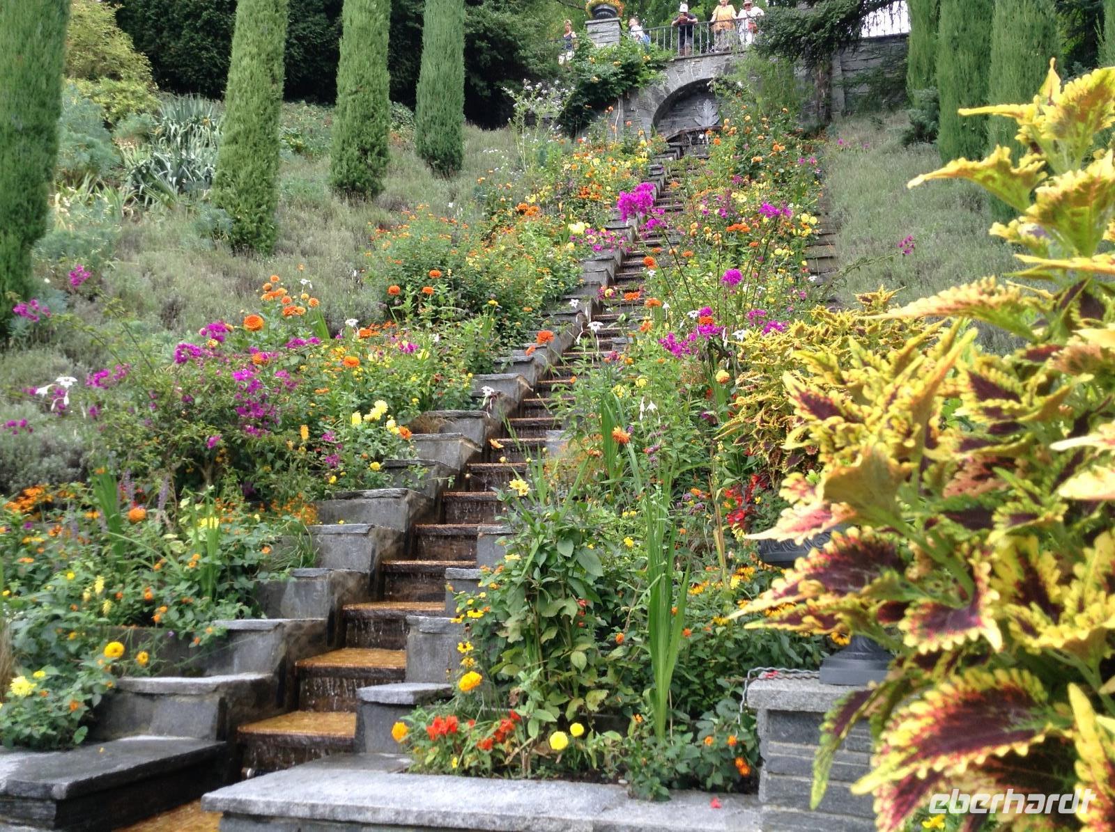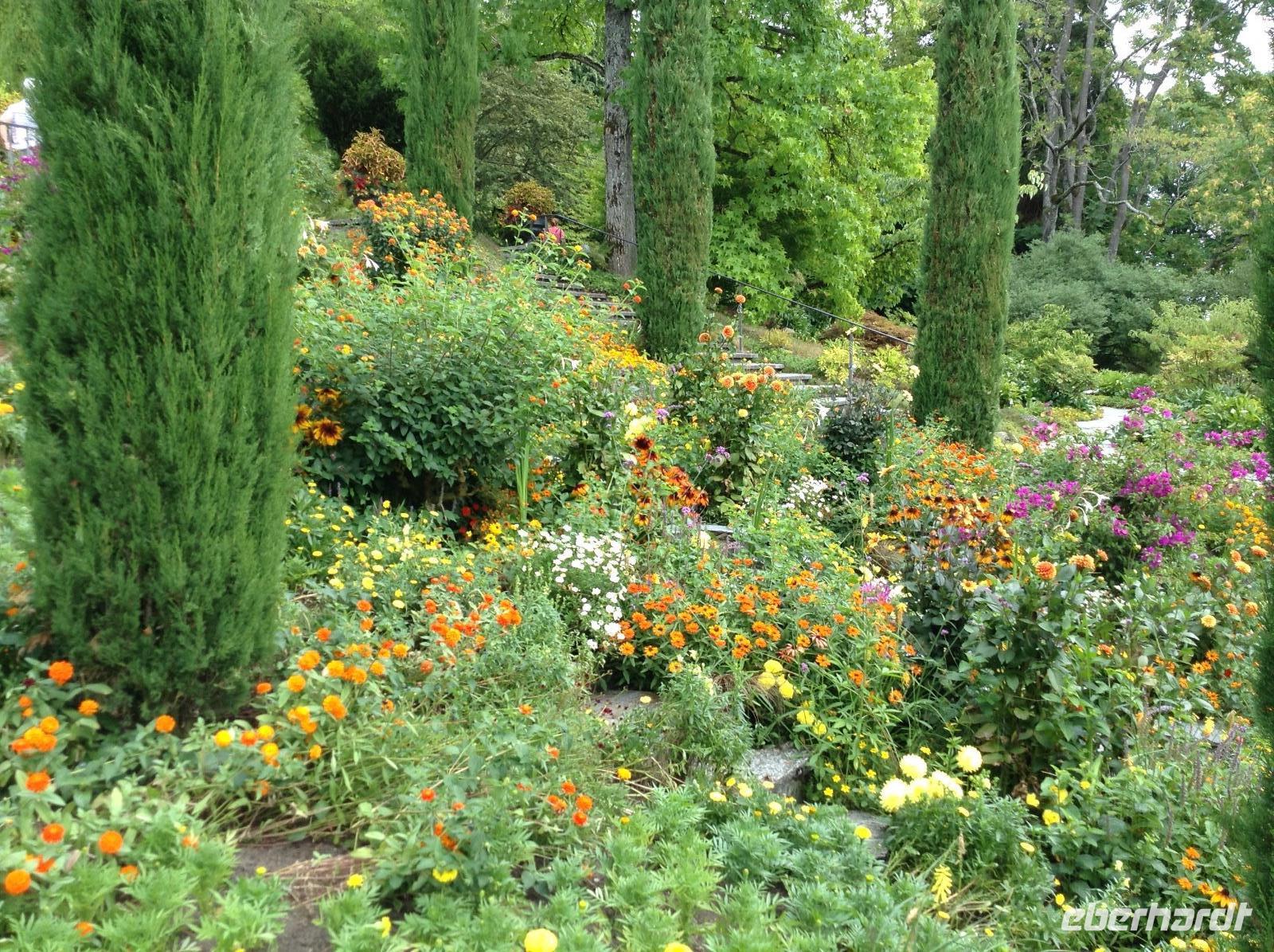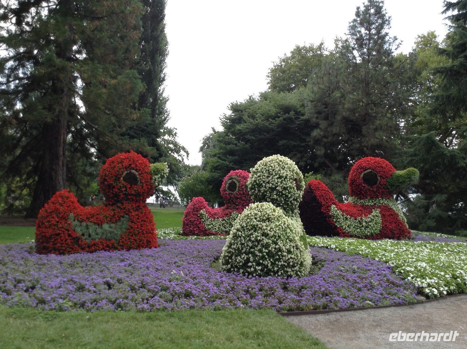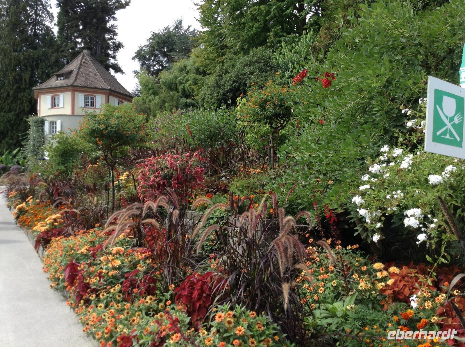 Den ganzen Vormittag bis über den Mittag waren wir auf der Blumeninsel, besuchten das Schmetterlingshaus, das Schloss, das Palmenhaus, die kleine Kirche und die wunderschön gestalteten Blumenfelder. Der Pfau und die Blumenenten waren der krönende Abschluß.