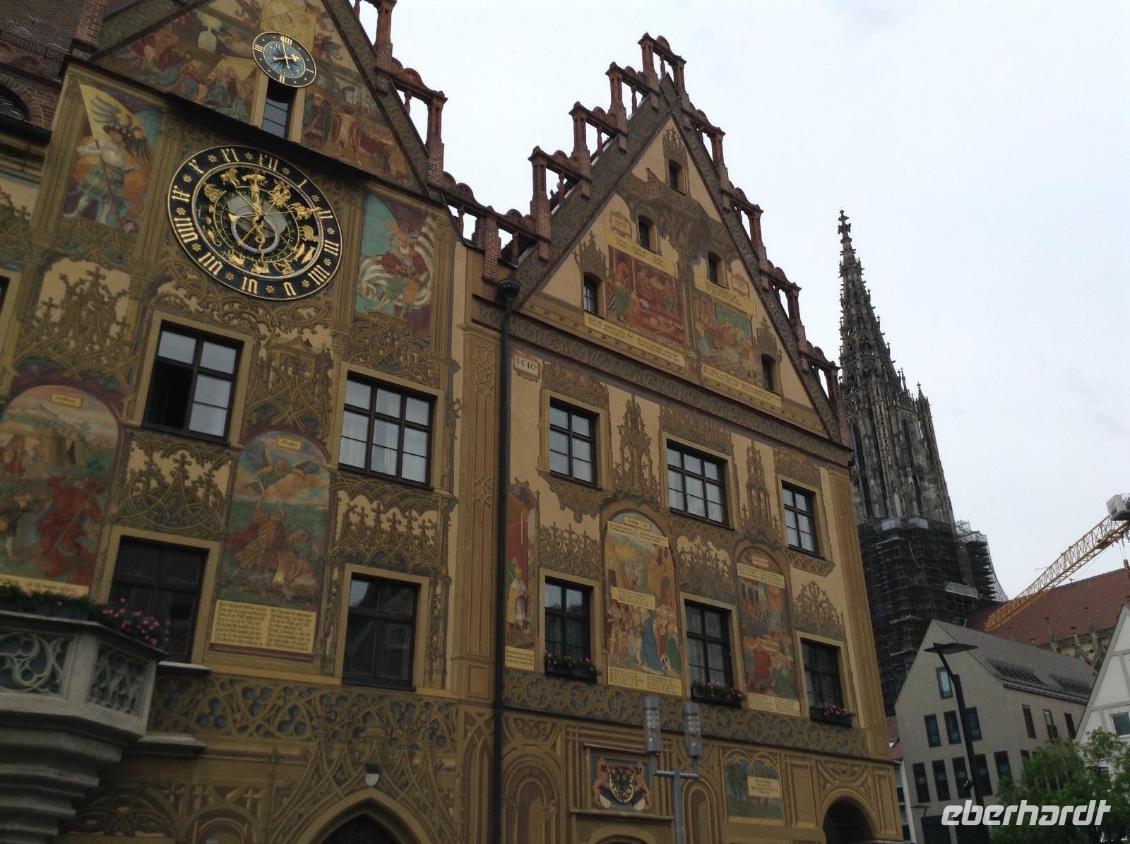 Unsere Anreise erfolgte über Chemnitz, Hof, Nürnberg, dann weiter die BAB 6 ein Stück in Richtung Heilbronn, später weiter über die BAB 7 in südlicher Richtung. In Ulm machten wir eine Pause und fuhren in die Innenstadt. Bei einem gemeinsamen Stadtspaziergang erkundeten wir das mächtige, wunderschöne Münster mit seinem welthöchsten Glockenturm, bestaunten das tolle alte Rathaus mit der astronomischen Uhr und bummelten durch das alte Fischerviertel bis hinunter zur Donau. Später setzten wir unsere Reise fort und kamen am Nachmittag am Bodensee an. Wir nahmen die Autobahnabfahrt Lindau und fuhren dann die Uferstraße hinüber nach Bregenz, wo wir unser Hotel " Goldenes Lamm" erreichten. Später gab es leckere österreichische Küche zum Abendessen.