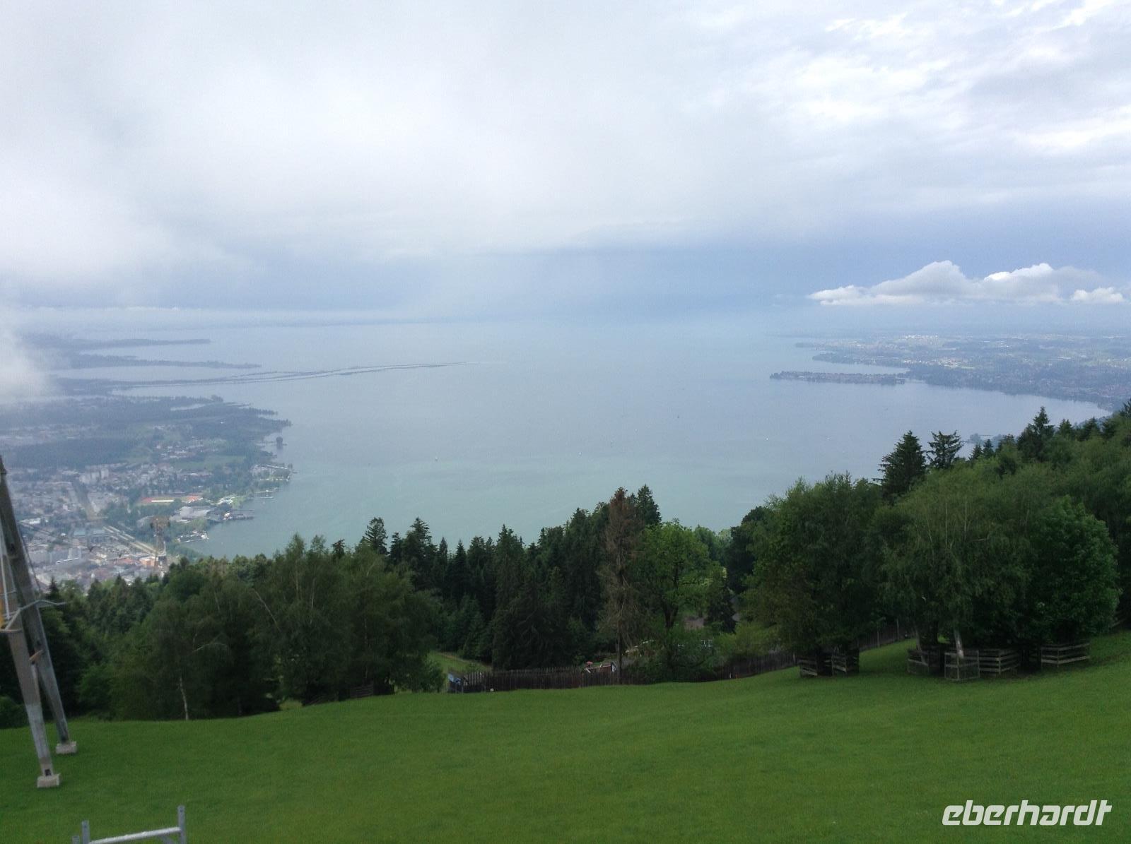 Wir hatten Glück, es lohnte sich, den Ausflug auf den Bregenzer Hausberg zu machen, bevor nächste Regenschauer am Nachmittag kamen. Wir wurden mit einer tollen Aussicht auf den See und die Berge belohnt. Der restliche Nachmittag war zur freien Verfügung. Wir spazierten wieder hinunter zum See, wo gerade ein Weinfest stattfand. Weinbauern aus ganz Österreich präsentierten ihre Weine. Später ging es per Bus oder zu Fuß zum Hotel zurück.