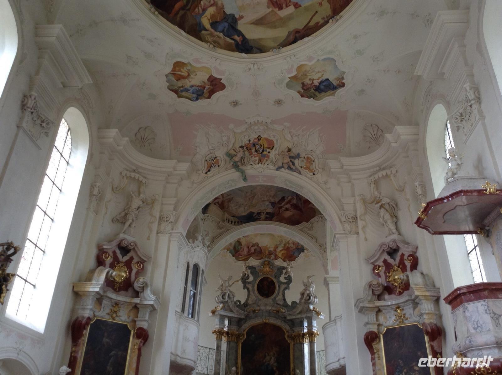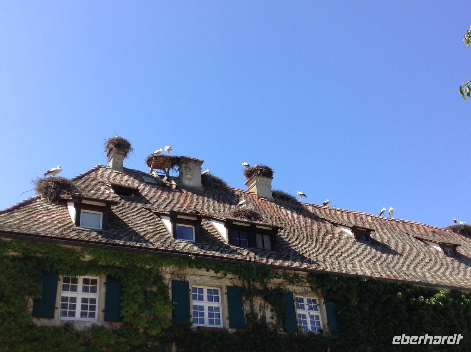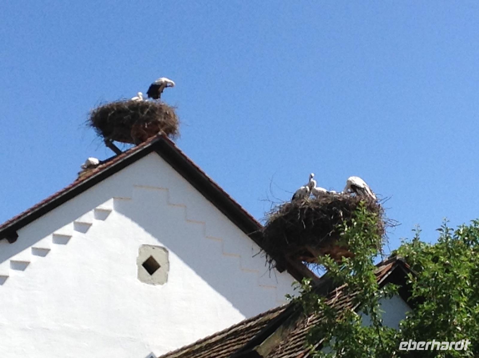 Gegen Mittag war Ankunft dort und anschließend etwas freie Zeit, um die Stadt zu erkunden und eine Kleinigkeit zum Mittag zu essen. Dann holte uns der Bus ab und es ging das Bodenseeufer weiter entlang in Richtung Westen. In der kleinen Siedlung Birnau besuchten wir eine sehr schöne, sehr prunkvolle, barocke Wallfahrtskirche und wir waren überwältigt von dem Prunk und der Schönheit dieser Marienkirche. Anschließend ging es noch zu einer besonderen Attraktion, dem Affenberg von Salem. Dort werden seit 1976 Berberaffen geschützt und erfolgreich vermehrt, die in ihrer Heimat Marokko und Algerien vielleicht schon ausgestorben wären. Auf diesem großen Tierparkgelände fanden wir auch einige duzend Storchenfamilien, eine richtig große Kolonie. Sie waren gerade dabei, ihre Jungen aufzuziehen und in den vielen Nestern gab es reichlich Nachwuchs. Am späten Nachmittag ging es dann nach einem erlebnisreichen letzten Ausflugtag zurück zum Hotel nach Bregenz.