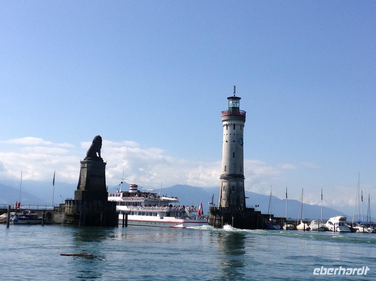 Endlich ein trockener Morgen und die Sonne hat uns geweckt. Nach dem Frühstück stand heute die deutsche, Seite des Bodensees auf dem Plan. Mit unserem Bus überquerten wir den kleinen Grenzübergang von Vorarlberg nach Bayern und fUhren hinüber nach Lindau. Wir waren extra etwas früher losgefahren, um vor unserer Schifffahrt ein wenig Zeit in Lindau zu haben. Diese malerische Inselstadt war noch sehr ruhig in den Morgenstunden. Unser Bus fuhr über die Brücke zur Insel hinüber und wir konnten aussteigen. Ganz individuell bummelten wir die hübschen Gassen durch bis zum Hafen. Machten zahlreiche Fotostops an den schönsten alten Gebäuden der Stadt, wie z.B. dem Rathaus aus dem 16. Jahrhundert. Am späten Vormittag startete dann unsere Schiffstour von Lindau nach Friedrichshafen bei strahlendem Sonnenschein.