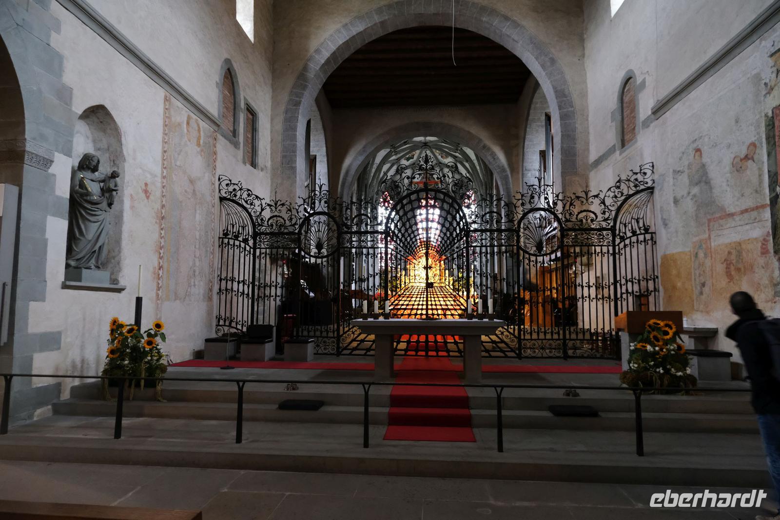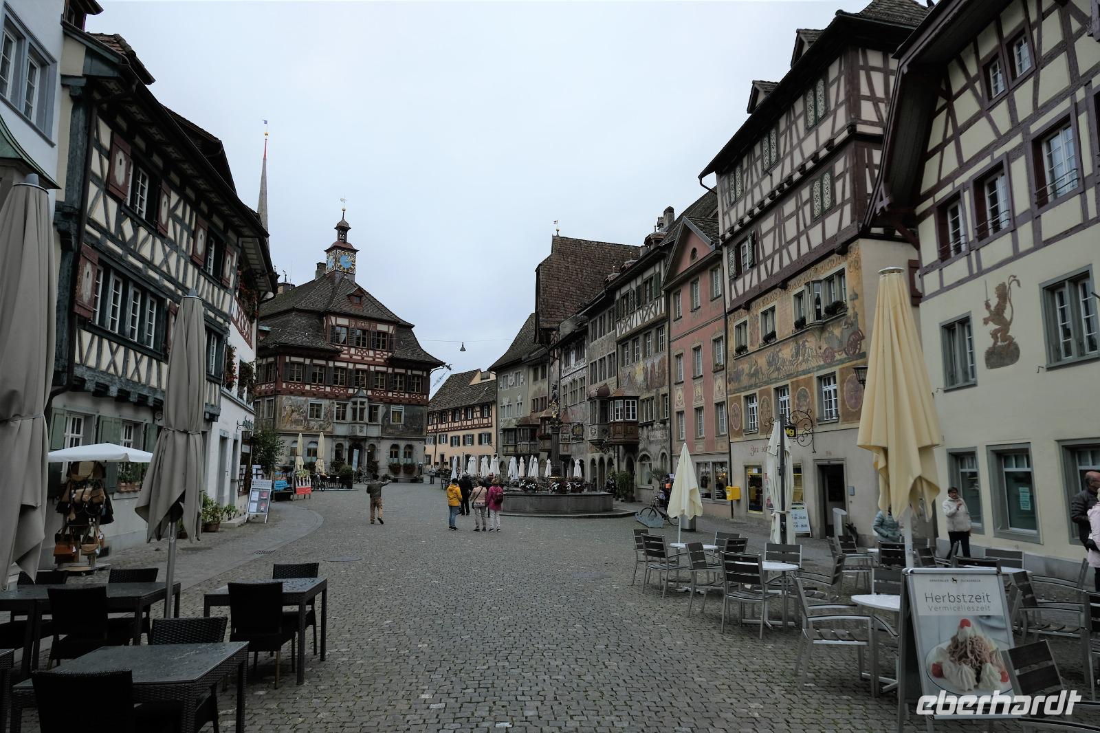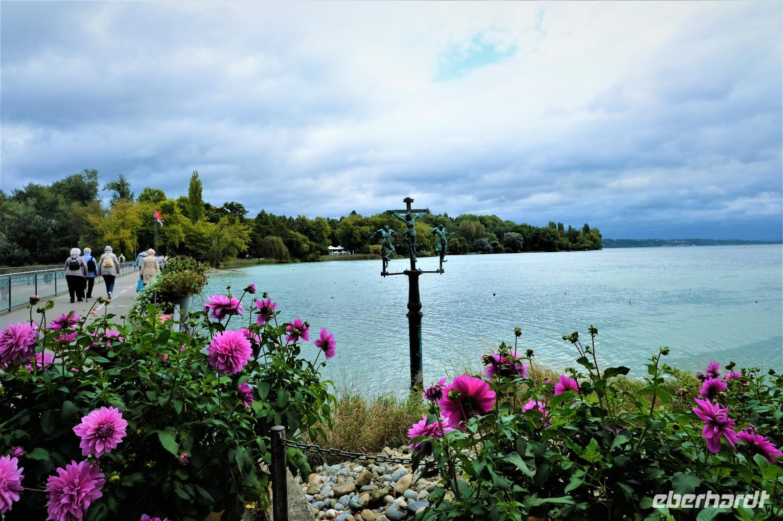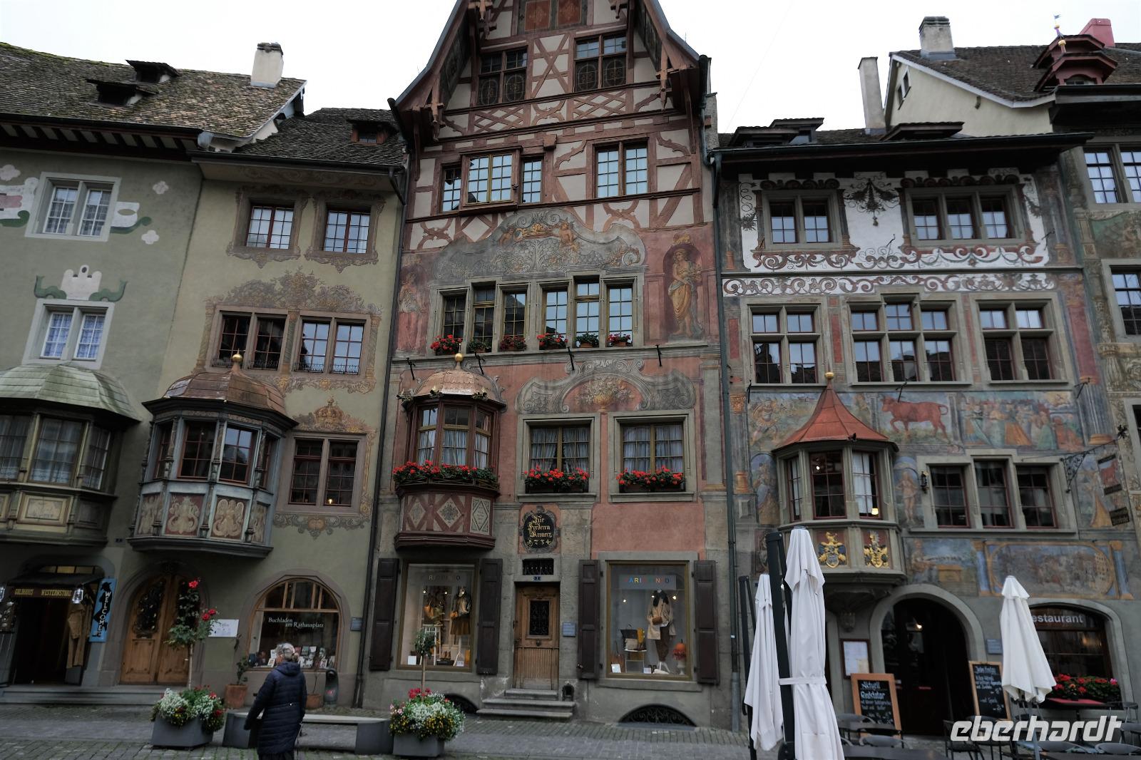 9B5kI712Ar9B5kI712Ar9B5kI712Ar25.09.2020 Fakultativer Ausflug Insel Reichenau, Stein am Rhein, Rheinfall Nach dem Frühstück fuhr unser Fahrer Andre zur Insel Reichenau. Dort stieg eine erfahrene Stadtführerin in unseren Bus und so erfuhren wir viel Neues und Sehenswertes von der Insel. Bereits 724 gründete der Wanderbischof Pirmin auf der damals unbewohnten Insel ein Kloster und schuf somit die Grundlage eines regen geistig- kirchlichen Lebens bis zum Jahre 1803. Durch die Säkularisierung änderte sich alles. Über 20 Kirchen gab es einmal auf der Insel. Heute wird die Insel geprägt durch großflächige Gewächshäuser zur Gemüseproduktion sowie weitreichende Obst- und Weinplantagen. Dann fuhren wir weiter nach Stein am Rhein, dort, wo der Rhein den Bodensee wieder verlässt und in Richtung Nordsee fliest. Uns erwartete eine wunderschöne alte Stadt mit einem gut erhaltenem Altstadtkern und viel Lüftlmalerei an alten Fachwerkhäusern. Das lud unmittelbar zum Verweilen und einer guten Tasse Kaffee ein. Anschließend fuhren wir zum Schloss Laufen, um den legendären Rheinfall zu bewundern. Die Wassermassen (330 000 l pro Sekunde) stürzen an dieser Stelle über 23 Meter in die Tiefe. Es waren imposante Bilder. Am Abend gab es wieder ein leckeres Abendessen.
