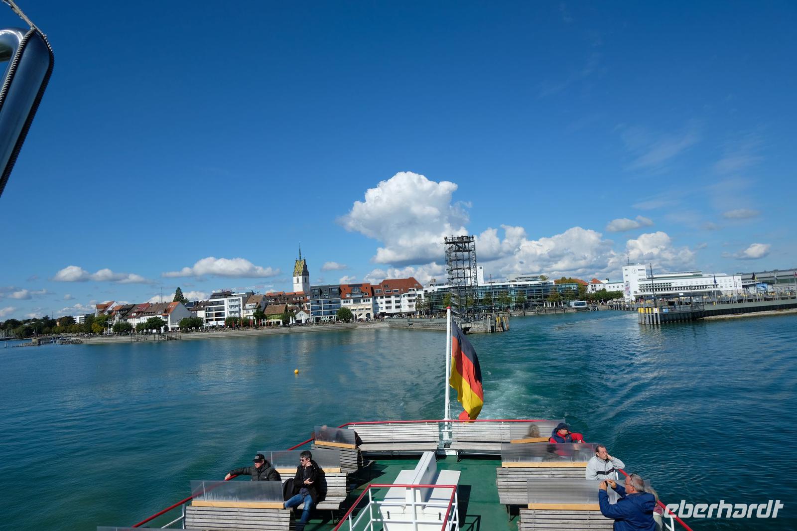 28.09 2020 Fahrt nach Friedrichshafen, Schifffahrt nach Lindau Die Sonne meinte es heute gut mit uns, so fuhren wir frohgelaunt mit unserem Bus nach Friedrichshafen. Zwischendurch machten wir noch Halt in Birnau, um die wunderschöne barocke Basilika anzuschauen. Mitten in den Weinbergen steht dieses barocke Juwel, mit einer herrlichen Aussicht auf den Bodensee. In Friedrichshafen, der Stadt des Zeppelinbaus, hatten wir etwas Zeit in den Mittagsstunden die leeren Gassen am Hafen zu besichtigen. Es war genug Zeit um alles in Ruhe anzuschauen und zu fotografieren.