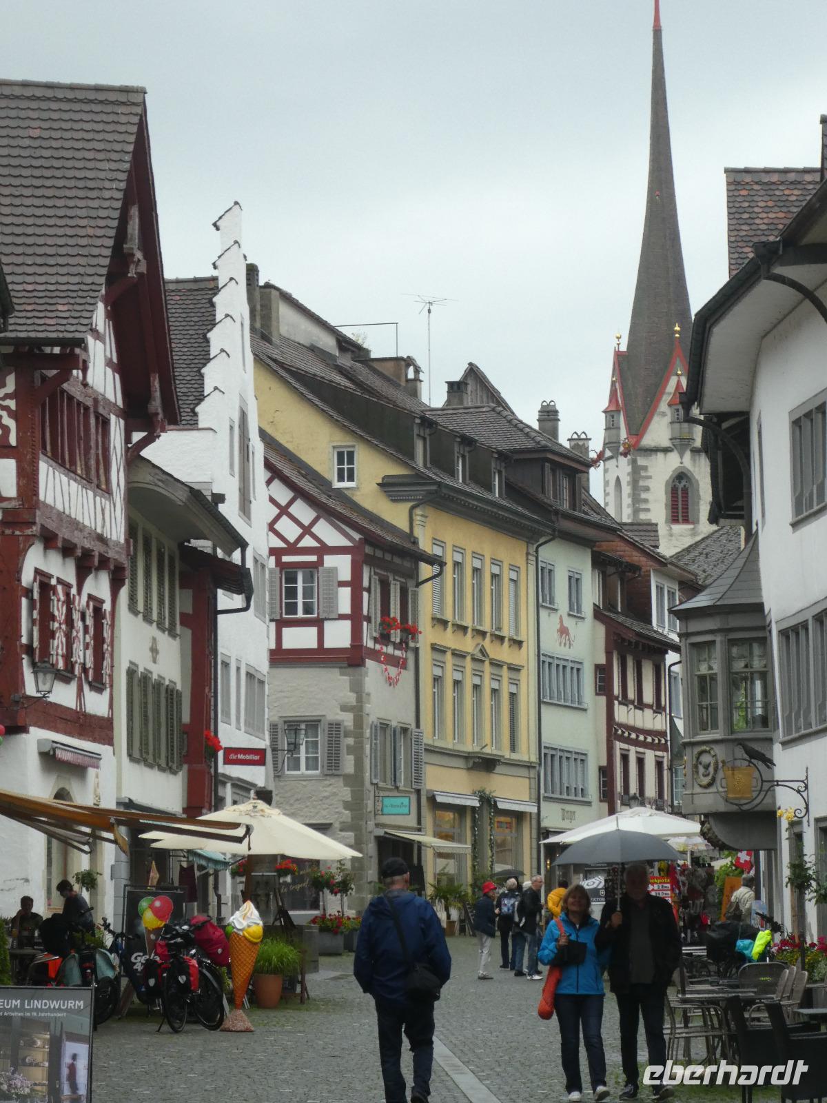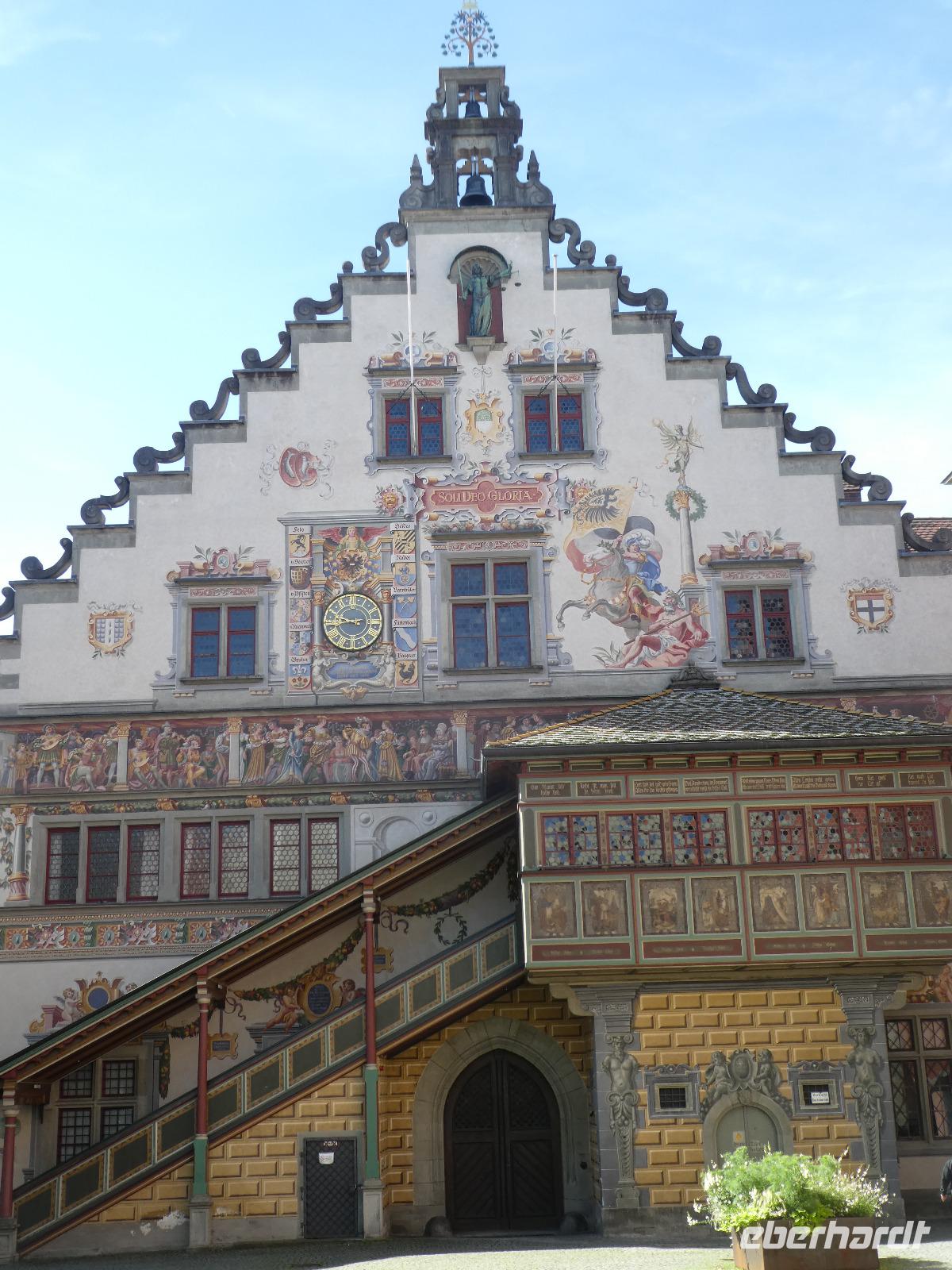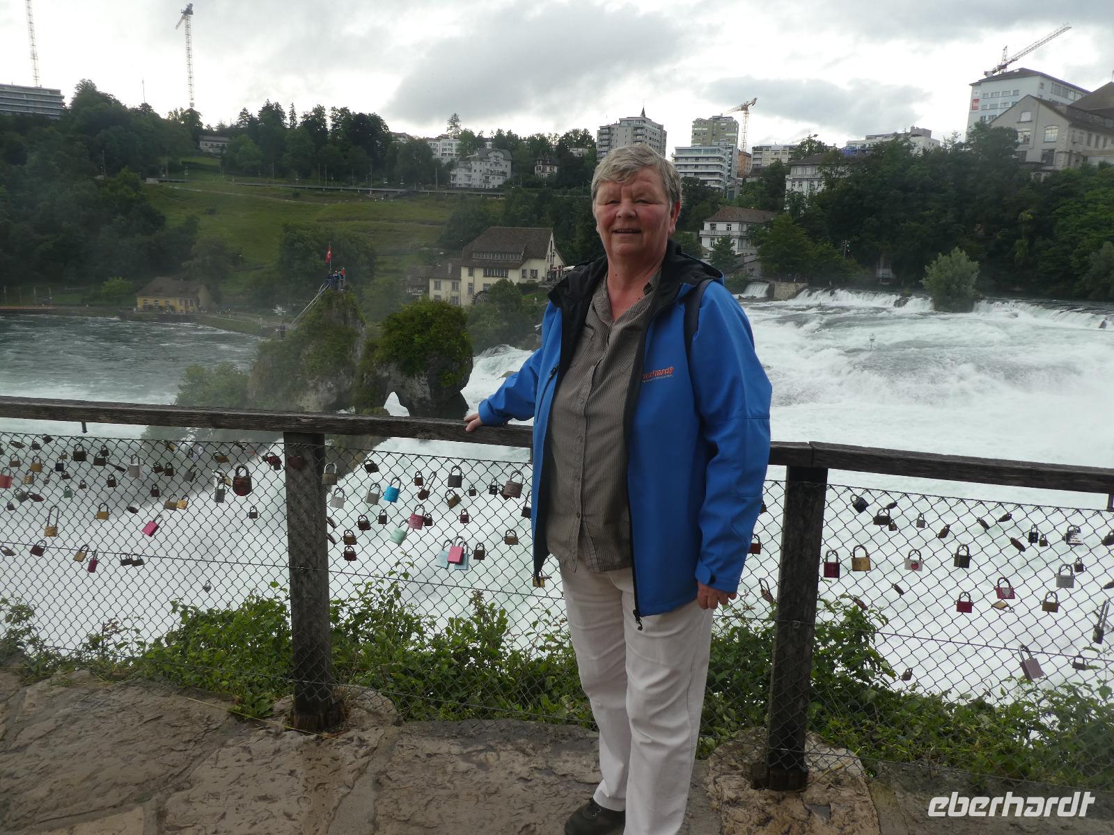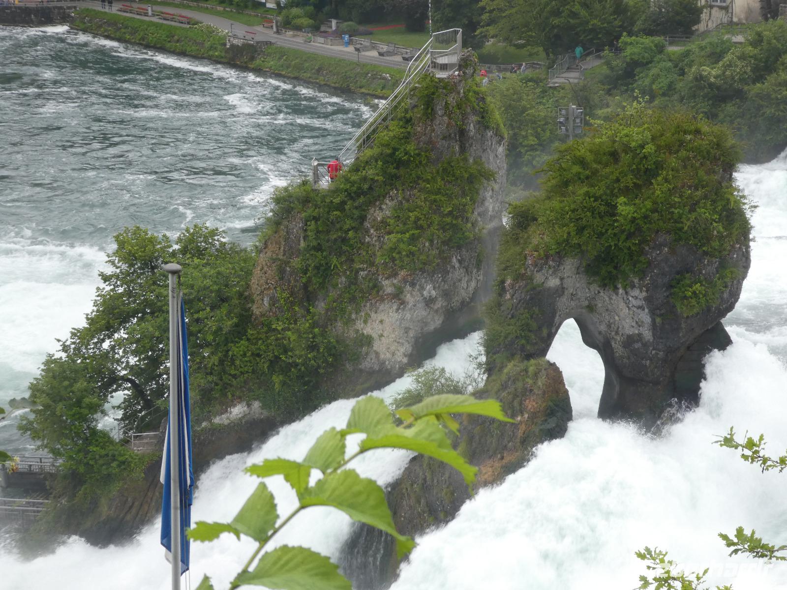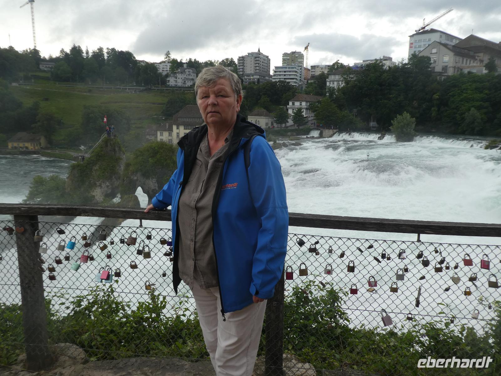 Auch heute waren die Wetteraussichten für den Bodensee nicht so gut. Wir änderten das Programm und fuhren alle gemeinsam zum Rheinfall nach Schaffhausen. Wir erreichten das Schloss Laufen. Von dort spazierten wir hinab zum Wasserfall oder fuhren mit dem Lift zur Plattform und bestaunten das Naturschauspiel. Die Wassermassen stürzen in einer Breite von 150 Metern über die Felsen hinunter. Ein beeindruckendes Erlebnis. Anschließend erreichten wir die romantische Stadt Stein am Rhein. Schon von weitem sahen wir die Burg Hohenklingen die über der Stadt thront. Durch das Stadttor betraten wir die mittelalterliche Altstadt. Die Häuser bestechen durch ihre schönen Malereien. Besonders sehenswert ist das alte Rathaus und das ehemalige Kloster St. Georgen. Nach einer Mittagspause ging über die Landstraße zurück nach Bregenz. Dabei sahen wir typische Schweizer Häuser sowie Obstplantagen und Weinanbaugebiete.