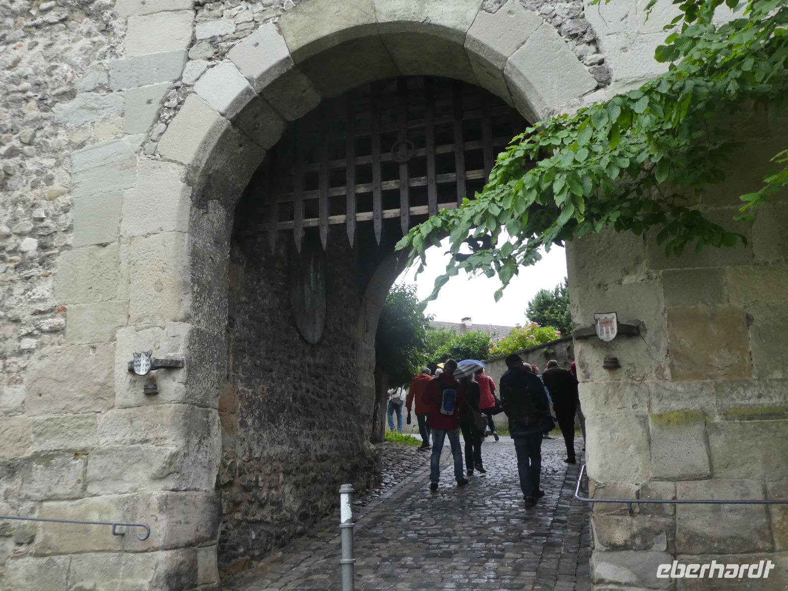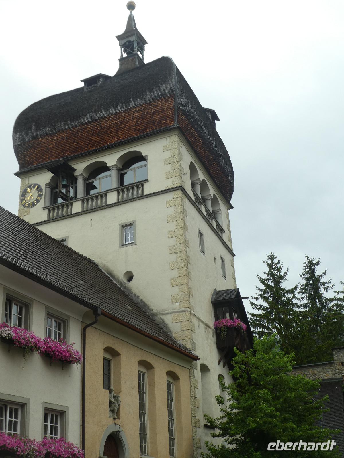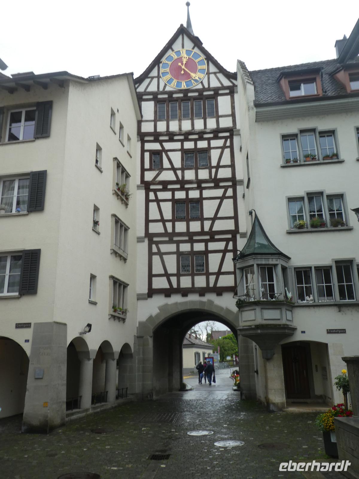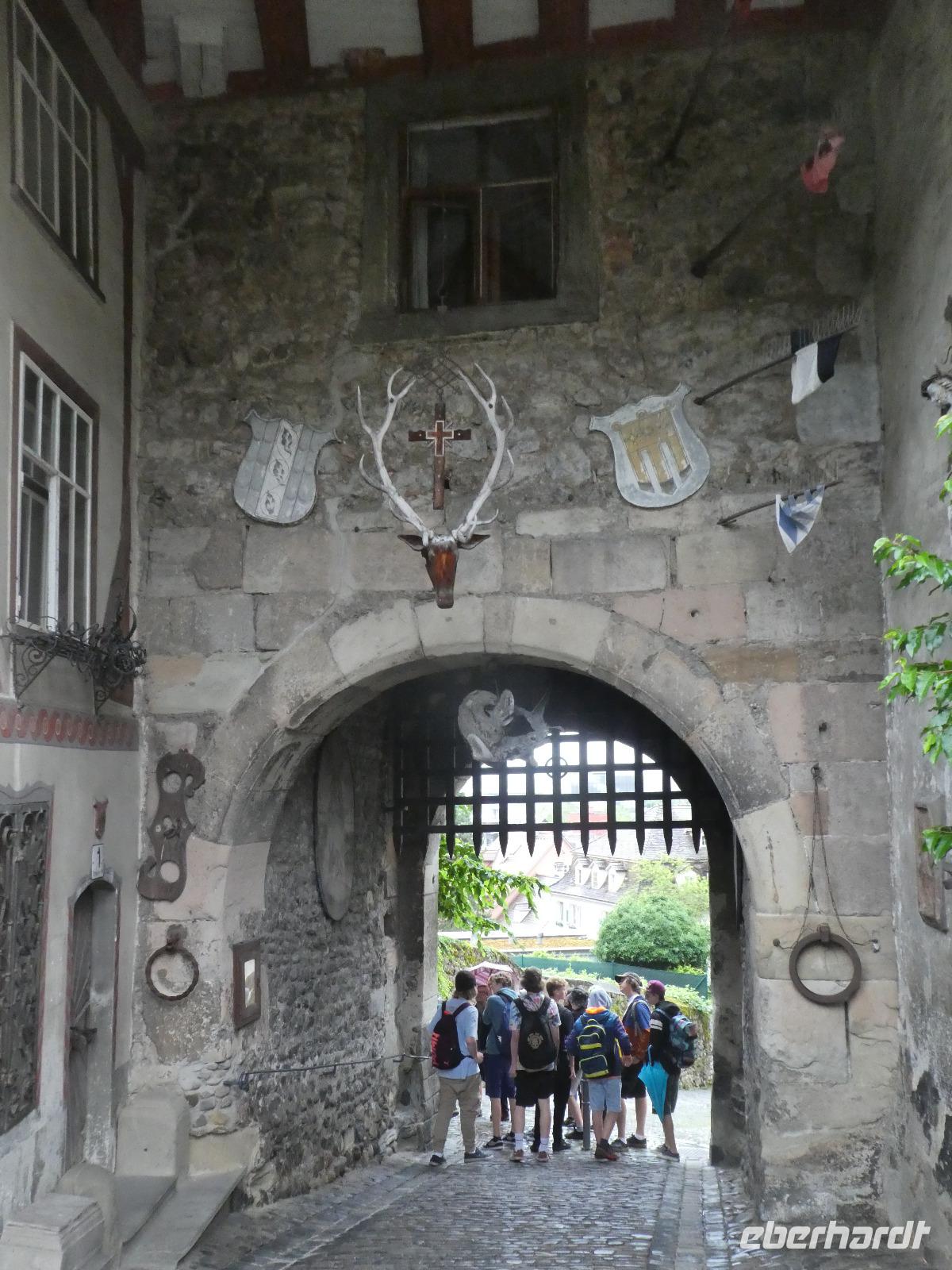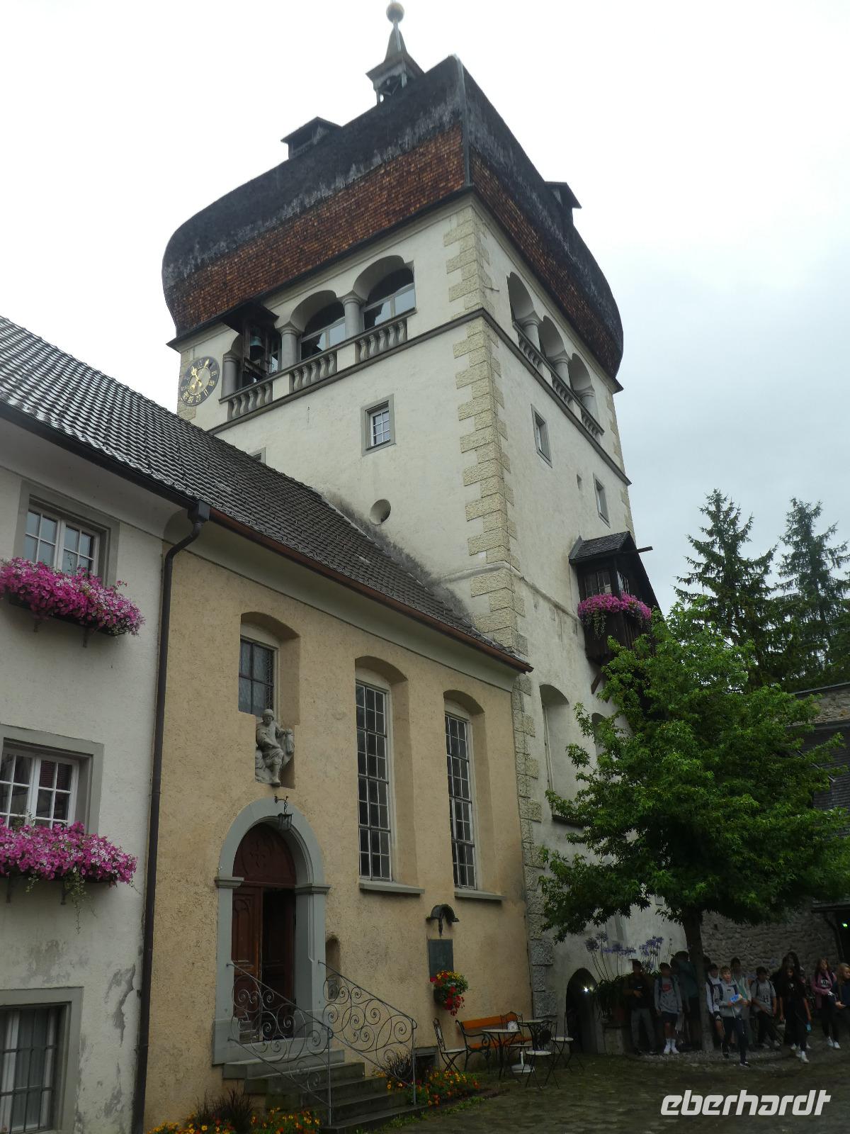 Auch heute waren die Wetteraussichten für den Bodensee nicht so gut. Wir änderten das Programm und fuhren alle gemeinsam zum Rheinfall nach Schaffhausen. Wir erreichten das Schloss Laufen. Von dort spazierten wir hinab zum Wasserfall oder fuhren mit dem Lift zur Plattform und bestaunten das Naturschauspiel. Die Wassermassen stürzen in einer Breite von 150 Metern über die Felsen hinunter. Ein beeindruckendes Erlebnis. Anschließend erreichten wir die romantische Stadt Stein am Rhein. Schon von weitem sahen wir die Burg Hohenklingen die über der Stadt thront. Durch das Stadttor betraten wir die mittelalterliche Altstadt. Die Häuser bestechen durch ihre schönen Malereien. Besonders sehenswert ist das alte Rathaus und das ehemalige Kloster St. Georgen. Nach einer Mittagspause ging über die Landstraße zurück nach Bregenz. Dabei sahen wir typische Schweizer Häuser sowie Obstplantagen und Weinanbaugebiete.