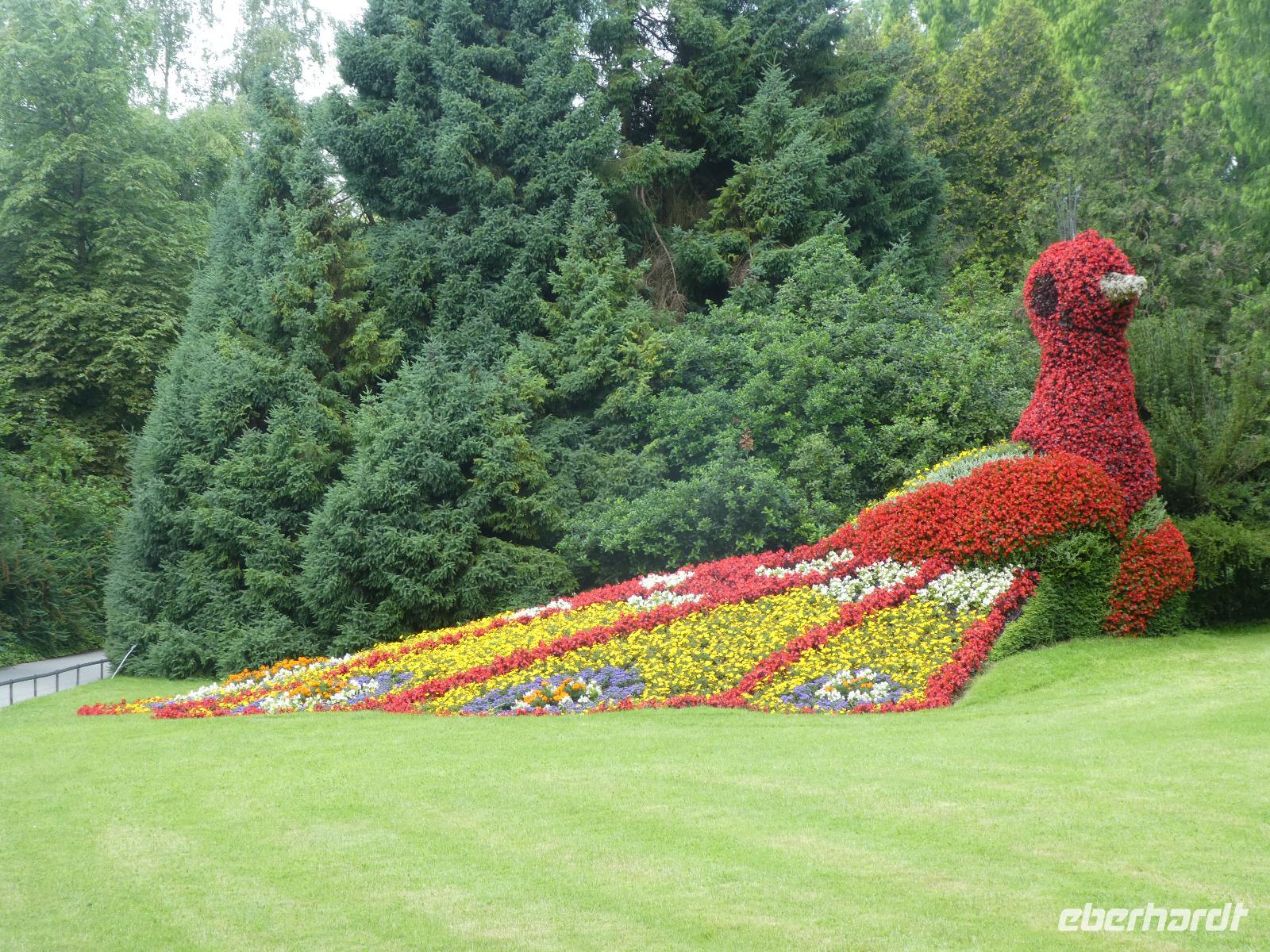 Der Wetterbericht sagte schönes Wetter voraus und so freuten wir uns auf die Insel Mainau. Wieder fuhren wir über die Grenze entlang des Bodensee nach Konstanz. Nach der Überquerung der Grenze erreichten wir Staad und besichtigten die Markthalle von Friedenreich Hundertwasser. Sie wurde 1998 gebaut und wird heute noch von der Tochter des Architekten geführt.Die gräfliche Familie Bernadotte führt nach dem Tod von Lenart Bernadotte die Insel als Stiftung weiter. Auf 45 ha ist das Blumenparadies zu erkunden. Über eine Brücke erreichen wir die Blumentiere und legten den ersten Fotostopp ein. Weiter liefen wir zur Italienischen Blumen - Wassertreppe, die zu jeder Jahreszeit schön bepflanzt ist und ein besonderes Highlighte darstellt. Weitere Sehenswürdigkeiten sind der schön angelegte Rosengarten, der Hortensienweg und die mediterranen - Terrassen. Auch sehenswert ist das Barockschloss mit der Schlosskirche und dem Palmenhaus. Auch der 150 Jahren alten Baumbestand wurde bestaunt. Noch ein Besuch im Schmetterlingshaus und wir verließen die Insel.