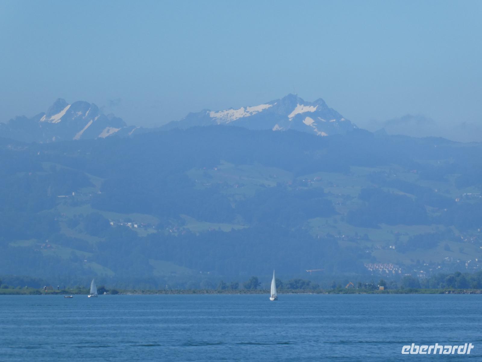 Erwartungsvoll starteten wir unsere Reise in Dresden an den Bodensee. Mit an Bord war auch eine Gruppe Singles, die eine Wanderreise in das Kleinwalsertal gebucht hatten. Wir erreichten Memmingen wo die Wandergruppe von zwei Transferfahrzeugen abgeholt wurden. Wir setzten unsere Fahrt durch den Pfändertunnel fort und erreichten in Bregenz unser Hotel Lamm. Wir wurden schon erwartet und konnten schnell einchecken.