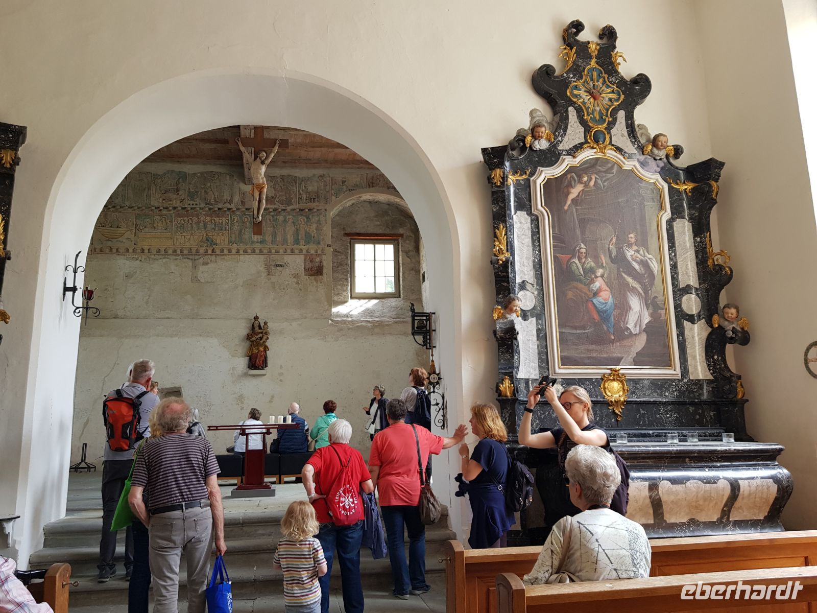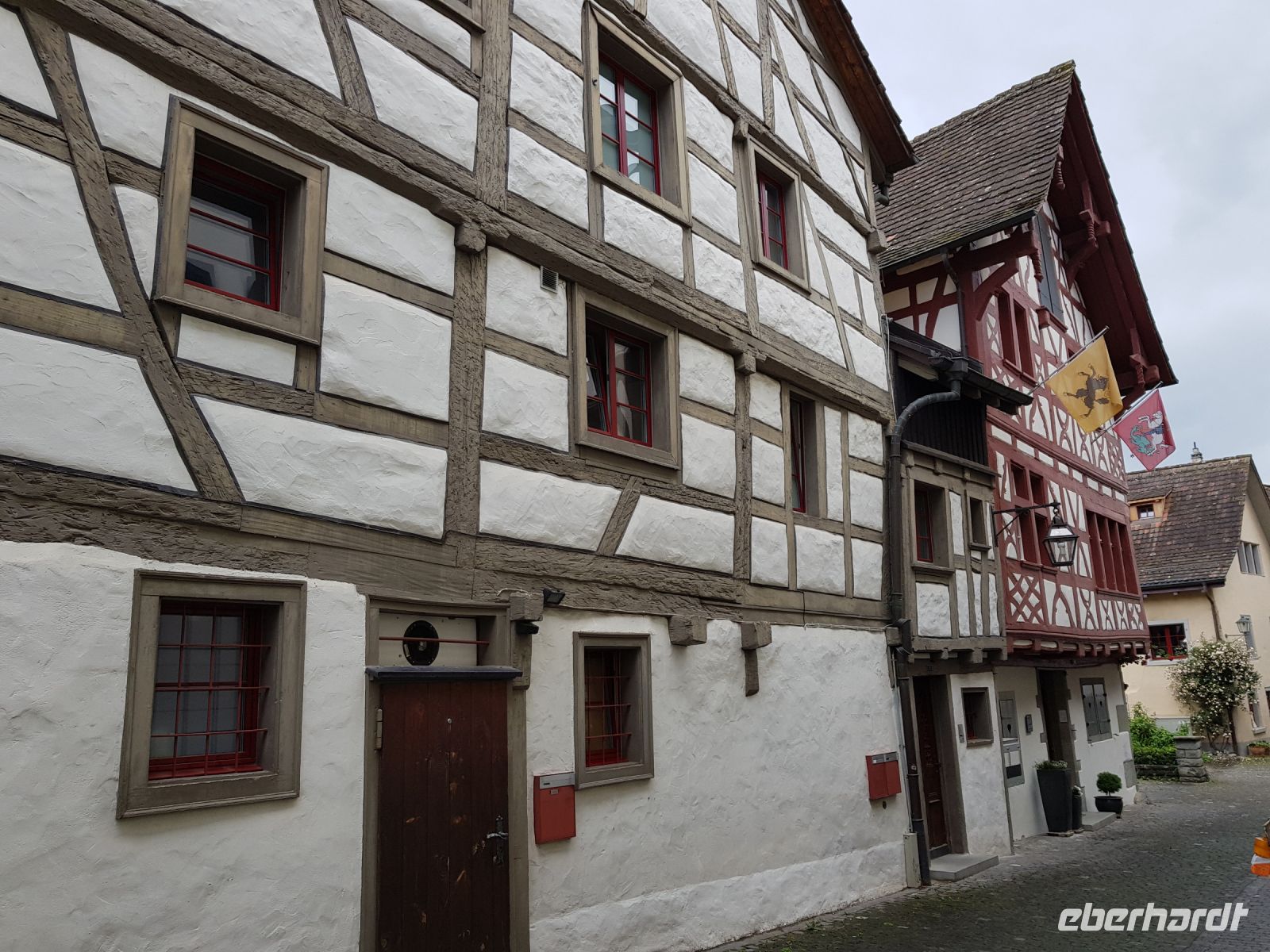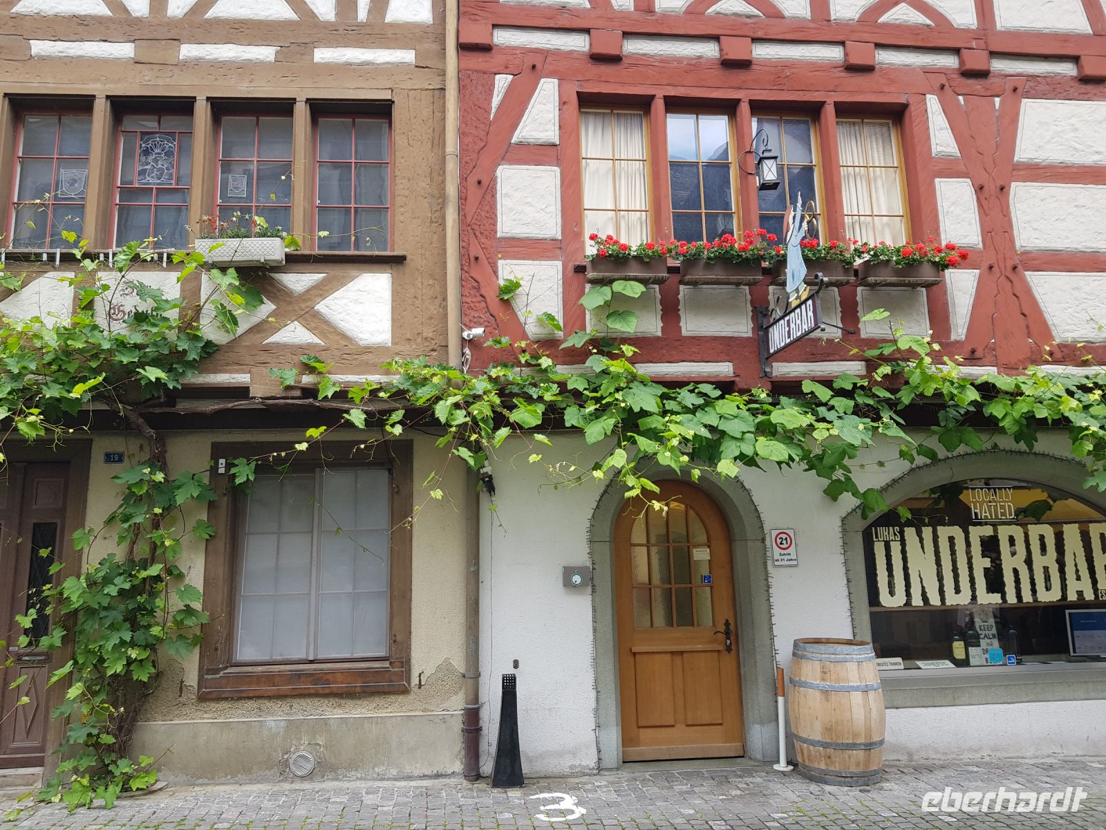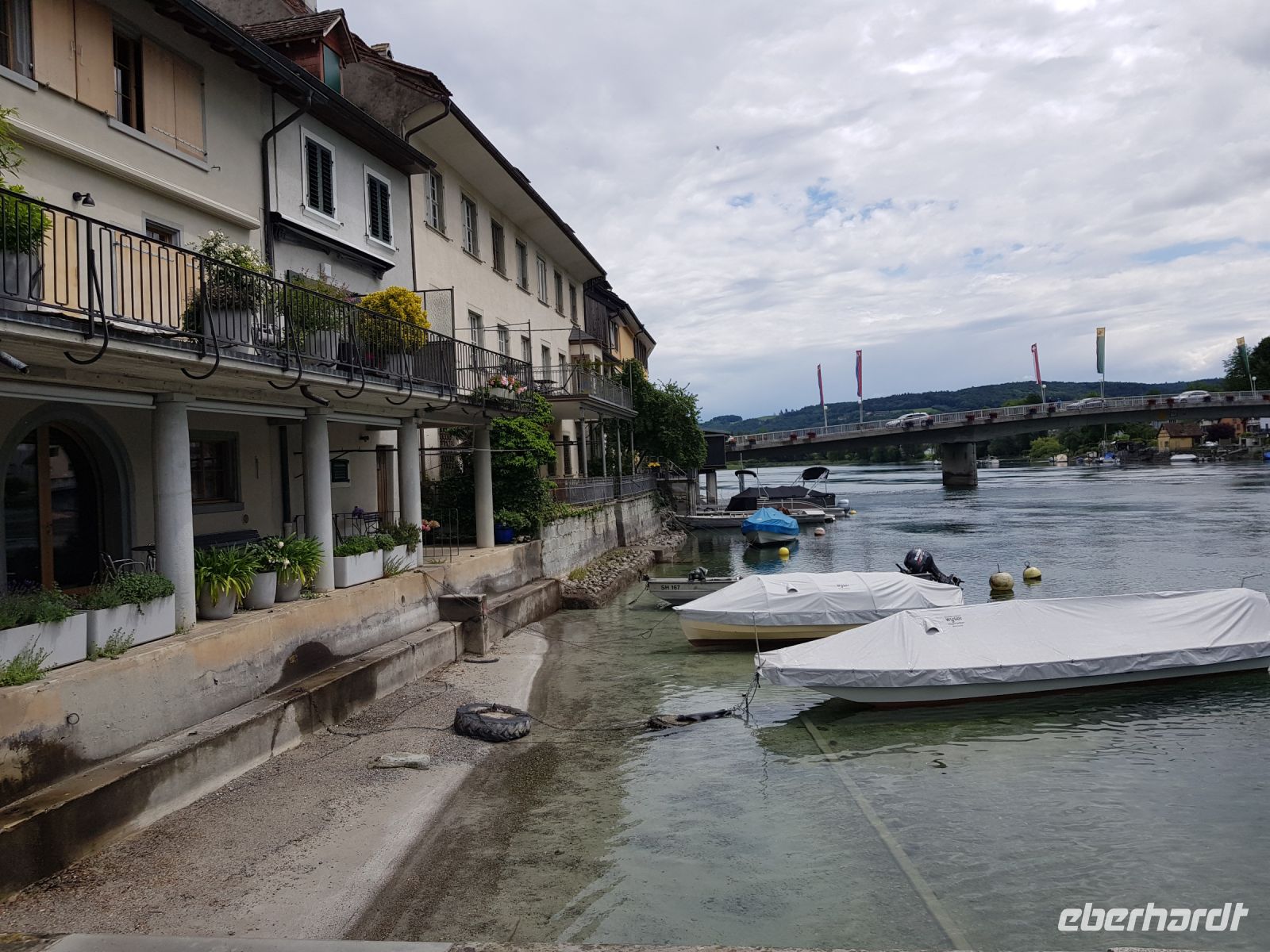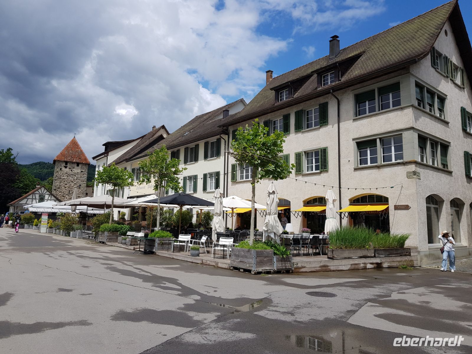 Wir starten wieder pünktlich 09:00 Uhr zu unserem Ausflug in den Hauptort des Schweizer Kantons - Schaffhausen - und werden auf der Fahrt sogar mit ein wenig Sonne verwöhnt. Das lässt uns hoffen, dass es an unserem ersten Ziel vielleicht nicht regnet. So hundertprozentig klappt das zwar nicht, erst mal werden wir wieder mit Regen empfangen, aber der hört auch wieder auf und der grösste Wasserfall Europas begrüsst uns mit einem imposanten Naturschauspiel: auf einer Breite von 150m und aus 23 m Höhe stürzen jede Sekunde 700 000 Liter Wasser tosend in das durch den charakistischen Felsen gekrönte Rheinfallbecken. Nach einerm 90 min. Aufenthalt steigen wir wieder in den Bus, der Rheinfall verabschiedet uns mit einem leichten Sonnenstrahl. Auf geht es in die nur 20 km entfernte Stadt Stein am Rhein. Sie zählt zu den wohl mit Abstand am besten erhaltenen mittelalterlichen Kleinstädten der Schweiz. Wir tauchen ein in ihre märchenhafte Idylle, bewundern die alten mit Fresken verzierten Häuser und bummeln am Ufer des Rheins zurück zum Stadttor, an dem unser Bus wartet. Das Fazit für diesen Tag: trotz Wolken und ein bißchen Regen war es ein wunderbarer Ausflug und im Hotel geniessen wir unser Abendessen: es geht flüssiger bei der Servierung der 4 Gänge voran und es ist nicht mehr ganz so laut.