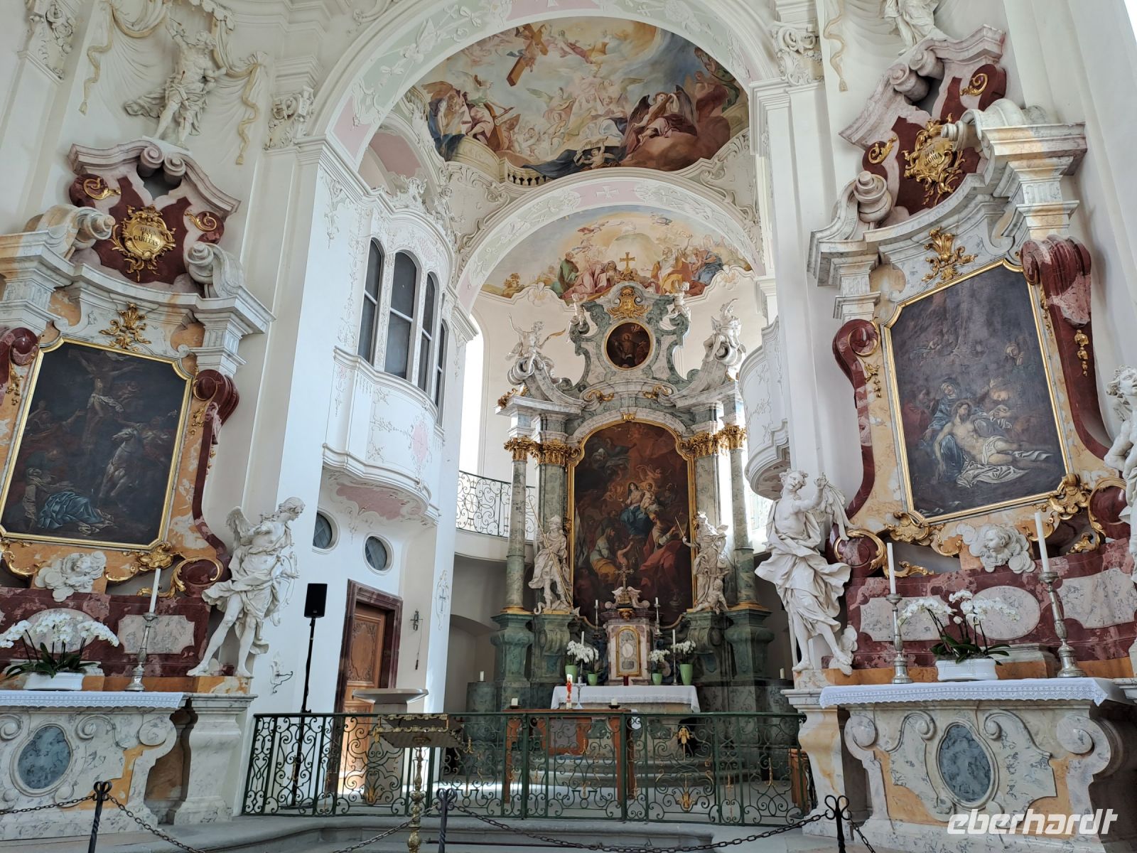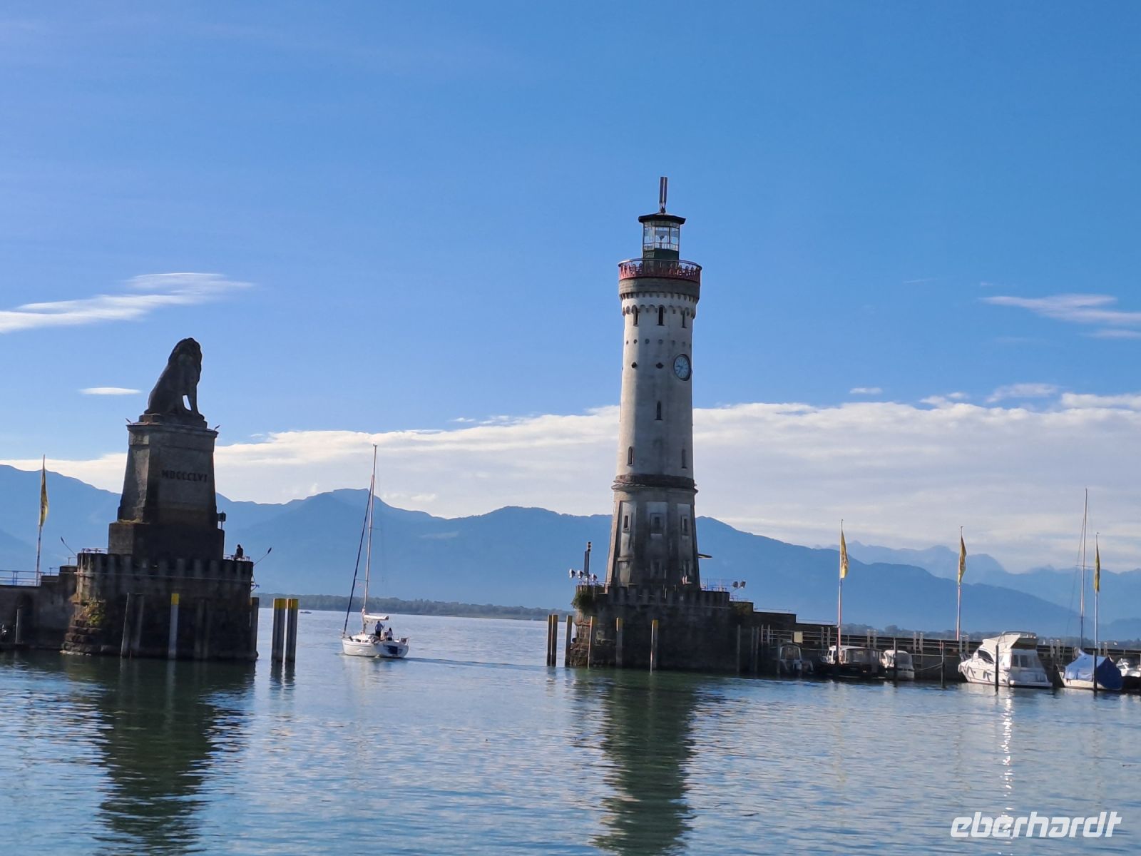 Ein gutes Frühstücksbuffet und wir starten heute bereits 8.30 Uhr mit dem Bus nach Lindau, dort gab es 50 min. Freizeit, um auf der Insel die Altstadt kennenzulernen. Neben vielen Fachwerkhäusern und einem Rathaus, das auch auf der Rückseite schön aussieht, wartet die große Kreisstadt mit dem Wahrzeichen des Bayrischen Löwen, Leuchtturm und Mangturm aus dem 12. Jahrhundert auf. Sie sind das Wahrzeichen der Stadt und besonders von der Seeseite gut zu sehen. Auch heute ist die Sonne schon wieder da und jetzt haben wir neben tollen Fotos mit Bodensee und Hafenanlage eine Schifffahrt von 90 min. Fahrt von Lindau nach Friedrichshafen vor uns. Perfekte Aussicht auf die verschlungene Alpenwelt, Bodensee, Segler und bei Wasserburg auf den Zeppelin. Alles ist perfekt für diese Reise. In Friedrichshafen angelandet verbleibt noch Zeit für einen Bummel entlang der Seepromenade oder Einkaufsmeile, aber auch Stadtpark und St. Nikolaikirche, Rathaus kann ein Besuch abgestattet werden. Treff am Zeppelin Museum und Spaziergang zum Reisebus, von dort aus geht es sofort zum Schloss Salem. Die Zisterzienserabtei Salem wurde 1137 gegründet und erlangte durch Reichtum und wissenschaftliche Leistung hohes Ansehen. Der kleine Salemer Klosterstaat war bekannt wegen seiner mustergültigen Verwaltung. Wir lernen in einer Führung Klosterkirche, Schloss und das große Gelände kennen. Danach haben wir bis zur Abfahrt unseres Busses noch Zeit für ein Kaffeekränzchen. Mit schönen Blicken über die Obst- und Rebhänge und den Bodensee fahren wir in Richtung Lindau und zur Grenze nach Bregenz zum Hotel. Zum Abendessen wird uns allen bewusst, dass wir zum letzten Mal zusammensitzen. Leider ist dieser Abend bei der Servierung des 4 Gänge - Menü sehr schleppend, es geht nicht voran und auch die zweite Reisegruppe mußte wie wir - Geduld aufbringen ! Sehr Schade !