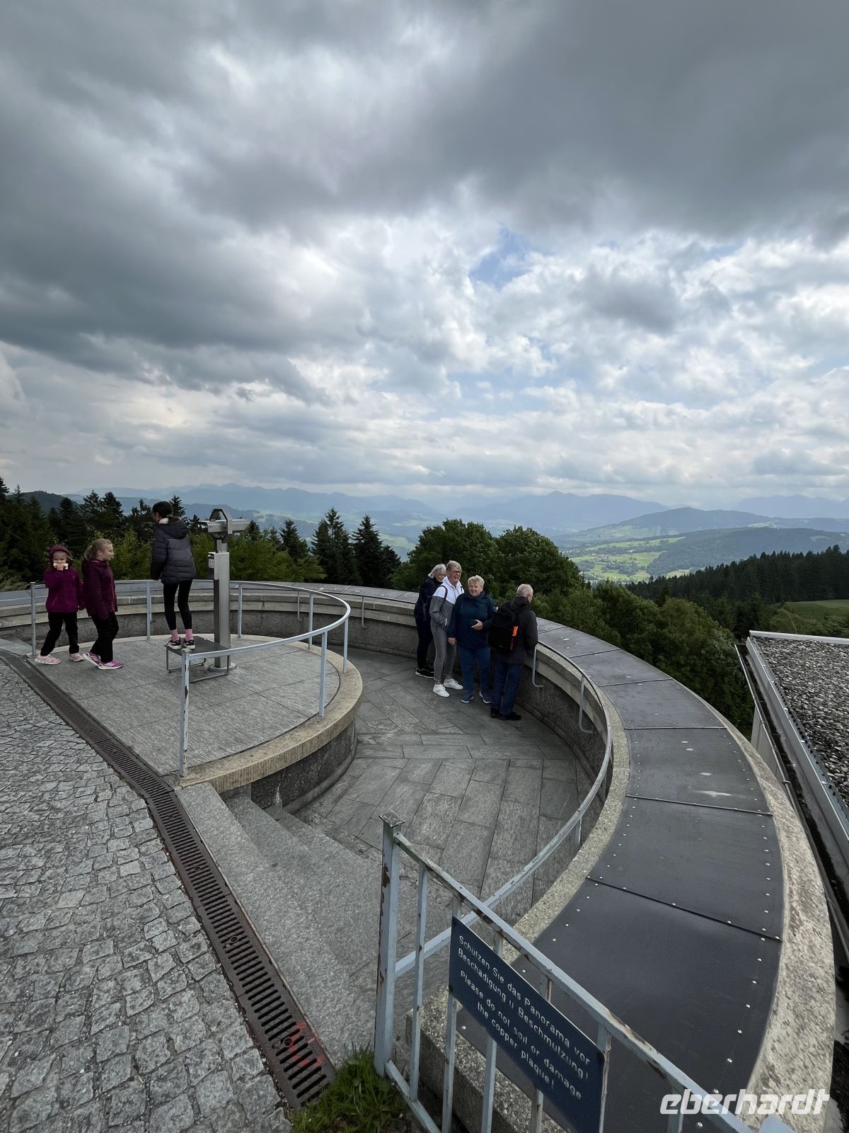 Auch wenn es hier oben mächtig windete und eine Wolkendecke nach der anderen aufzog, war die Sicht auf den Bodensee und die 240 Alpengipfel traumhaft.
