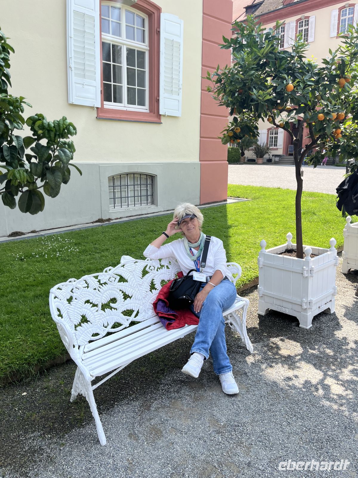 Natürlich war das Schloss auch eine Augenweide, die weißen Bänke mit ihren verschnörkelten Gestellen, der Weinkeller, das Palmenhaus und so vieles mehr. Nicht zu vergessen der tolle Blick auf den Bodensee.