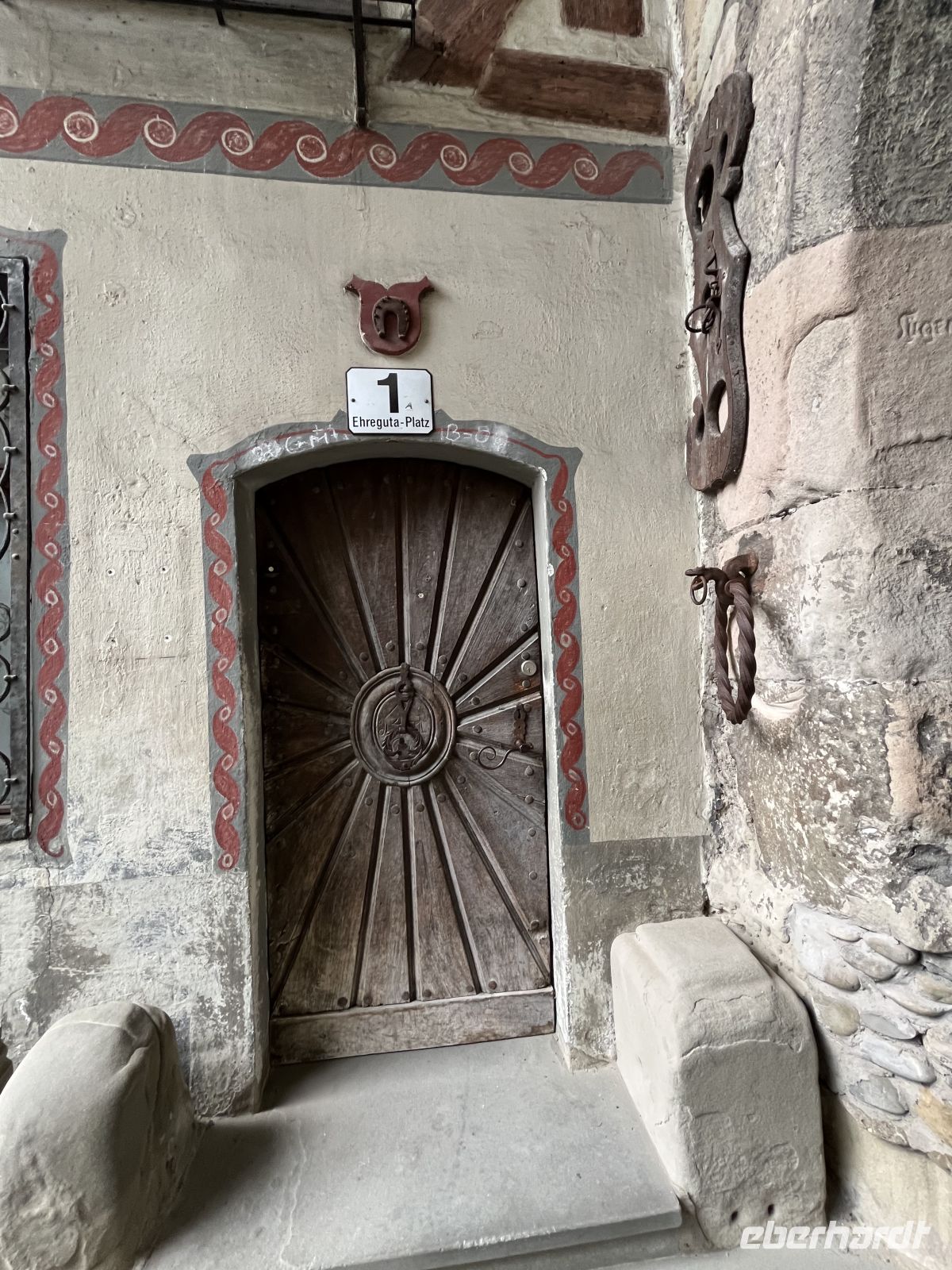 Ja, es beeindruckt schon, die herrlichen Malerei und die verzierten Erker. Hier stellt sich die Frage, wie ist es möglich, bei all diesen Witterungsbedingungen, dass alles noch so schön erhalten/erkennbar ist?
