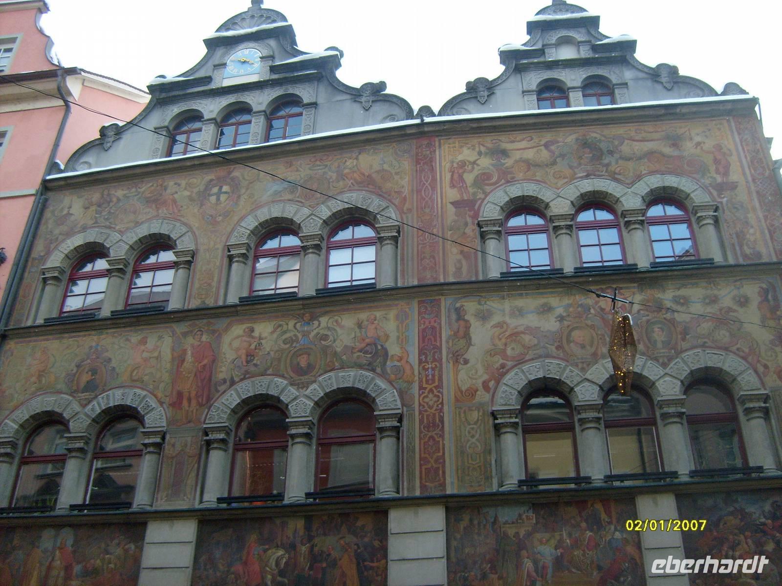 Am Hafen begann unser Rundgang. Hier, im Konzilgebäude fand das wichtigstes Ereignis in der Konstanzer Geschichte statt. Von 1414 bis 1417 erfolgte in diesem Gebäude die einzige Paptswahl auf deutschen Boden.