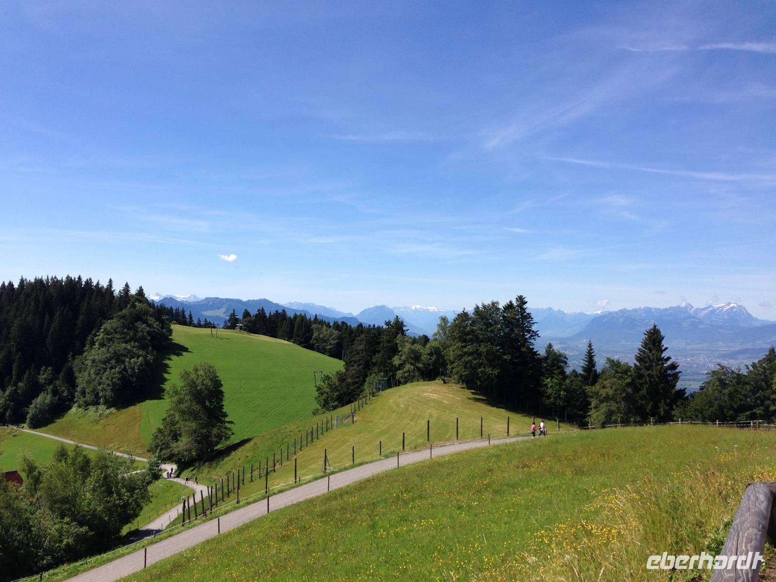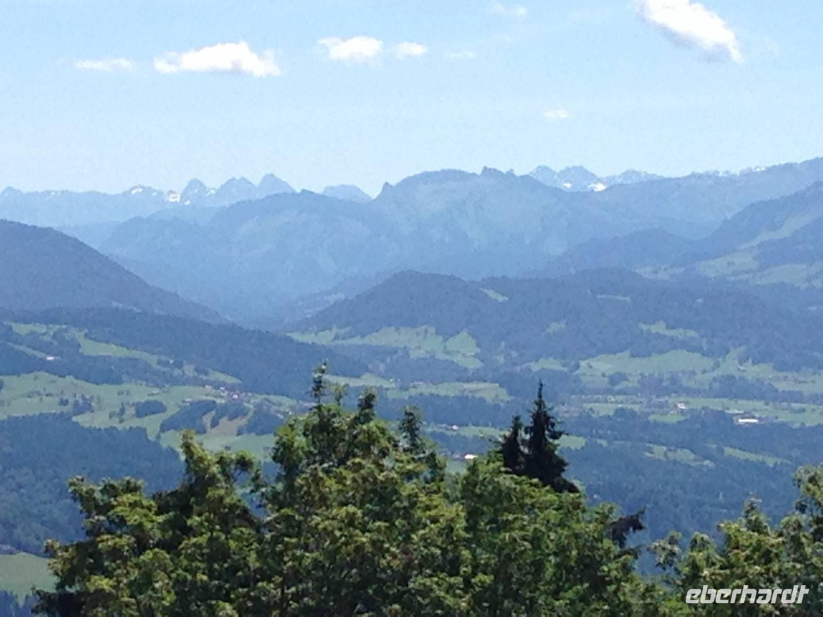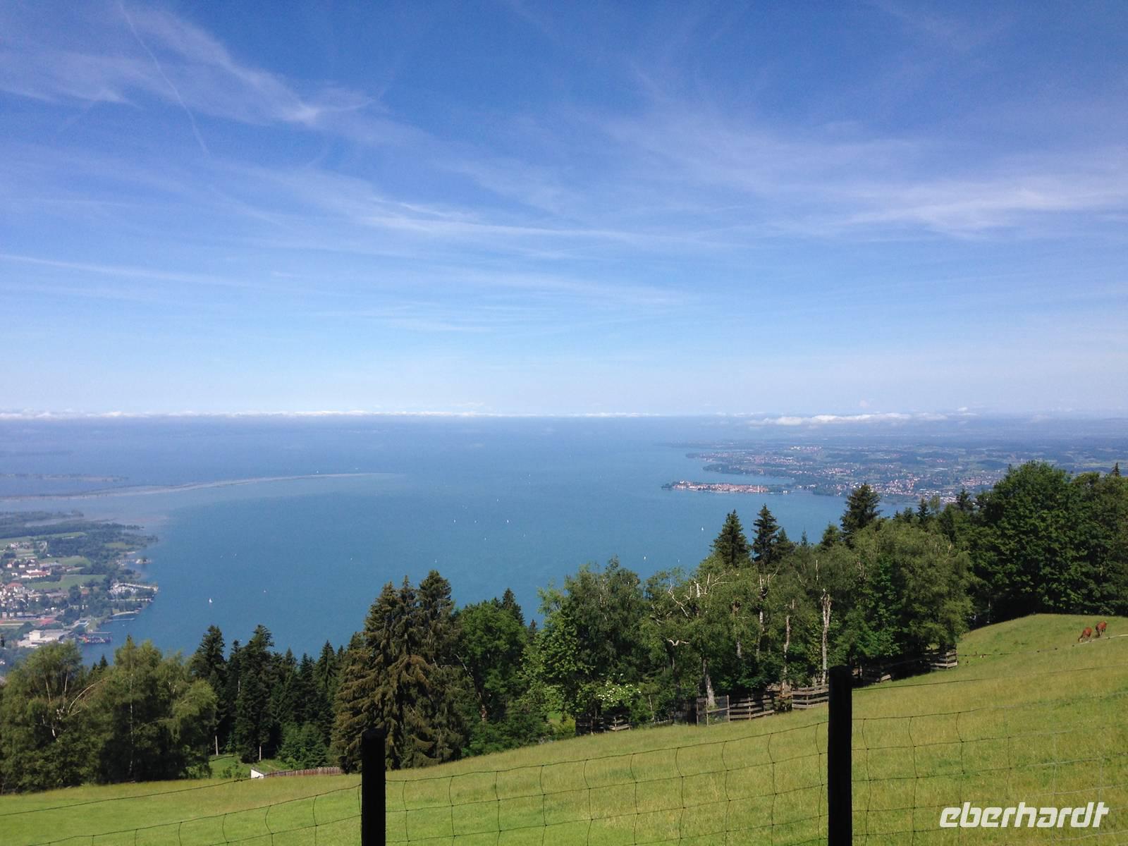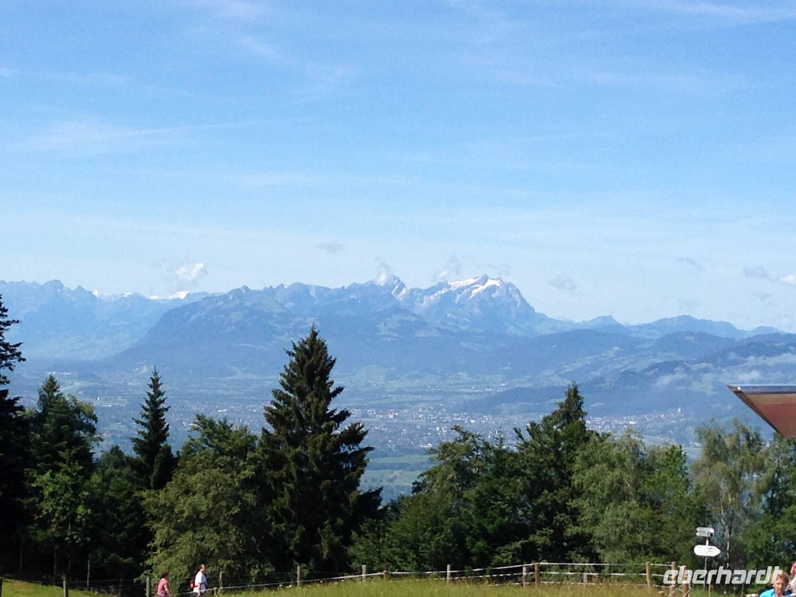 Am vierten Tag verließen wir Schwaben, uns zog es zuerst nach Österreich, in die Landeshauptstadt Vorarlbergs, nach Bregenz. Aufgrund der guten Wettervorhersagen nutzen alle den Vormittag zur Auffahrt auf den 1064m hohen Pfänder, von dort aus kann man bei guter Sicht gut 240 Alpengipfel sehen ...haben Sie sie gezählt???