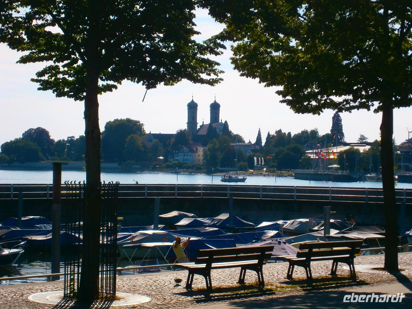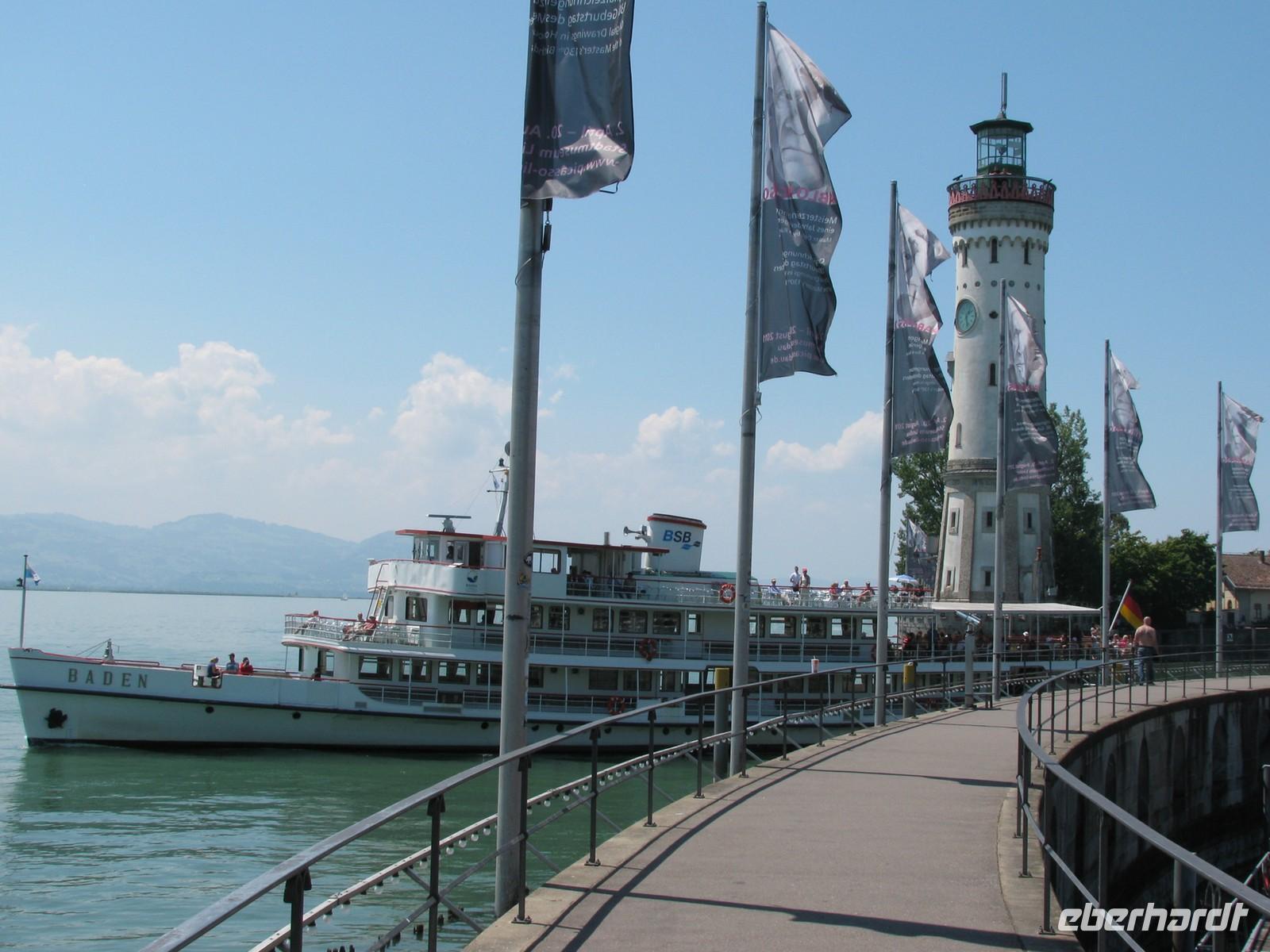Bloß gut, denn wie wir ab Mittag dann endlich zu spüren zu bekamen, sollte unsere Reise nicht ins Wasser fallen. Kaum, dass wir das Fichtelgebirge links liegen gelassen hatten, begann die Sonne, ab und zu mal hervor zu lugen. Und zur Mittagspause war sie dann da, strahlte uns an und freute sich auch immer noch mit uns, als wir in Friedrichshafen ankamen. Bis zum Abendessen und dann auch danach blieb genug Zeit, um dieses südländisch anmutende Städtchen zu erkunden und gemütlich an der Strandpromenade entlang zu bummeln. Welch schöne Einstimmung in eine erlebnisreiche Radreise!