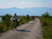 Heute sollte es endlich losgehen. Nach dem Frühstück luden wir die Räder aus und starteten in Richtung Lindau. Immer entlang des Bodensee-Ufers fuhren wir vorbei am Eriskircher Ried und dem Schloss Montfort bis nach Lindau. Die Sonne strahlte und der See glänzte - schöner kann eine Radtour nicht sein. In der Inselstadt angekommen, stand eine Stadtführung auf dem Programm. Unsere Gästeführerin sprühte vor Liebe zu ihrer Stadt Lindau und steckte uns mit Ihrer Begeisterung sofort an. Im Nu verging die Zeit, und wir hätten überall über eine Stunde stehen bleiben können. Voller Eindrücke sattelten wir dann wieder unsere Drahtesel und radelten das letzte Stück nach Bregenz, unserem heutigen Streckenziel. Unterwegs hüpften wir natürlich auch mal in den klarklaren Bodensee. Was für eine Erfrischung!