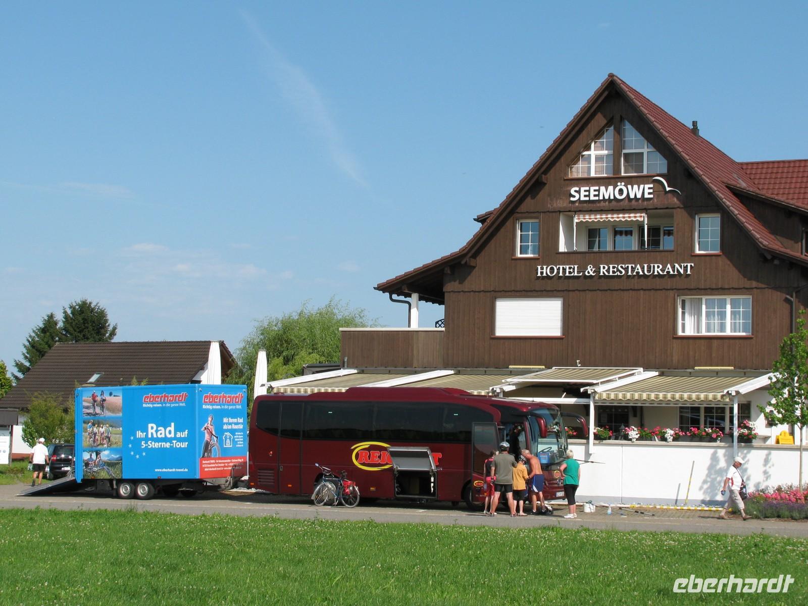 Die meisten fuhren von hier aus mit dem Bus weiter, nur vier mutige wagten sich auf das bergige Stück über Bodan und Ludwigshafen.