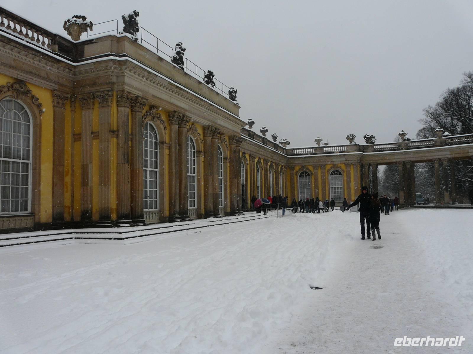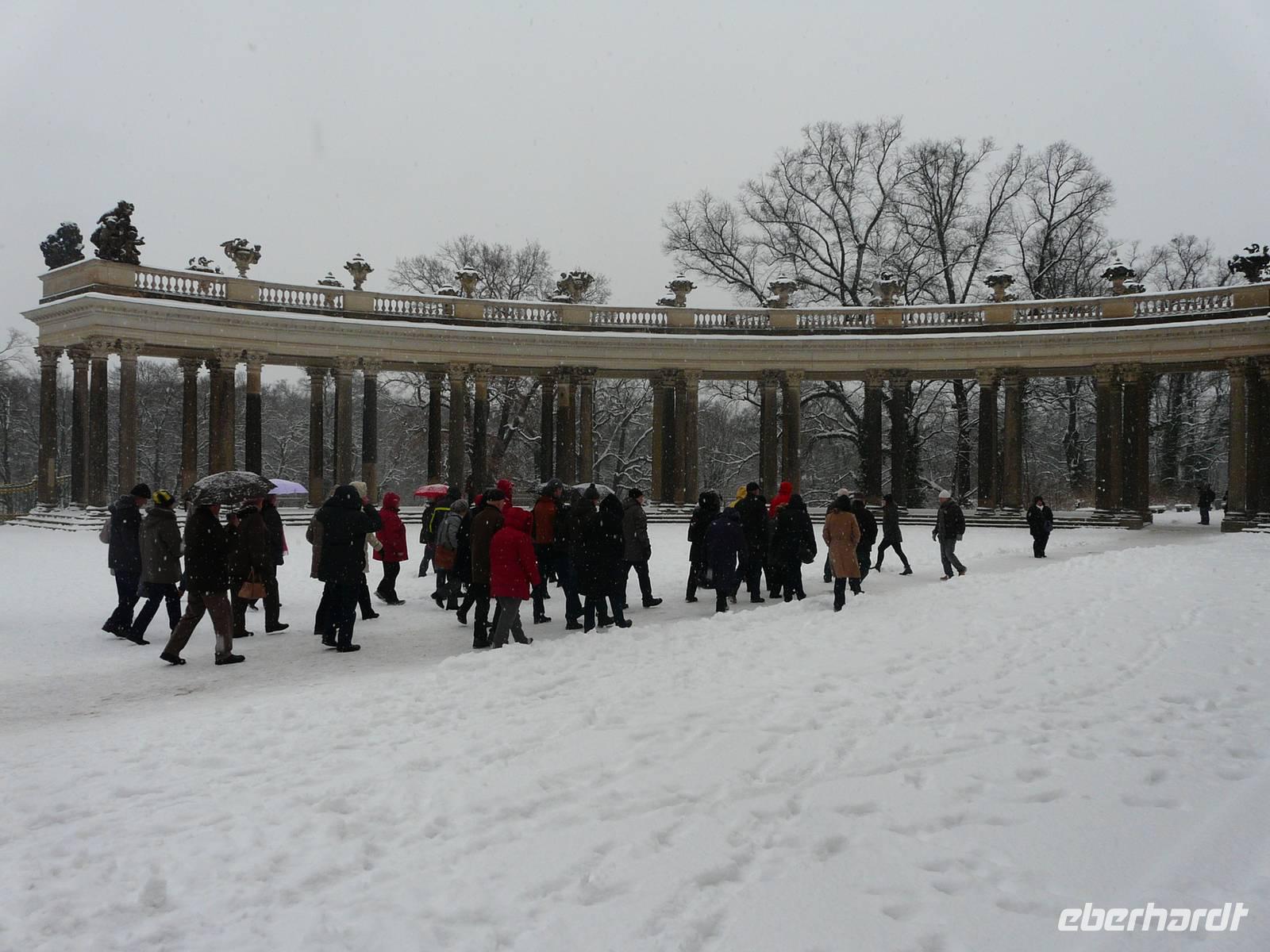 An einem frühen Dienstagmorgen starteten wir unsere Reise in Richtung Brandenburg. Für einige Gäste begann die Fahrt bereits in Chemnitz, ein großer Teil startete in Dresden, und einige stiegen auf der Strecke nach Brandenburg zu. Als wir in Michendorf komplett waren, ging es weiter in die ehemalige Residenzstadt Potsdam. Hier wartete bereits unsere Stadtführerin Frau Dr. Solf auf uns. Wir konnten so direkt mit unserer Stadtrundfahrt am Brandenburger Tor, welches 21 Jahre älter als sein berühmter Namensvetter in Berlin ist, beginnen. Schlichte DDR Architektur, prachtvolle Bauten und die bedeutendste deutsche Schlossanlage standen auf dem Programm. Als Höhepunkt besuchten wir bei winterlicher Landschaft und leichtem Schneefall, das wunderschöne Schloss Sanssouci und unternahmen einen kleinen Rundgang. Danach fuhren wir weiter, vorbei an der russischen Kolonie Alexandrowska und dem Holländerviertel. An der Peter & Pauls Kirche verließ uns Frau Dr. Solf wieder und jeder entdeckte den Stadtkern von Potsdam individuell.