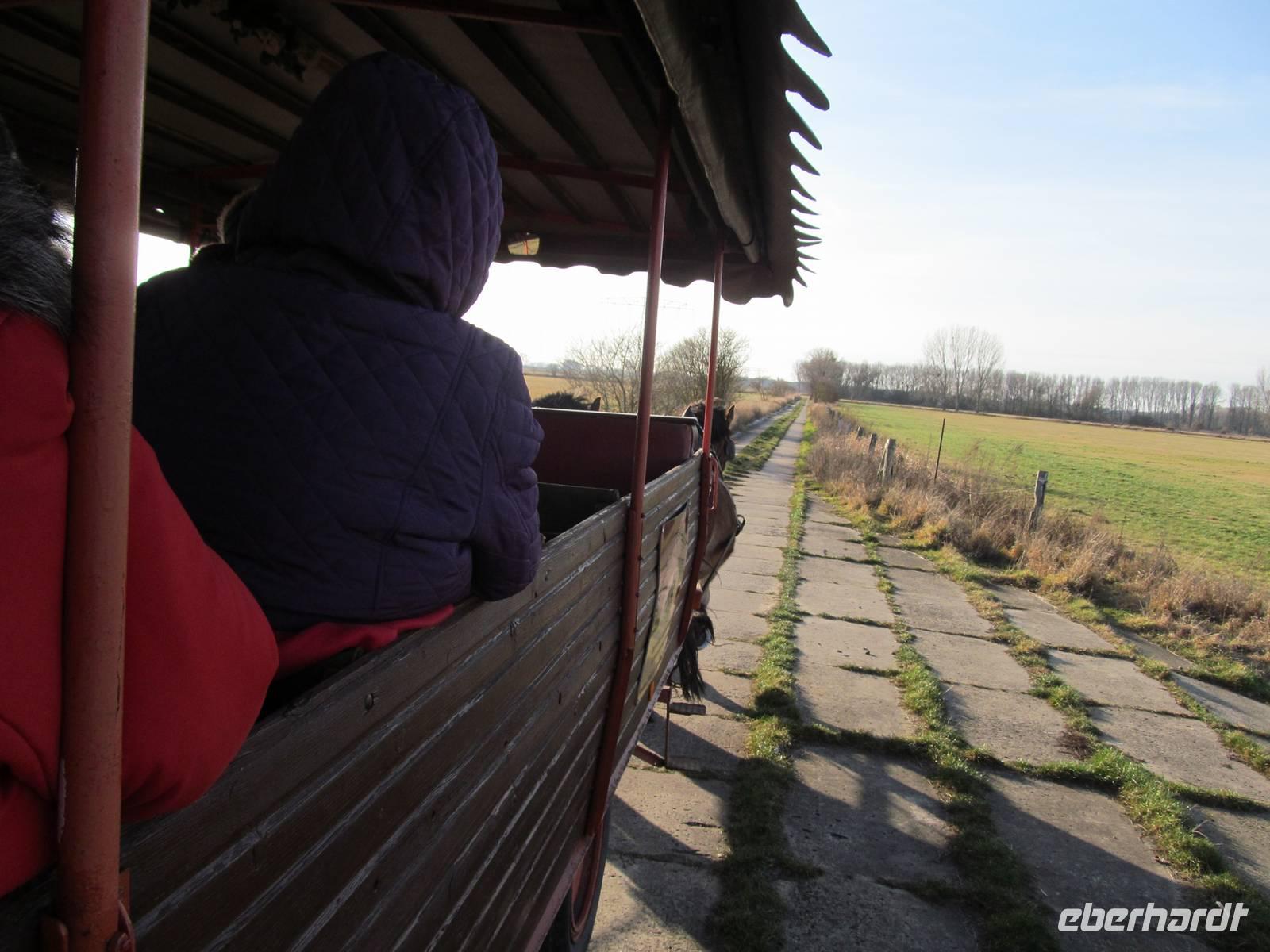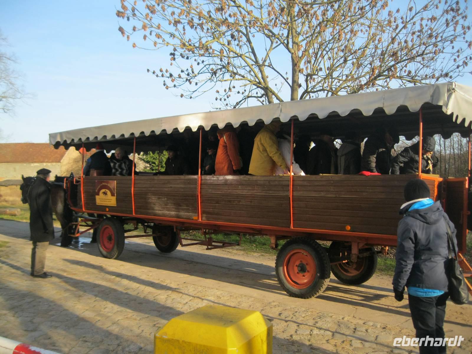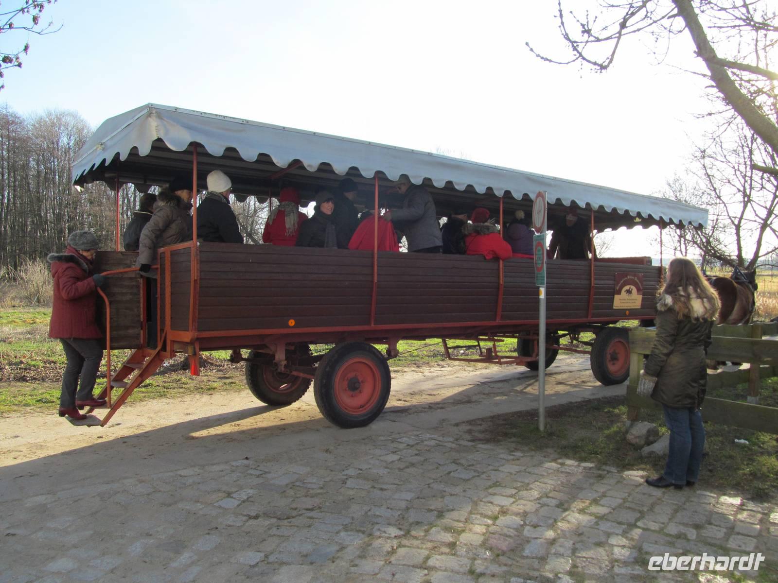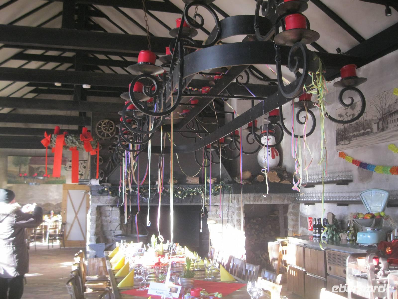 Nachdem wir uns an dem reichhaltigen Frühstücksbuffet bedient hatten, stand der Tag ganz im Zeichen des Schloss Diedersdorf. Bereits vormittags wurden wir von zwei Mitarbeitern des Hauses, in zwei Gruppen über das großzügige Gelände geführt. Dazu gehörte das Schloss, die Markthatte, der Pferdestall, die eigene Schlossbäckerei, die Schmiede und als Highlight die schlosseigene Schnapsbrennerei. Dort nahmen wir an einer Verkostung der vielzähligen Geister und Liköre teil, wären dessen uns Herr Schütz von dem Werdegang der Genussmittel erzählte. Direkt im Anschluss unternahmen wir eine Kutschfahrt, denn für die geplante Schlittenfahrt lag leider kein Schnee. Die Pferde zogen uns über die Weidenlandschaft rings um das Schloss. Nach diesem Ausflug wurden wir bereits wieder auf dem Hof erwartet, denn im Namen von Eberhardt TRAVEL wurden wir nach der eisigen Kutschfahrt mit einem wärmenden Glühwein, einer Suppe und Fettschnitten überrascht. Im Anschluss an eine individuelle Mittagspause trafen sich alle Gäste in der Brandenburger Stube zum gemeinsamen Kaffee trinken mit selbstgebackenem Kuchen der Schlossbäckerei und Bleigießen mit leitenden Worten für das neue Jahr 2016. Nun hatten wir genügend Zeit um uns auf die anstehende Silvesterparty im Schloss vor zu bereiten. Bei königlichem Ambiente genossen wir gemeinsam das tolle 3 Gänge Menü bei ausgelassener Stimmung. Danach wurde in den letzten Stunden des alten Jahres noch ordentlich das Tanzbein geschwungen und pünktlich um 24 Uhr stießen wir mit Champagner auf das neue Jahr an. Mit einem Höhenfeuerwerk am Himmel wurde das neue Jahr gegrüßt und wir feierten bis in die Morgenstunden weiter.