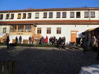 Nach der langen Silvesternacht wurde für uns in der Schmiede ein Brunch vorbereitet, bei dem wir uns gut für den anstehenden Tag stärken konnten. Die Fahrt nach Berlin dauerte nicht lang und am zoologischen Garten wurden wir auch schon von Frau Weinkauf im neuen Jahr begrüßt. Unsere Busfahrt ging vorbei am Potsdamer Platz, durch das Regierungsviertel Berlins und endete an den Hackeschen Höfen, wo Frau Gorgles bereits auf uns wartet. Wir erkundeten die Gegend rund um die Hackeschen Höfe wieder in zwei Gruppen und erfuhren viel über die Geschichte bekannter Gebäude. Nachdem der Spaziergang durch Berlin beendet war fuhr uns unser Buschauffeur Holger zum Potsdamer Platz um diesen ganz individuell zu besichtigen. Man hatte die Möglichkeit zu einem Bummel über den Wintermarkt oder im Sony Center bei einer Lichtershow einen Kaffee zu trinken. Anschließend fuhren wir wieder zurück nach Diedersdorf, schlürften am Lagerfeuer einen Glühwein und genossen den letzten Abend bei einem leckeren 3 Gängen Menü im Pferdestall.