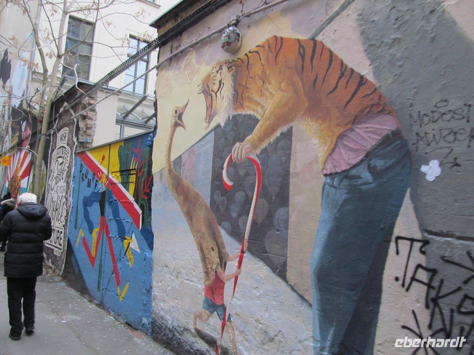 Nach nur wenig Stunden Schlaf nahmen wir gemeinsam den leckeren Brunch in der Schmiede ein und stärkten uns für den anstehenden Tag in Berlin. Pünktlich 12 Uhr fuhren wir in die Bundeshauptstadt und begannen unsere Stadtrundfahrt mit den uns bekannten örtlichen Reiseleiterinnen am Zoologischen Garten. Von dort aus ging es in das Regierungsviertel, zu dem Brandenburger Tor und zu den Hackeschen Höfen. Dort war eigentlich ein gemeinsamer Spaziergang durch die Höfe geplant. Doch da einige Gäste noch erschöpft von dem Silvesterabend waren, unternahm der Großteil der Gruppe spontan eine erweiterte Stadtrundfahrt mit unserer holländischen Reiseleiterin. Sie zeigte das jüdische Viertel, die Reste der Berliner Mauer und den Alexanderplatz. Der Rest der Gruppe spazierte durch die Hackeschen Höfe und legte einen Stopp im Ampelmännchen Shop ein. Gemeinsam fuhren wir dann zum Potsdamer Platz um dort die freie Zeit vor der Rückfahrt nach Diedersdorf zu verbringen. Viele Gäste setzen sich in Cafés und Restaurants, da die Geschäfte am Feiertag nicht geöffnet waren. Die Lichtershow im Sony Center war dabei das Highlight, sowie der Wintermarkt auf dem Potsdamer Platz, wo man bereits den ersten Glühwein wieder im neuen Jahr zu sich nehmen konnte. Zurück in Diedersdorf wurden wir mit einem Glühwein vor dem Abendessen im Pferdestall begrüßt. Am Abend genossen wir das vorzügliche 3-Gänge-Menü, bevor wir am nächsten Morgen abreisten.